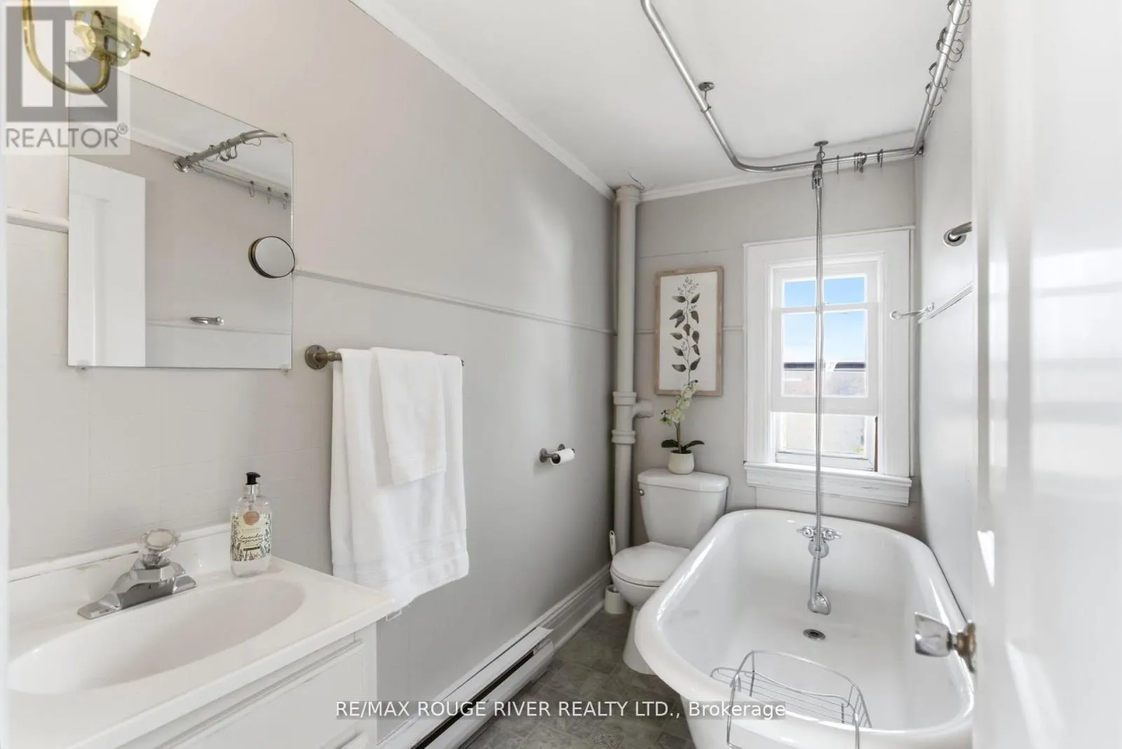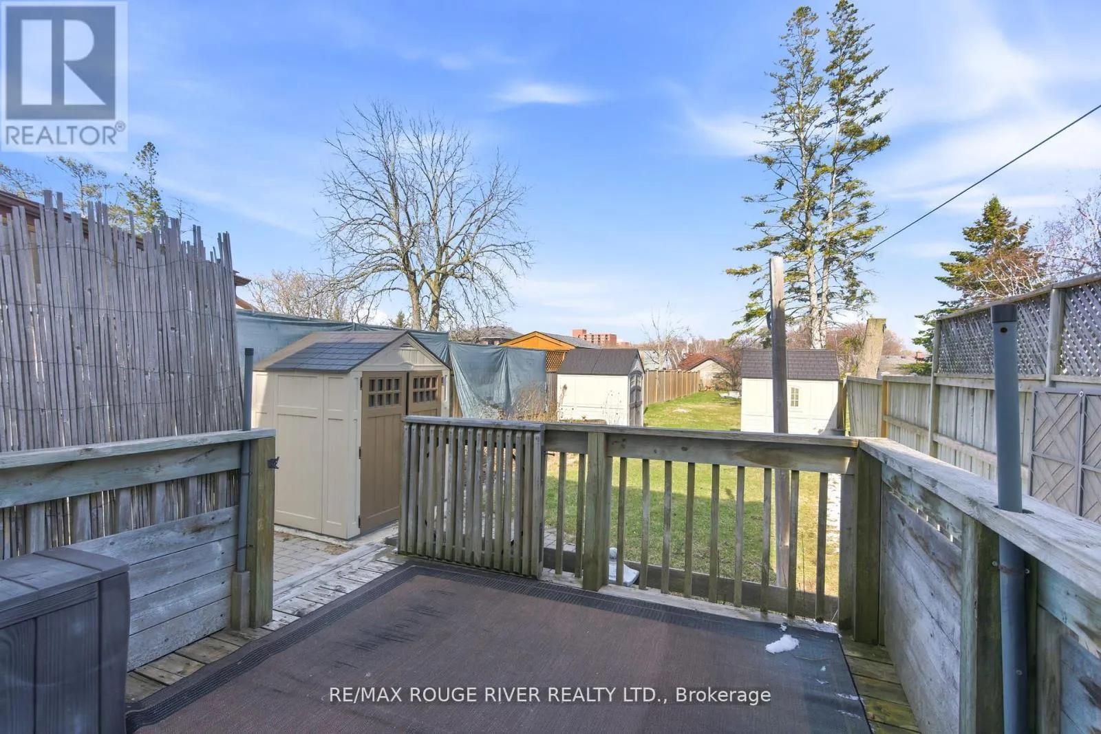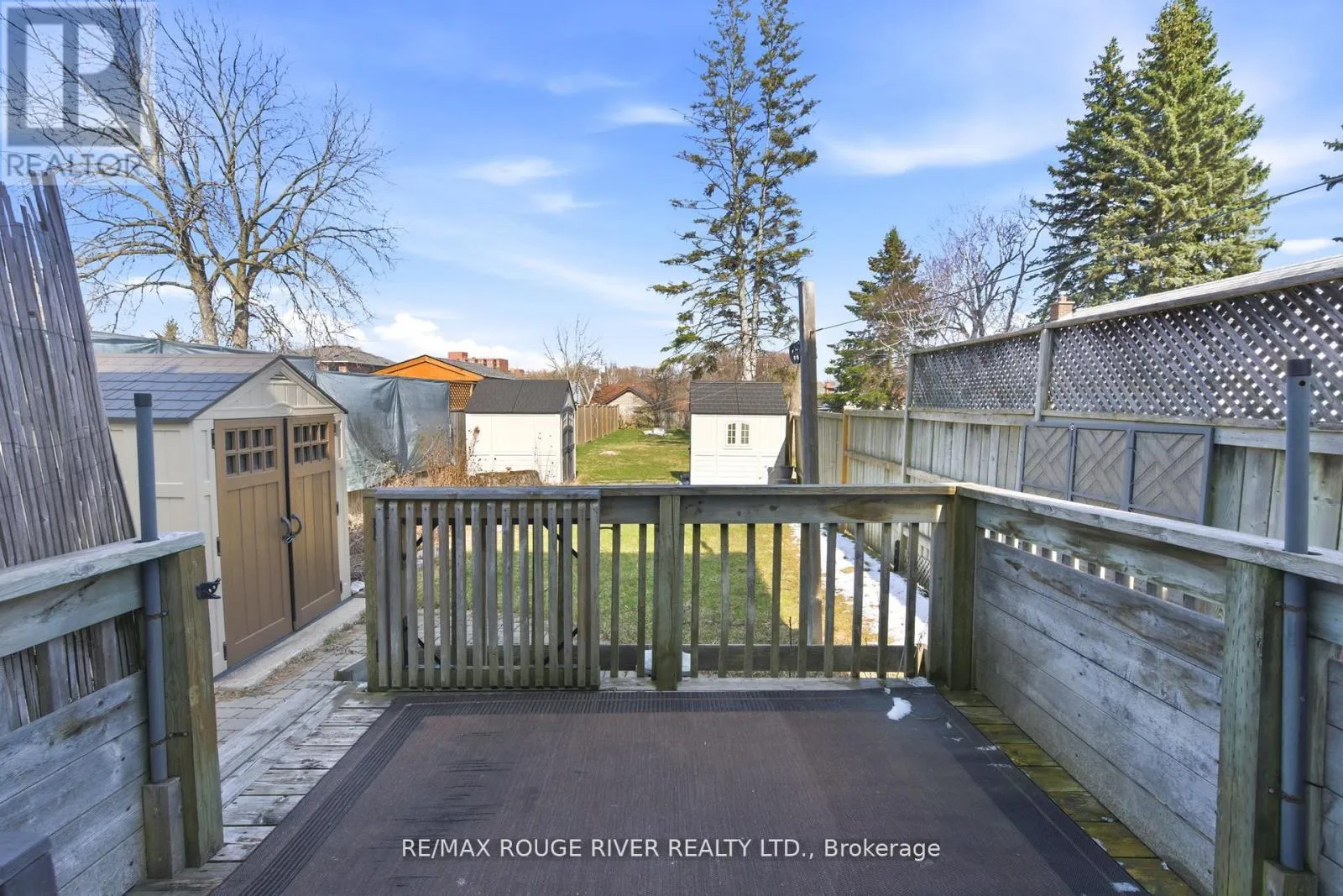 Burk St and John St W Welcome to this charming home offering an impressive, extra-long backyard that provides a rare sense of space. The outdoor setting is a standout feature, complete with a deck and patio that create the perfect backdrop for outdoor dining, gardening, or simply enjoying the open green space. The fully fenced yard also includes three garden sheds, a vibrant perennial garden and a striking landscape rock feature. Step inside to a bright and inviting foyer that sets the tone for the warm and welcoming interior. The main level features a sun-filled living room with a large window and a pleasant view overlooking the front yard, creating a comfortable and light-filled space for everyday living. The eat-in kitchen is both functional and inviting, offering ample space for family meals and gatherings and a new kitchen sink and faucet. With a walkout to the deck and a large window, this area is filled with natural light and provides seamless access to the backyard, making indoor-outdoor living effortless. Upstairs, you'll find three well-appointed bedrooms, each designed with comfort in mind. The primary bedroom features broadloom flooring, a bright window, and a front yard view, while the additional bedrooms also offer broadloom, natural light, and practical layouts, including closet space for added convenience. The unfinished basement presents an excellent opportunity to create a space tailored to your needs, whether you envision a recreation area, home office or additional living quarters. The yard offers ample shed and storage space for all your outdoor needs, along with some newer fencing that adds both privacy and peace of mind. A fantastic backyard clothesline, perfect for fresh air drying and everyday convenience. (id:27476)