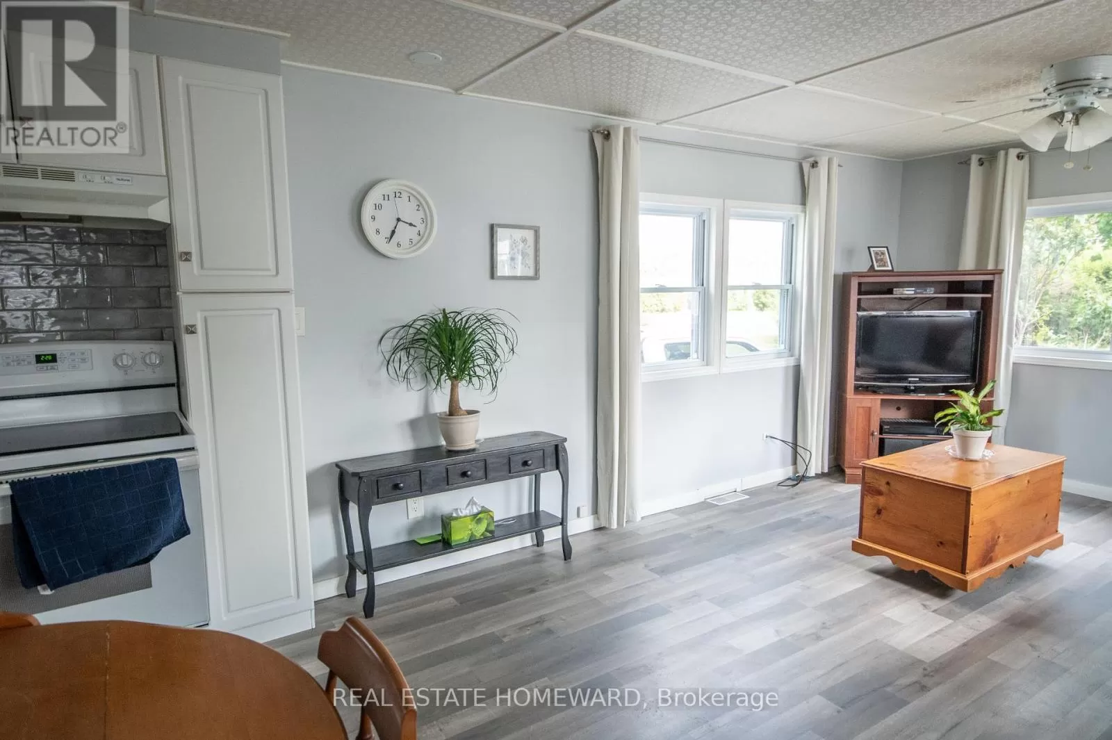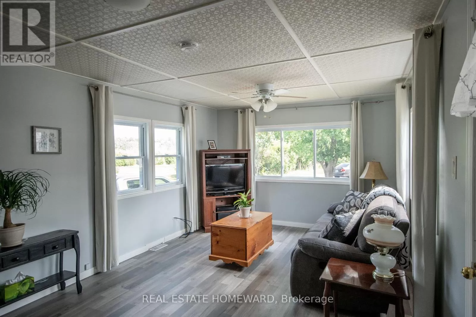 Cross Streets: Heritage and highway 7. ** Directions: Heritage Line south of 7. Fantastic country-like locale in Keene, minutes to Peterborough and all amenities. Situated in a lovely, quiet and friendly park. This is an opportunity to live your life in a low maintenance, relaxed and affordable environment and in a park-like setting! This wonderful open concept home is ready for you to move right in! Pride of ownership is evident in this clean and updated abode. Newer laminate throughout, newer white kitchen! Generous Primary bedroom with a walk in closet! Spacious family/sunroom room with sliding doors to the porch could be easily used as a second bedroom! Large bathroom with ensuite laundry! Breezy front porch for those relaxed summer afternoons/ evenings.Single car parking.Monthly fees include: lot rent, water & sewer, taxes, and park maintenance. Don't wait, this wonderful lifestyle awaits your arrival! (Can be sold furnished) (id:27476)