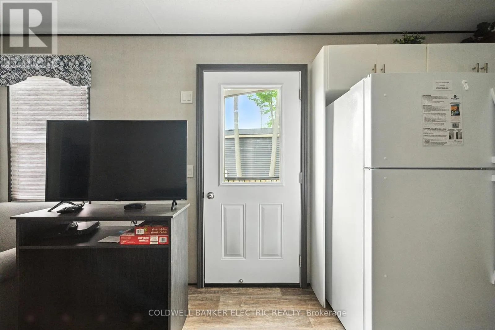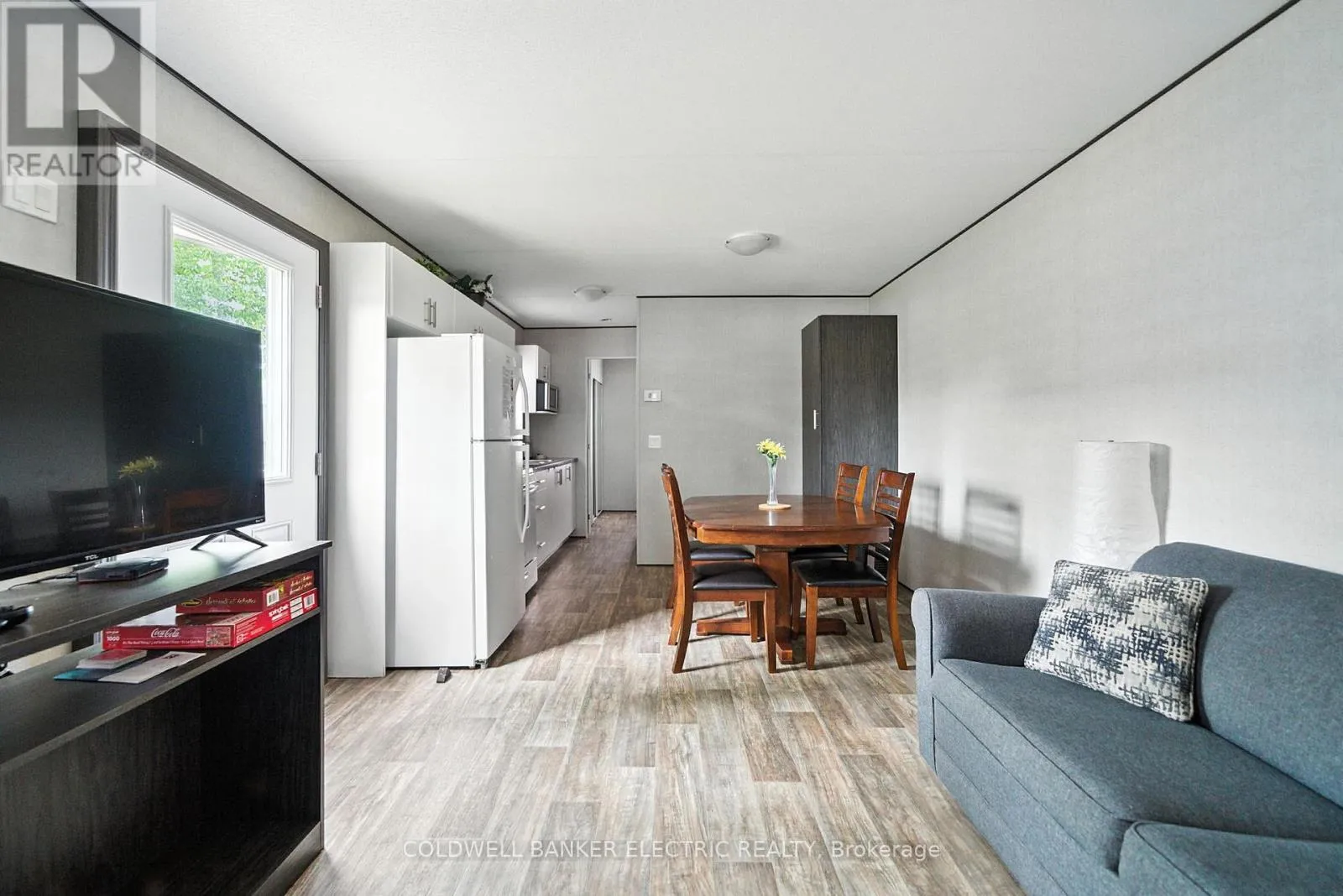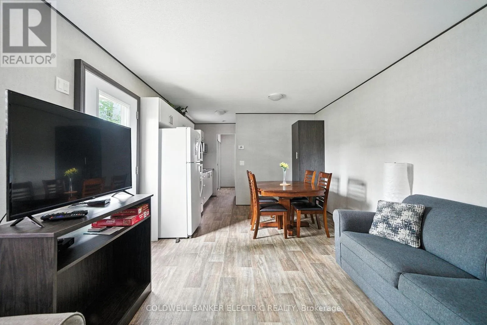 Cross Streets: Villiers Line South of County Rd 2. ** Directions: Heading East on Regional Rd 2, Right Onto Villiers Line, Turn Left at Bellmere Winds. Escape to Bellmere Winds Golf Resort on Rice Lake with this 3-bedroom, 1-bath seasonal cottage at #40 St. Andrew's. Featuring an open-concept kitchen and living/dining area, this unit comfortably sleeps the whole family with two bedrooms outfitted with bunk beds. Enjoy a hassle-free lifestyle with resort fees covering golf memberships for up to 4 people, utilities, lawn care, and access to pools, beach, and more. Occupancy from May 1 to Oct 31. 2025 site fees: approx $9,015 + HST to be verified by buyer. Mobile home can be moved. (id:27476)