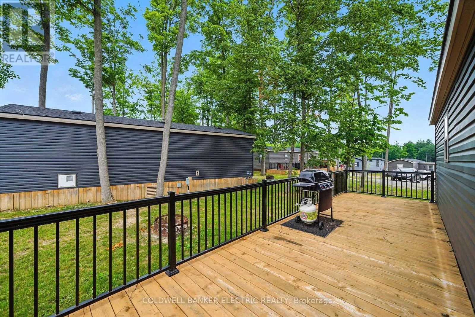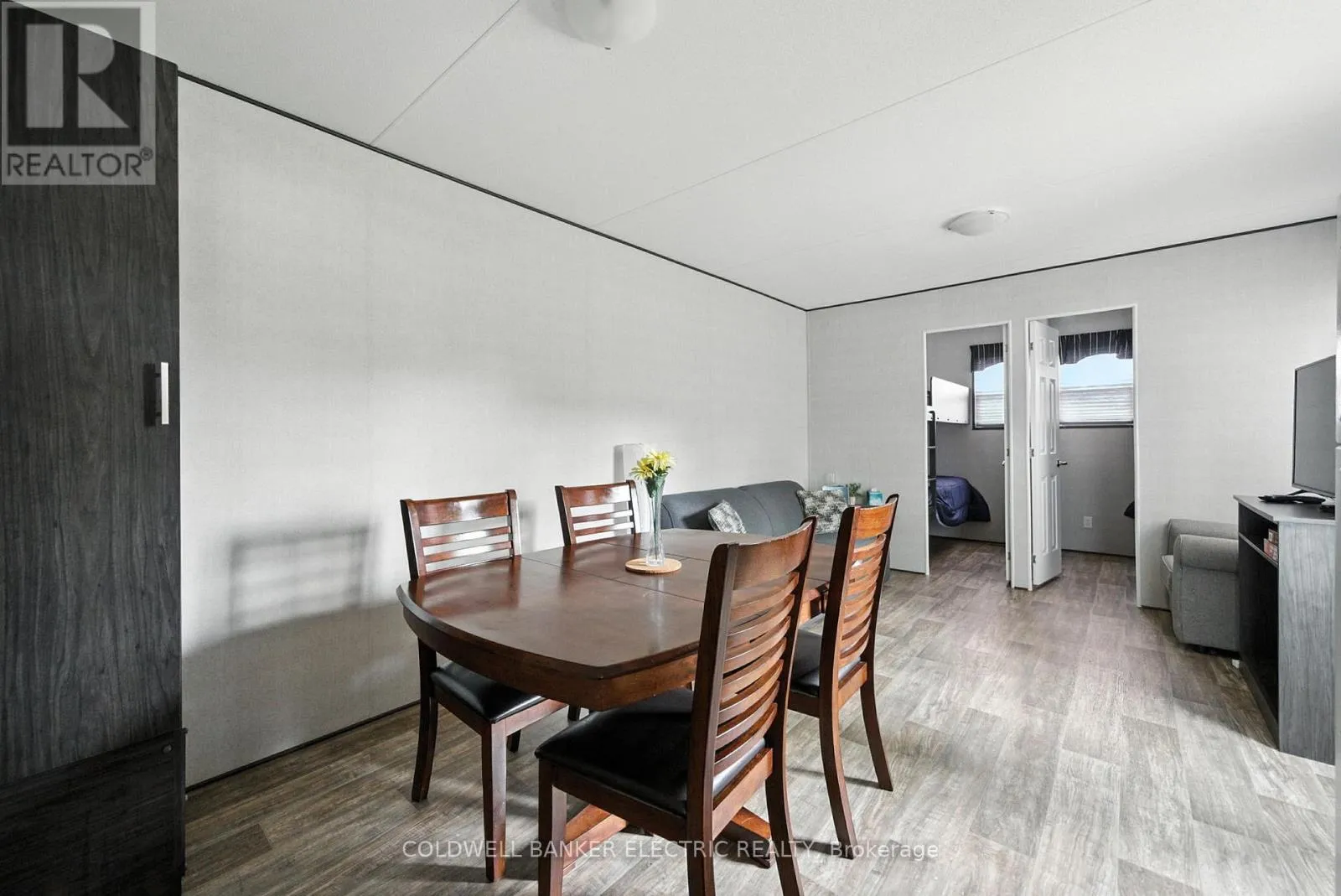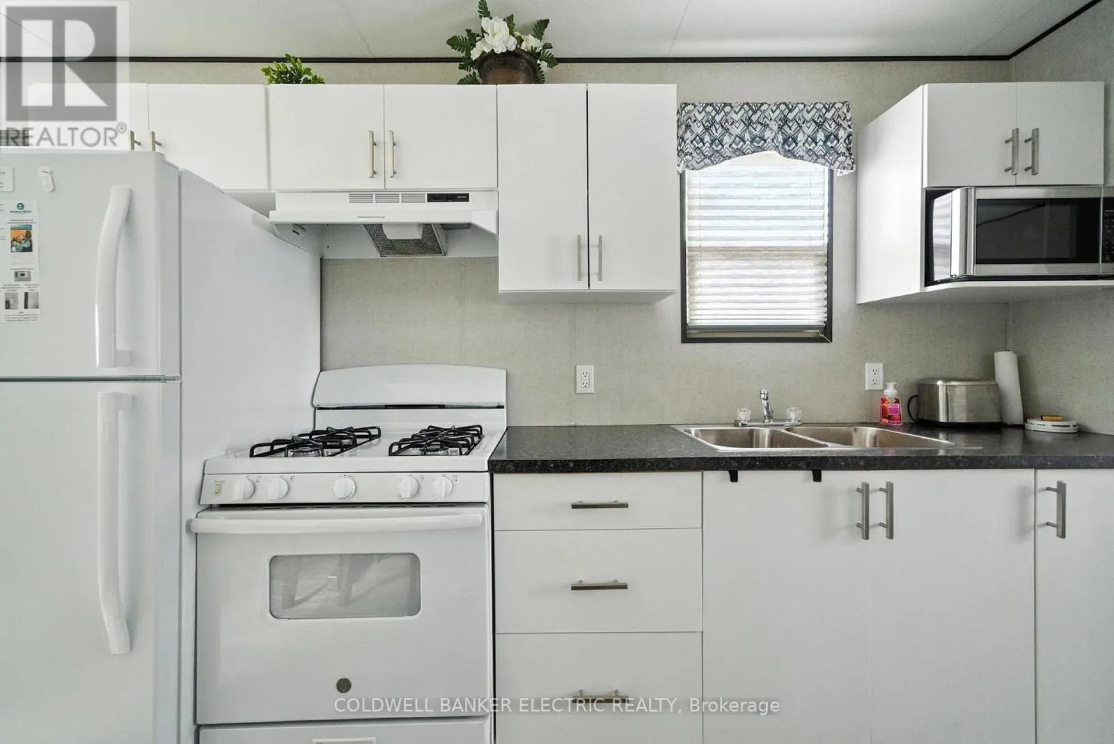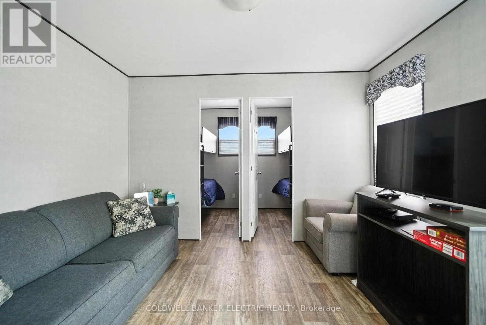 Cross Streets: Villiers Line South of County Rd 2. ** Directions: Heading East on Regional Rd 2, Right Onto Villiers Line, Turn Left at Bellmere Winds. Escape to Bellmere Winds Golf Resort on Rice Lake with this 3-bedroom, 1-bath seasonal cottage at #40 St. Andrew's. Featuring an open-concept kitchen and living/dining area, this unit comfortably sleeps the whole family with two bedrooms outfitted with bunk beds. Enjoy a hassle-free lifestyle with resort fees covering golf memberships for up to 4 people, utilities, lawn care, and access to pools, beach, and more. Occupancy from May 1 to Oct 31. 2025 site fees: approx $9,015 + HST to be verified by buyer. Mobile home can be moved. (id:27476)