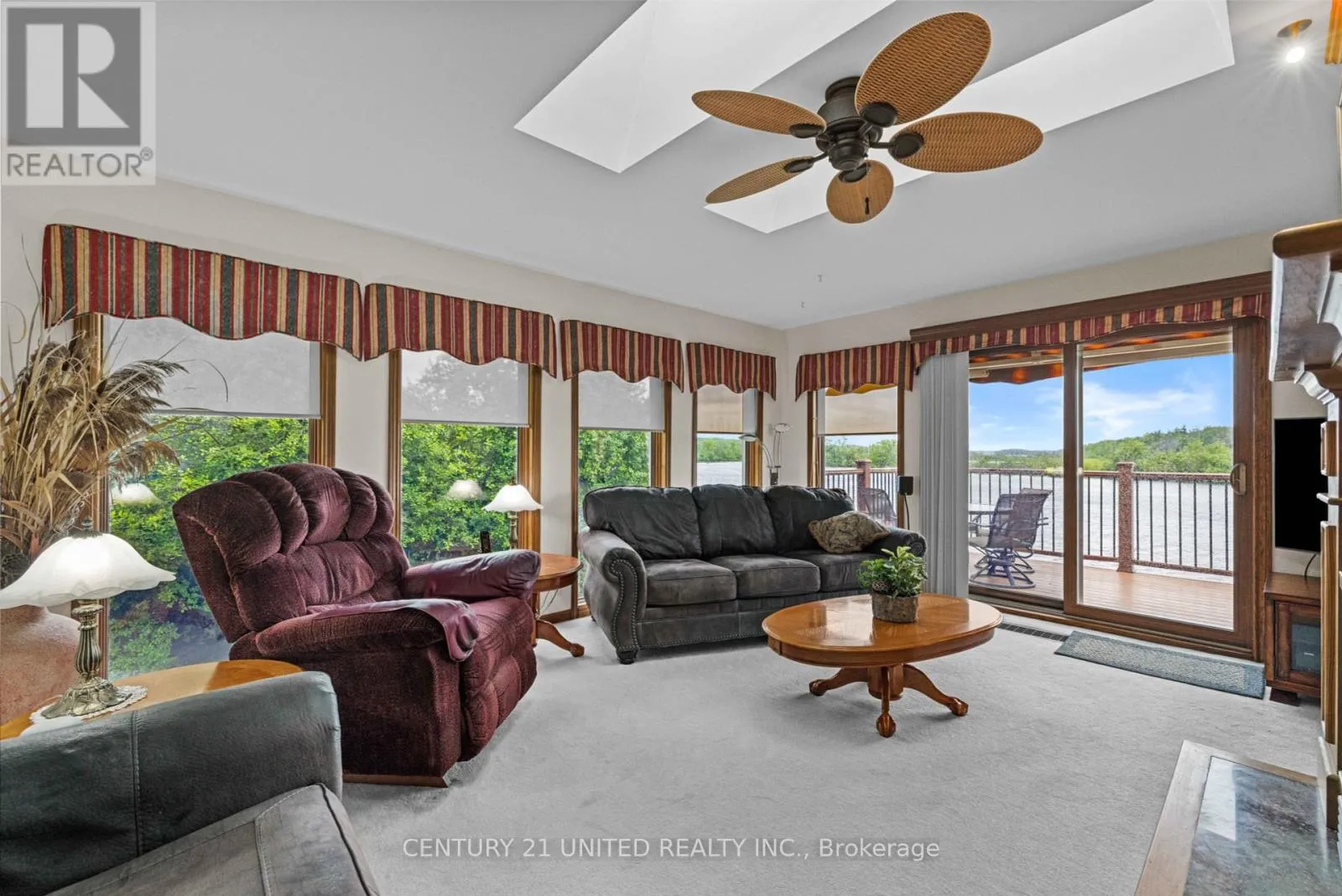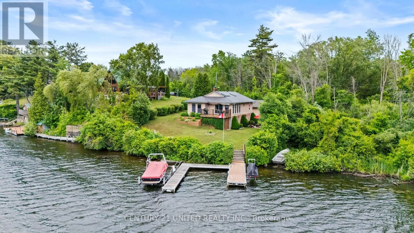 Cross Streets: Paudash Street. ** Directions: County Road 2 to Hiawatha Line to Kent Bay Road to Soper Lane to Paudash Street to Thompson Road. Welcome to your private waterfront retreat on the Otonabee River! This beautifully maintained 3-bedroom, 2-bathroom home offers 1,864 sq ft of total living space and is perfectly designed for year-round enjoyment. Set on a very private, manicured lot, the property showcases stunning rock and flower gardens, a custom garden shed, and a separate lake-fed irrigation system to keep the lawn and gardens vibrant. Enjoy peaceful views from the high-end decking or take full advantage of the water with a premium easy-lift docking system, ideal for boating, paddle boarding, fishing, and swimming 9 feet deep off the dock! Inside, the home features a spacious family room, dedicated office, and modern conveniences throughout. Stay connected with high-speed fibre internet and protected with a backup Generac generator. The oversized triple car garage offers plenty of room for vehicles and storage. Additional highlights include a durable steel roof, aluminum-clad exterior, and an exceptional pre-list home inspection for peace of mind. Whether you're looking to relax, entertain, or explore the water, this fabulous property has it all. (id:27476)
