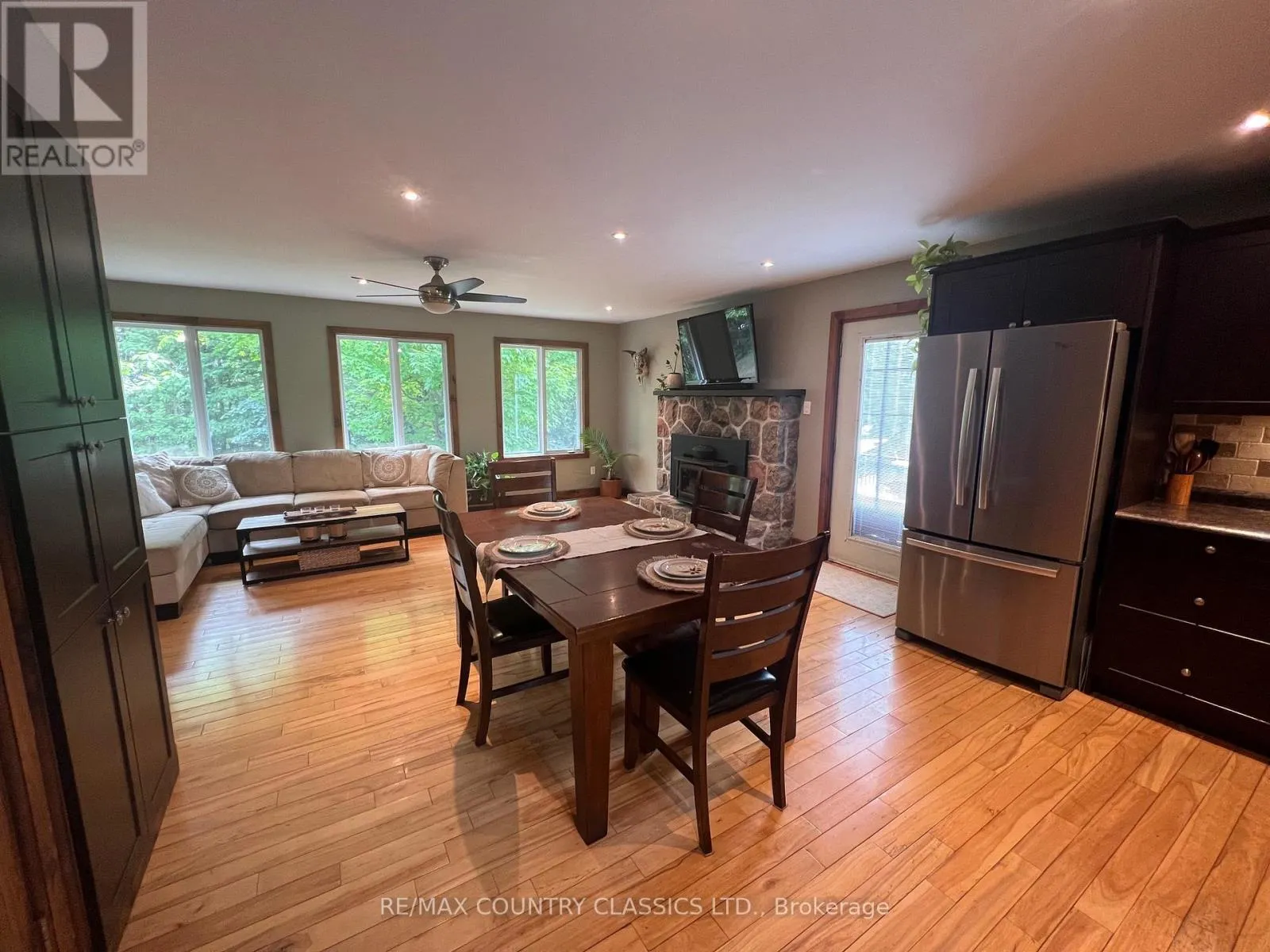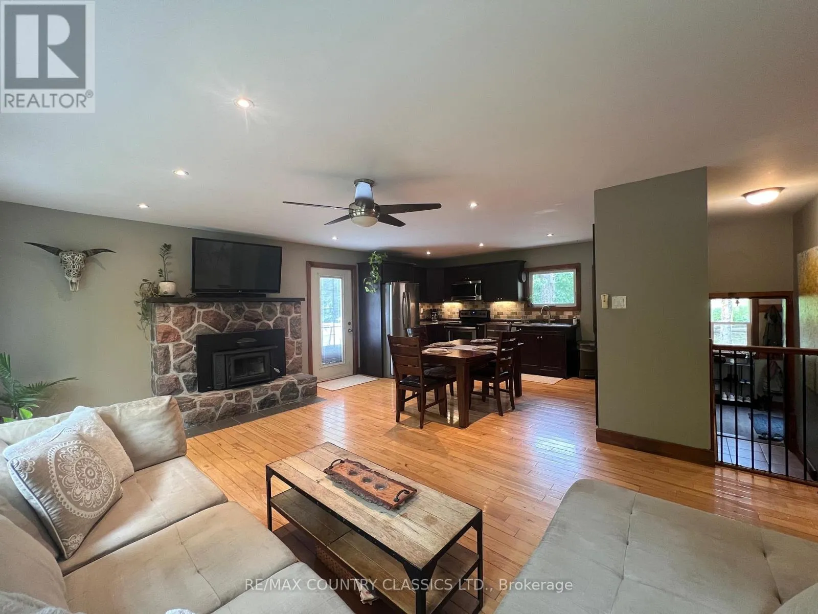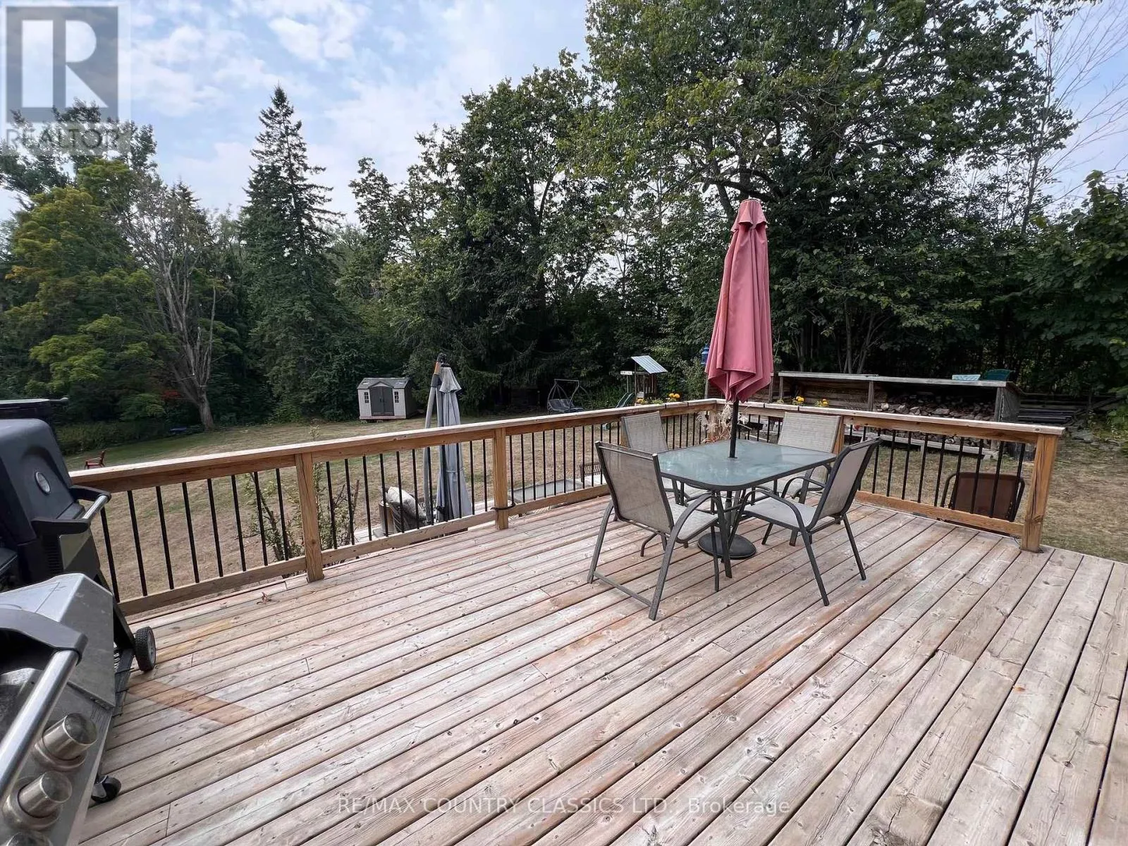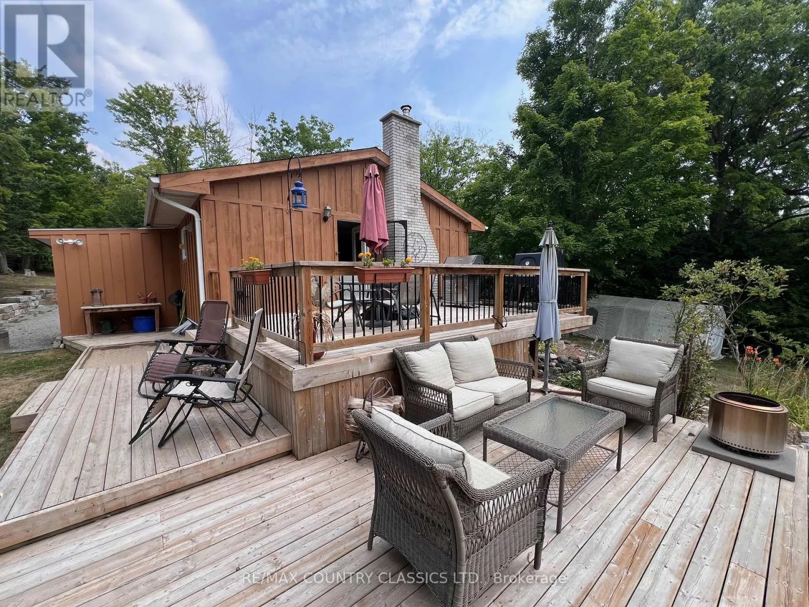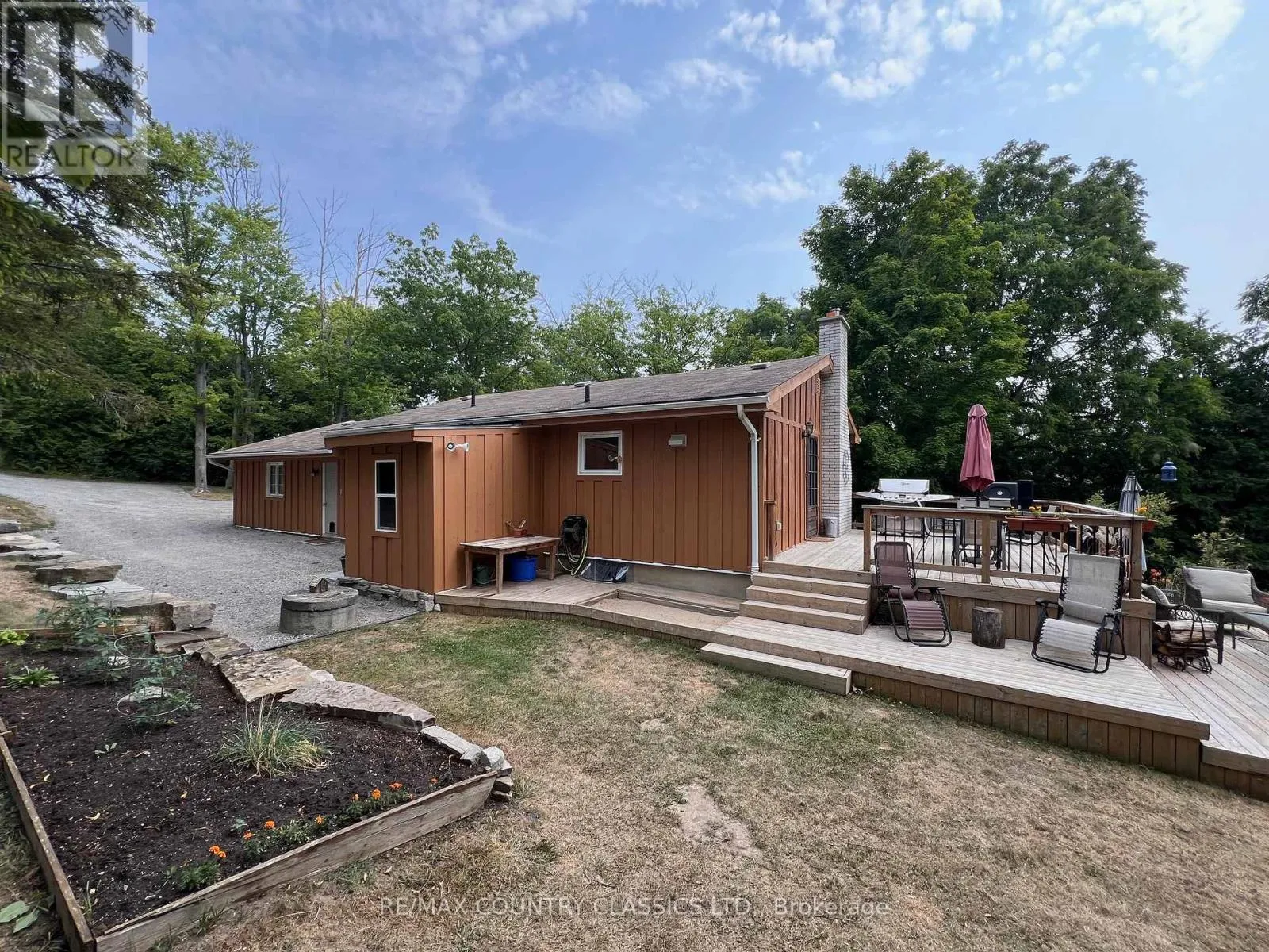 Cross Streets: Scriven Road & Highway 2. ** Directions: From Bailieboro - Hwy 2, right on Scriven Road. Just 600 yards from public waterfront access on Rice Lake, this 4-bedroom home offers lakeside living without waterfront taxes. The open-concept main floor features 2 bedrooms, a 4-pc bath and a stone fireplace in the combined living, dining and kitchen area, opening to a spacious back deck overlooking a private, tree-lined yard. The walkout basement adds 2 bedrooms, a 4-pc bath, laundry and family room. Outdoors, enjoy a landscaped yard with a large fire pit, treehouse, sheds and an enclosed sugar shack in the back forest--fully equipped to tap 50 maples, including evaporator and stainless steel pans, or used as a hobby studio/retreat. Additional highlights include a 24' x 24' attached garage, proximity to Peterborough, Millbrook, Port Hope, quick access to Highways 401, 407 and 115, and just 10 minutes to the Ganaraska Forest Trail system. Nearby attractions include golf courses, fishing, heritage sites and the Rolling Grape Vineyard. Recent updates: shingles (2012), septic (2019), hot water/pressure tank (2025). Oil heating cost averages $1600/year. (id:27476)