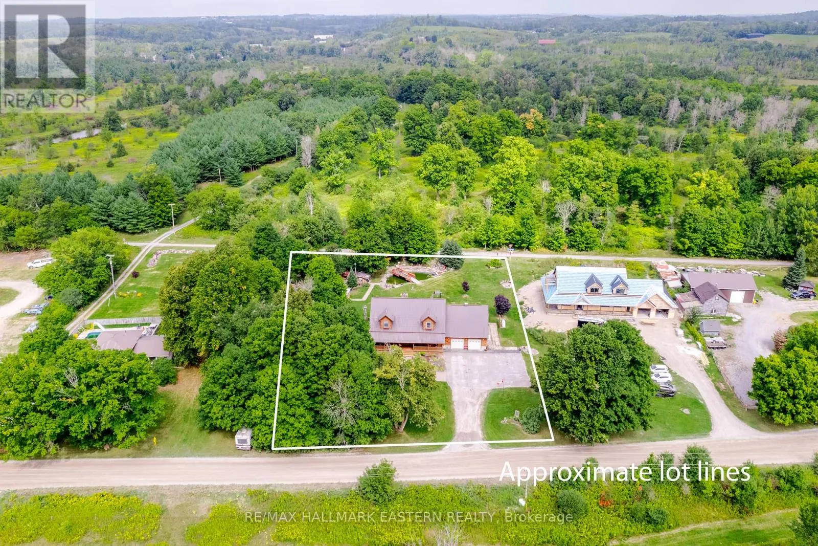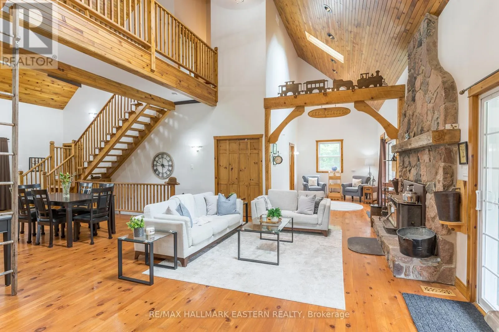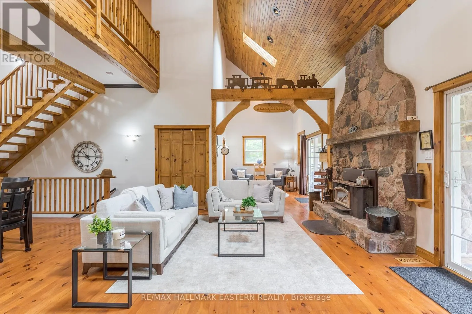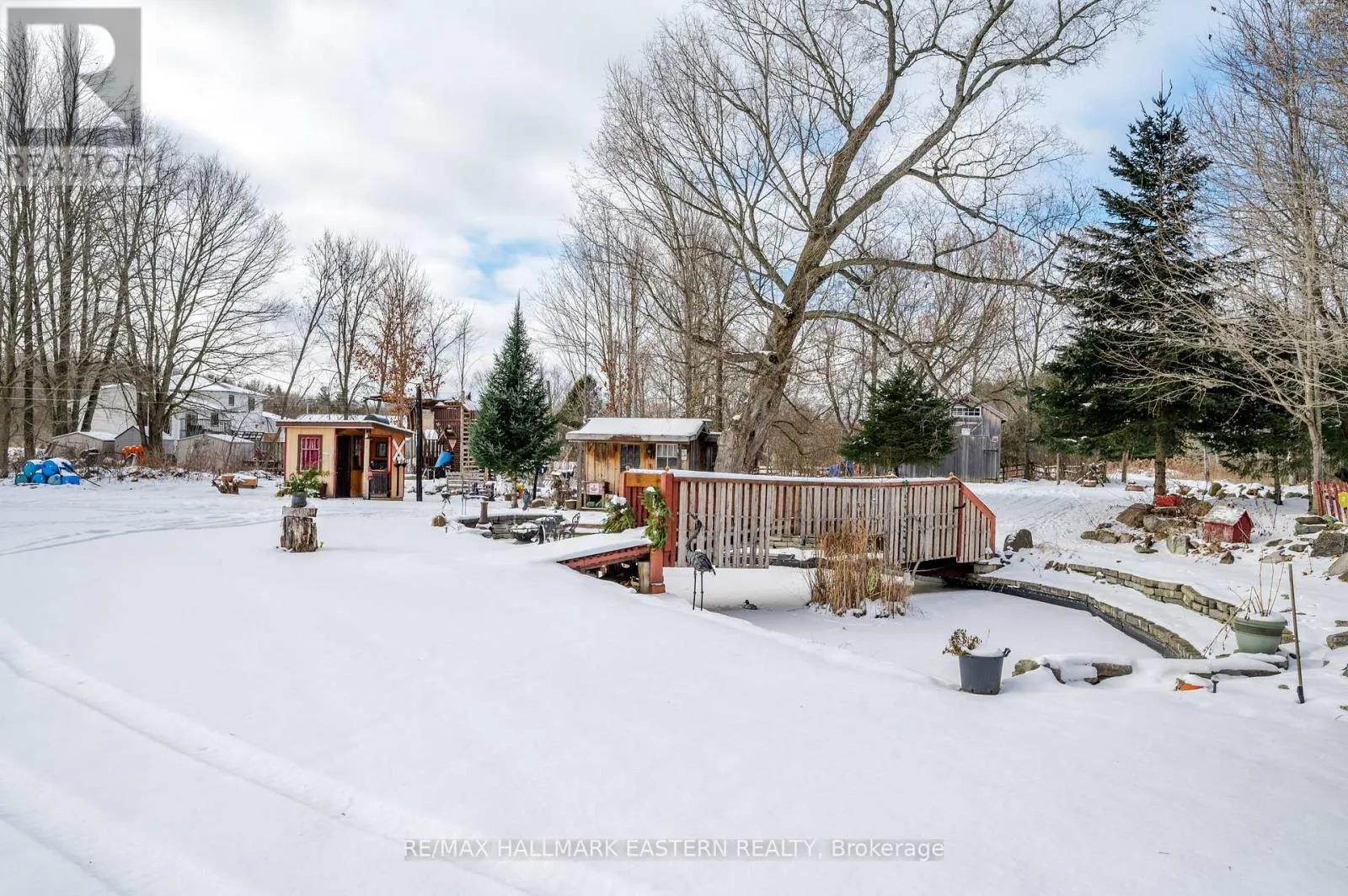 Cross Streets: Heritage Line. ** Directions: Heritage Line to Base LIne. This executive home, built in 2005, features 3 bedrooms and 3 baths, plus a 1-bedroom, 1-bath in-law suite with a separate entrance. The main floor includes a primary bedroom with a 4-piece ensuite, a second bedroom, a 2-piece bath, a wood-burning fireplace, and an open concept living, dining, and kitchen area with hardwood floors. Enjoy the walkout to a covered deck with a hot tub. The second floor has a large bedroom with an ensuite and a loft overlooking the main floor. The basement offers a den, storage, and the in-law suite. The backyard includes a covered deck, outdoor fireplace, kitchen, pond, barn shed, and a playhouse or guest bunkie. This property backs onto a trail with biking access to Peterborough and Hastings, walking distance to Indian River. You have to see this home to appreciate what it truly offers. (id:27476)