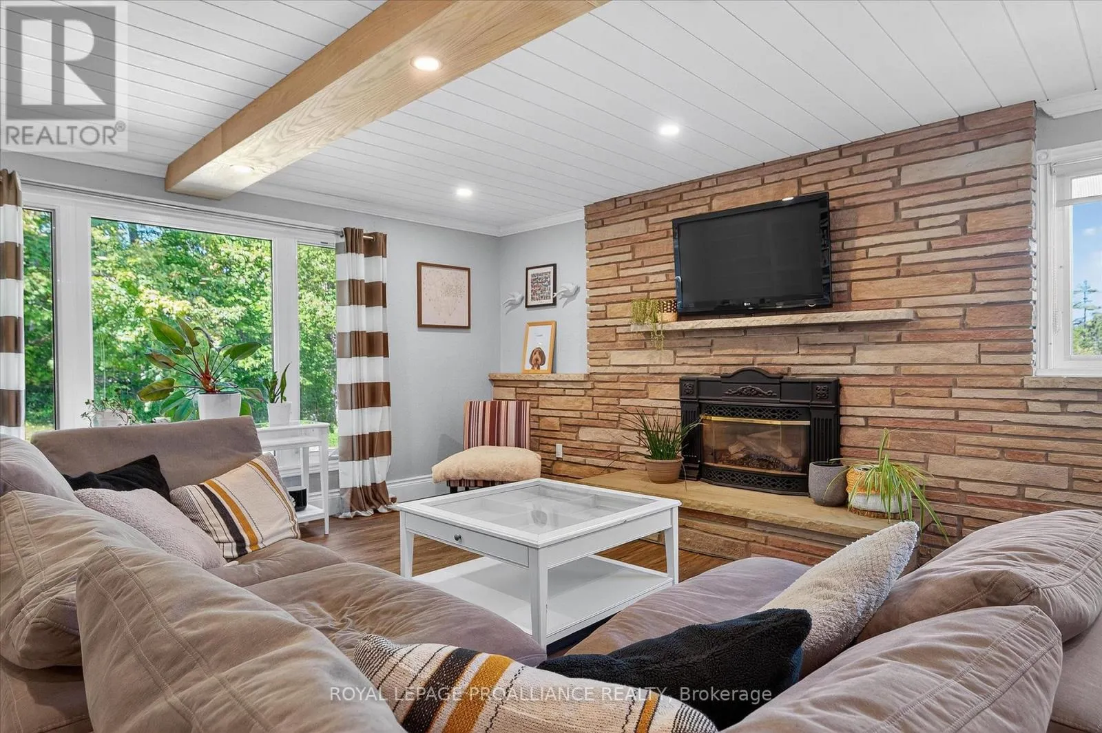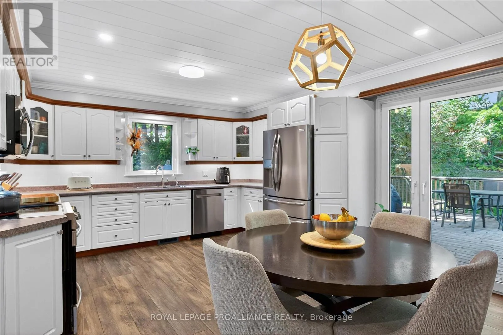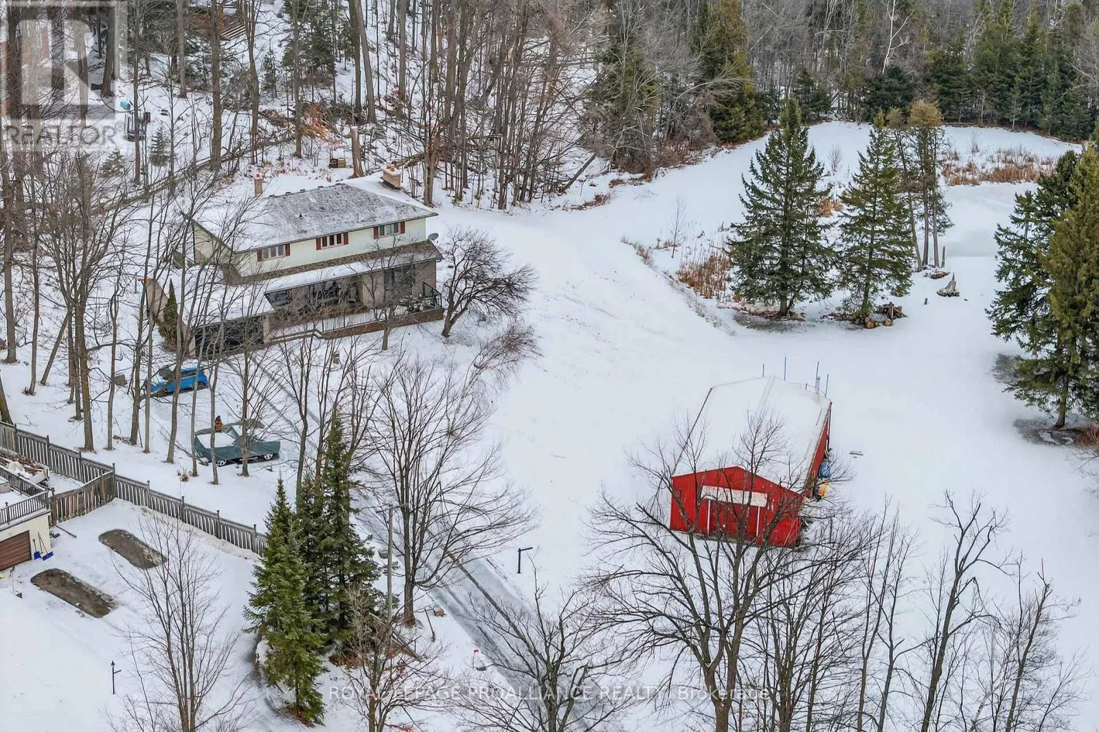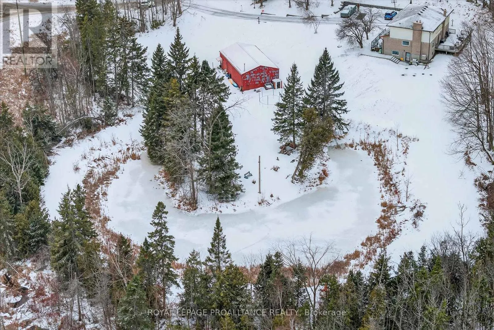 Hwy 7 & Leanne Ave Five acres. Detached 1100 SQ FT workshop. Private pond. Endless updates. Welcome to 9 Leanne Ave, just minutes from Peterborough, offering rare privacy, flexibility, and space to truly live. With no neighbours on one side and a naturally fed pond that attracts deer, herons, turtles, and other wildlife, and doubles as a skating rink in the winter, this property is designed for those who want room to slow down, spread out, and still stay connected. The expansive acreage offers space for kids and pets to roam, gardens to grow, and outdoor living to be enjoyed year-round. Conveniently located with easy access east on Hwy 7 and south to Hwy 115, this home is well-suited for commuters, remote workers, and anyone looking to balance country living with everyday convenience. A standout feature is the detached approximately 1100 sq ft workshop, offering exceptional versatility for a home-based business, tradesperson, hobbyist, or dedicated space for projects, equipment, or storage. Inside, the home is bright and thoughtfully laid out. The main floor features durable vinyl plank flooring, a welcoming kitchen with stainless steel appliances and generous storage, a large office, and a comfortable family room with a gas fireplace. Upstairs, four bedrooms include a primary suite with double sinks, stall shower, and walk-in closet, along with the convenience of second-floor laundry. The lower level offers a complete in-law suite with its own bedroom, living room, 3-piece bath, and walkout, ideal for multi-generational living or potential rental income. Recent updates include a new septic (2024), water softener (2025), paved driveway & armour stone landscaping (2023), composite front deck (2022), new floors (2021), and front windows & doors (2022). Additional features include a Generac generator, gas BBQ hookup, and central vacuum. With privacy, modern updates, flexible spaces, and commuter-friendly access, 9 Leanne Ave feels like home the moment you arrive. (id:27476)