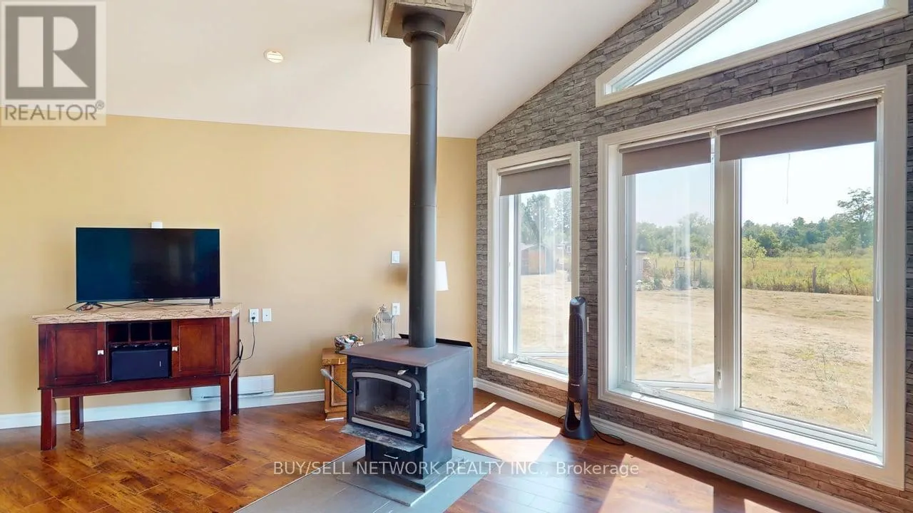 Cross Streets: BASE LINE. ** Directions: HWY 7 E TO HERITAGE LINE TURN SOUTH TO BASELINE RD. Honey, Stop the Car - This Country Gem Has It All! Welcome to your dream country retreat, perfectly positioned just minutes east of Peterborough. This beautifully maintained, newer-build 1,259 sq ft bungalow sits on a serene .96-acre lot, offering the ideal balance of modern living and peaceful rural charm. Step inside to a bright, open-concept layout highlighted by vaulted ceilings and large windows that flood the space with natural light. The cozy wood stove anchors the living area, creating a warm and inviting atmosphere year-round. The home features two generous bedrooms, main-floor laundry, and a thoughtfully designed kitchen, dining, and living space-perfect for everyday living or entertaining guests. Enjoy all seasons from the enclosed porch, an ideal spot for morning coffee or unwinding in the evening. Outdoors, the expansive backyard is made for enjoyment, complete with an above-ground pool for summer fun and plenty of space for gatherings or relaxation. Nature lovers will appreciate the unbeatable location directly across from the Lang-Hastings Nature Trail, offering endless opportunities for walking, cycling, and exploring. With a quick, easy drive to Peterborough, this move-in-ready home truly offers the best of both worlds-country tranquility with city convenience. A must-see for anyone seeking space, comfort, and a relaxed lifestyle. (id:27476)