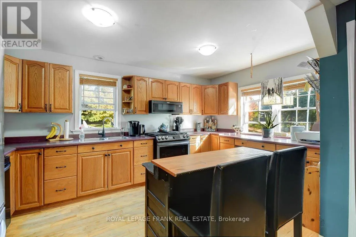 Cross Streets: Hwy 7/Indian River Line. ** Directions: Take Hwy 7 east to Indian River Line. Enjoy the perfect blend of comfort, privacy, and country living on this picturesque 41-acre hobby farm, conveniently located just minutes from Peterborough. Set at the end of a private laneway, the well-maintained bungalow is surrounded by open pastures, a scenic pond, mature trees, and peaceful natural beauty. The spacious open-concept main level features hardwood floors throughout, a bright living room with deck access, and a custom kitchen offering ample cabinetry, generous counter space, and stainless steel appliances. Garden doors off the dining area lead to a large sun deck, ideal for entertaining or enjoying the serene views. Renovated modern bathrooms include a main-level bath with soaker tub and separate shower. The lower level offers a spacious three-piece bathroom with laundry and closet space, along with a large walkout primary bedroom that could also function as a comfortable family room. Additional highlights include abundant storage, a newer propane furnace, central air conditioning, and a cozy wood stove for winter evenings. The property is well equipped for hobby farming or self-sufficient living, featuring well-maintained barns with hydro, fenced paddocks, and stalls. The upper barn provides clean, versatile storage, while additional outbuildings and a chicken coop are in excellent condition. Forest trails offer access for firewood, and there is plenty of space for gardens and outdoor enjoyment. A rare opportunity to enjoy peace, privacy, and rural charm without sacrificing convenience - this inviting property delivers a lifestyle of comfort, serenity, and connection to nature. (id:27476)