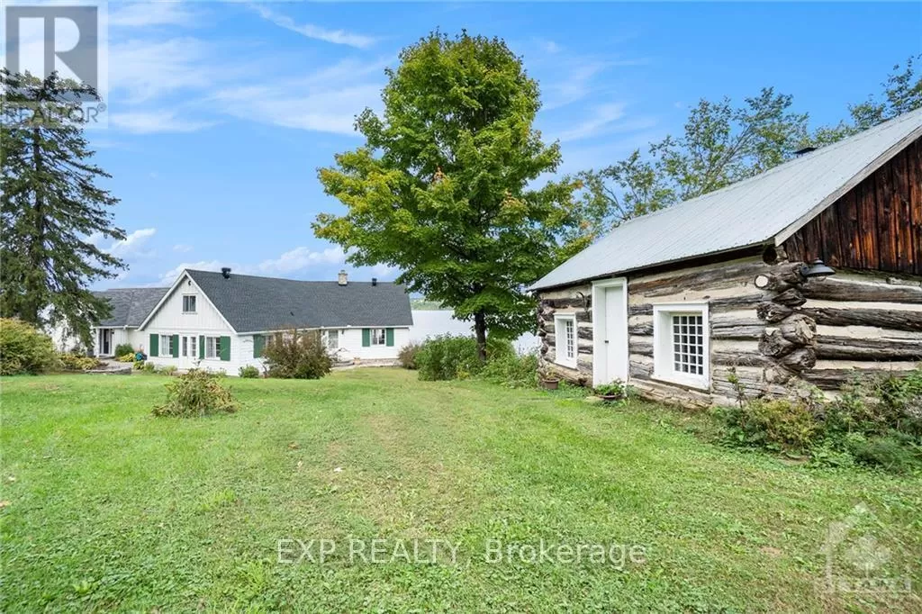 Hwy 417 west to March road, Exit at March Road and turn Right on Herzberg Road, Right on March Valley Road, right on Cameron Harvey Drive. Follow bend onto Sixth Line, and turn right at Berry Side Road, follow to end of street, home is on right. Stunning 5.5-acre property w/over 600ft of pristine waterfront along the Ottawa River & breathtaking views of Gatineau Hills! Enjoy leisurely days on your own croquet court or unwind in the screened-in porch overlooking the water, w/hurricane shutters & electric blinds. The main residence, renovated in 2022, combines modern amenities w/rustic charm with a Bright Kitchen, 2 Spacious Bedrms, Ensuite Bath & Finished BSMT w/Bath, while original section of the home retains character, offering a vintage kitchen, 2 Bedrms & Bath. This property also has two historic log cabins from the 1800s, w/electrical service, ideal for guests or artists workshop. A mature lilac hedge naturally divides the expansive lot, while the landscaped grounds make it an excellent setting for weddings or hosting events. With easy boat launch access & riparian rights, you have complete control of the waterfront. Just minutes from Kanata's Tech Park & only 35 minutes to Downtown, this unique property is a rare find! Builder: Doug Rivington - Model: Custom - Year: 1995. (id:27476)