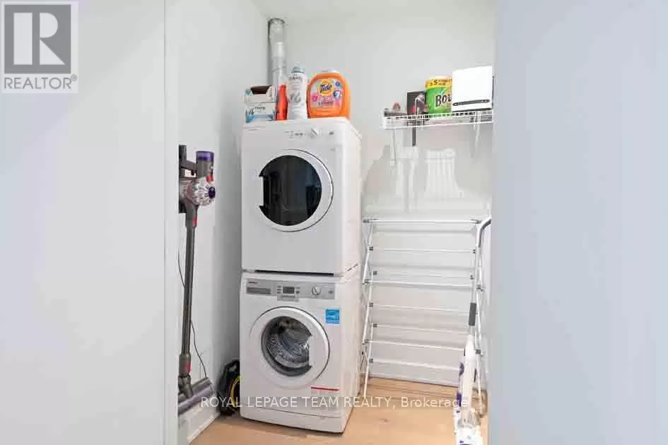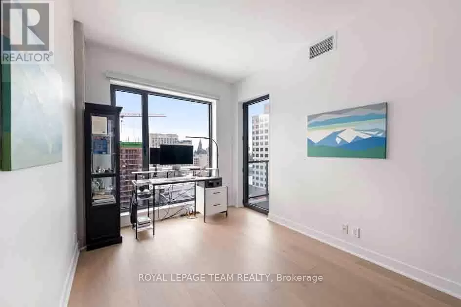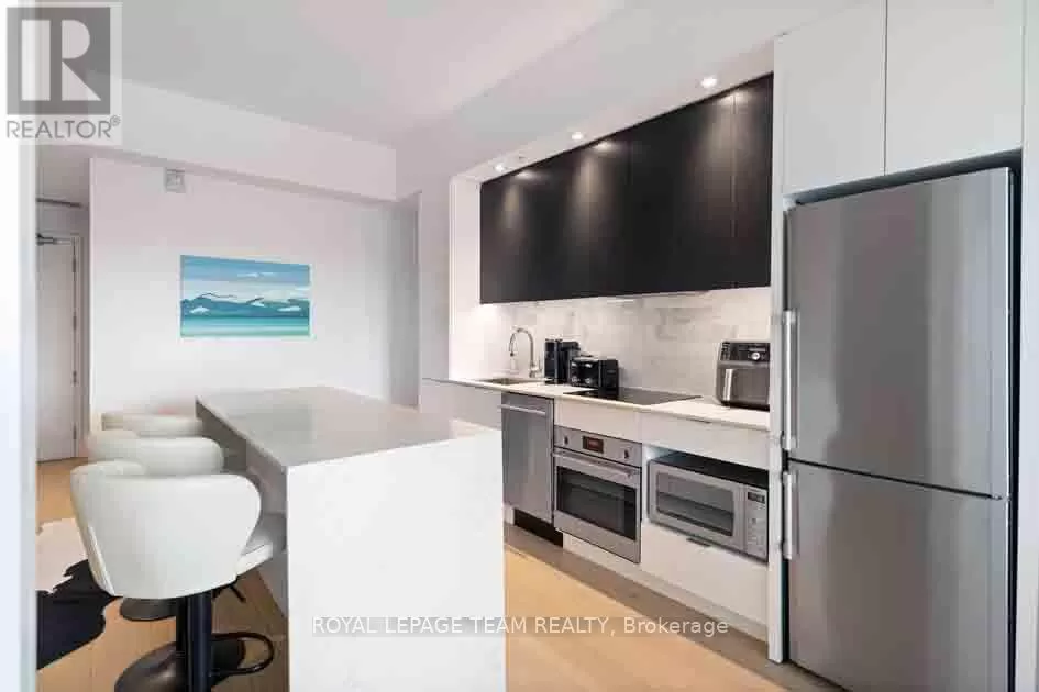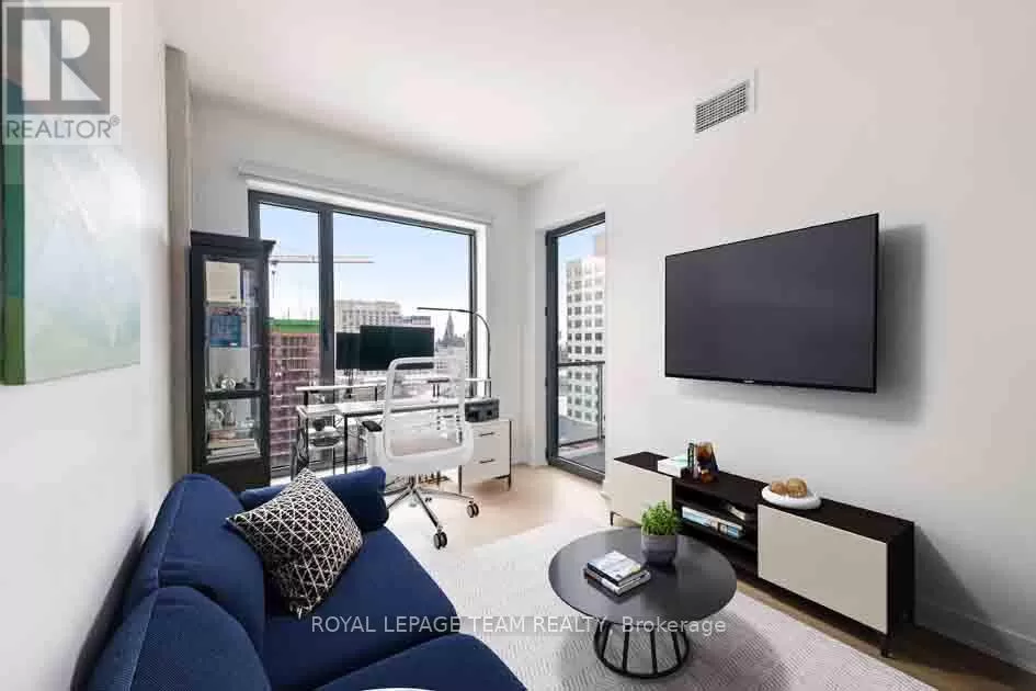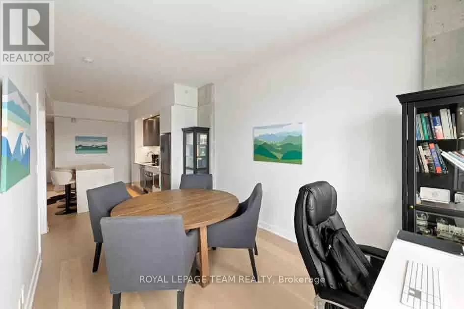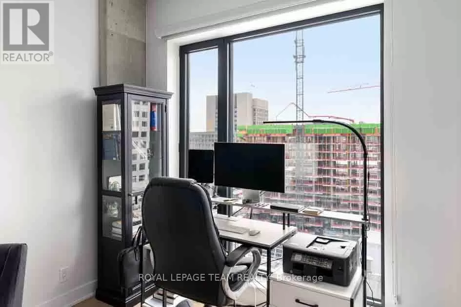 Take Waller St. to Daly Ave. Welcome to Suite 1503 at ArtHaus, 20 Daly Avenue, in the heart of Sandy Hill. This approximately 600-square-foot condo (per iguide) is a serene sanctuary perched above Le Germain Hotel. Situatied on the quiet Arts Court side of the building. Facing west, this suite offers an unparalleled blend of comfort & elegance. Step into a modern space thoughtfully designed for both functionality & style. The contemporary living area offers panoramic views of the core. The spacious bedroom provides a delightful view of Parliament Hill a rare & stunning feature to wake up to. The kitchen & bathroom are outfitted w contemporary finishes, ensuring both style & ease of living. Engineered hardwood throughout & meticulous attention to detail, this suite is the epitome of urban luxury. Residents enjoy the exceptional maintenance of this low-density building, including the unique perk of having your door cleaned weekly. Elevators are rarely shared, adding to the sense of exclusivity & privacy. ArtHaus is a testament to modern architectural design, seamlessly integrating residential, cultural, & lifestyle. Residents have access to the Firestone Lounge, a sophisticated party room, & a fully equipped gym both conveniently located on the same floor as Suite 1503, yet thoughtfully positioned for maximum tranquility. On the ground floor, a delightful coffee shop, & direct indoor access to the Ottawa Art Gallery. These features make ArtHaus not just a residence but a cultural hub. ArtHaus offers unparalleled convenience. uOttawa is mere steps away, making it ideal for students, faculty, & staff. The Rideau Centre & vibrant Lower Town are right at your doorstep, offering shopping, dining, & entertainment options. For commuters, access to the 417 & King Edward Avenue ensures seamless travel east, west, or north. A modern development nearby will only enhance the already breathtaking panorama that unfolds before you. (id:27476)
