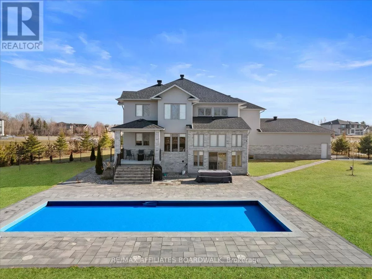 Cross Streets: Prince of Wales & Bankfield Road. ** Directions: Prince of Wales to Bankfield Road, Turn Right on First Line Road, Left on Dunblane Way, Left on McManus Ave. House is on your right!. Welcome to Maple Creek Estates, where luxury and family-friendly living combine in this John Gerard custom-built home on a premium 1.2-acre lot. Surrounded by mature trees for privacy, this estate is just minutes from Manotick Main Street. The fully fenced, private backyard features an auto-filling in-ground pool with six color-changing deck jets, a $16K Coverstar automatic pool cover for safety, extensive interlock, an irrigation system, and a Generac generator. Inside, enjoy 18-ft ceilings in the Great Room, 9-ft ceilings throughout, and a wall of windows that fill the space with natural light. The Sonos sound system is wired in most rooms, and the open-to-below design with modern railings is an absolute showstopper. The gourmet kitchen includes stainless steel appliances, quartz countertops, a walk-in pantry, and a coffee nook. This home also offers two offices, a playroom, and a main-floor powder room, perfect for work, play, and hosting guests, with a separate mudroom entrance to keep belongings out of sight. Upstairs, find four spacious bedrooms and three full bathrooms, including two en-suites and a Jack & Jill bath. The loft overlooks the Great Room, adding architectural appeal, and the upstairs laundry is equipped with built-in shelving and a sink. The partially finished basement is versatile, offering a bedroom, gym/flex room, full bathroom, games room, and wet bar. With a separate entrance from the garage, its ideal for a future in-law suite, with plumbing roughed in for a kitchen conversion. More than just a home, this is a true family compound - book your private viewing today! Full list of upgrades available. (id:27476)
