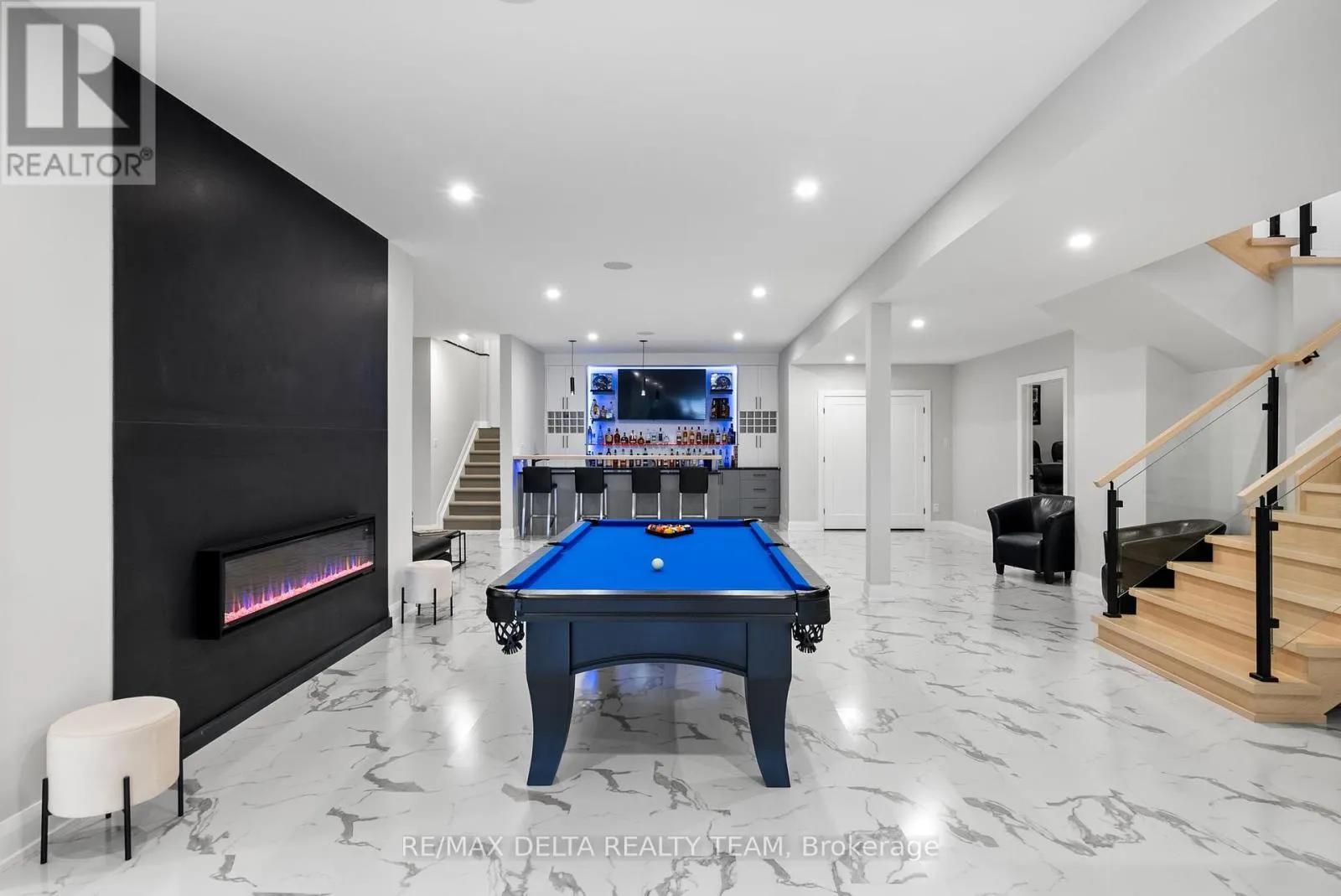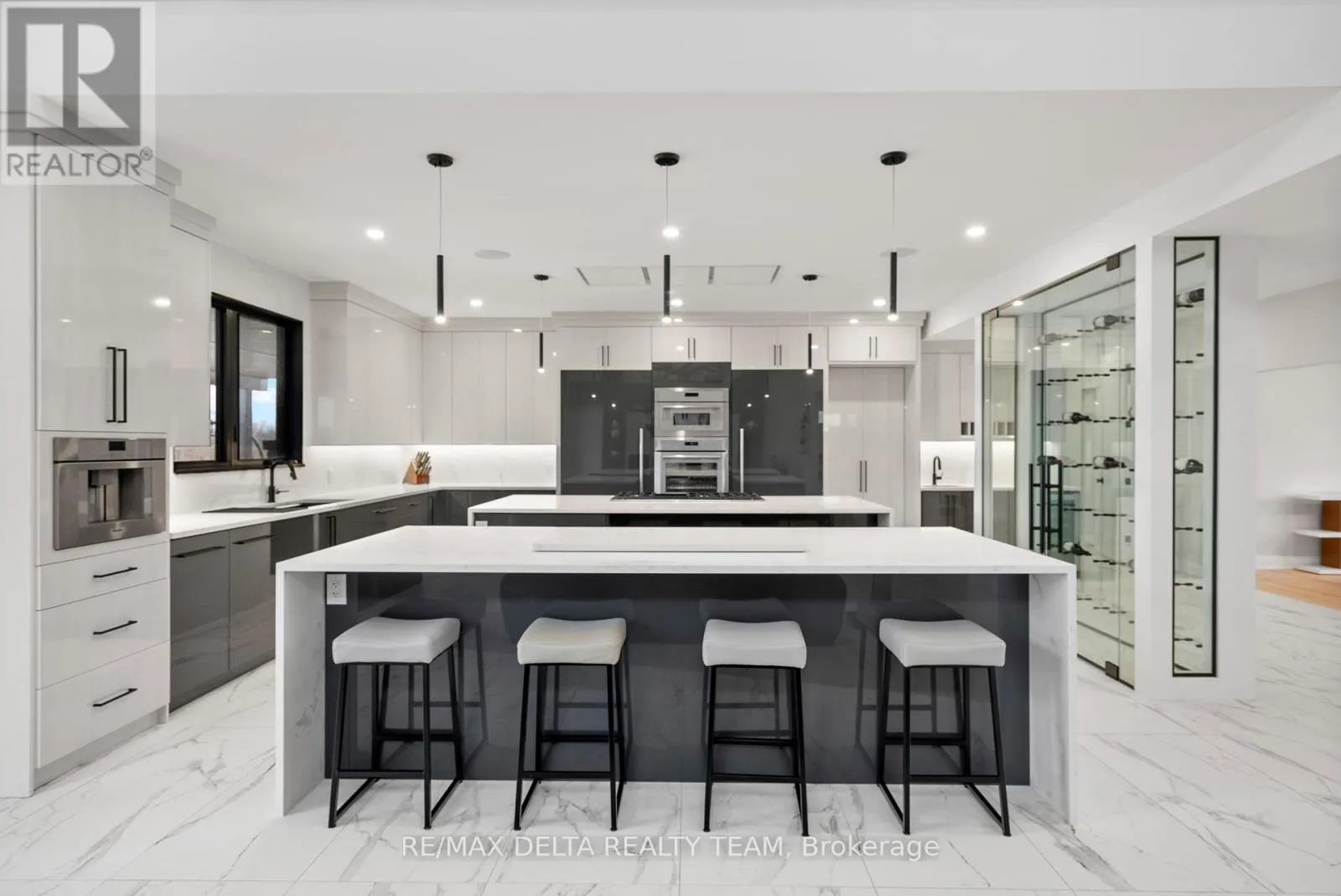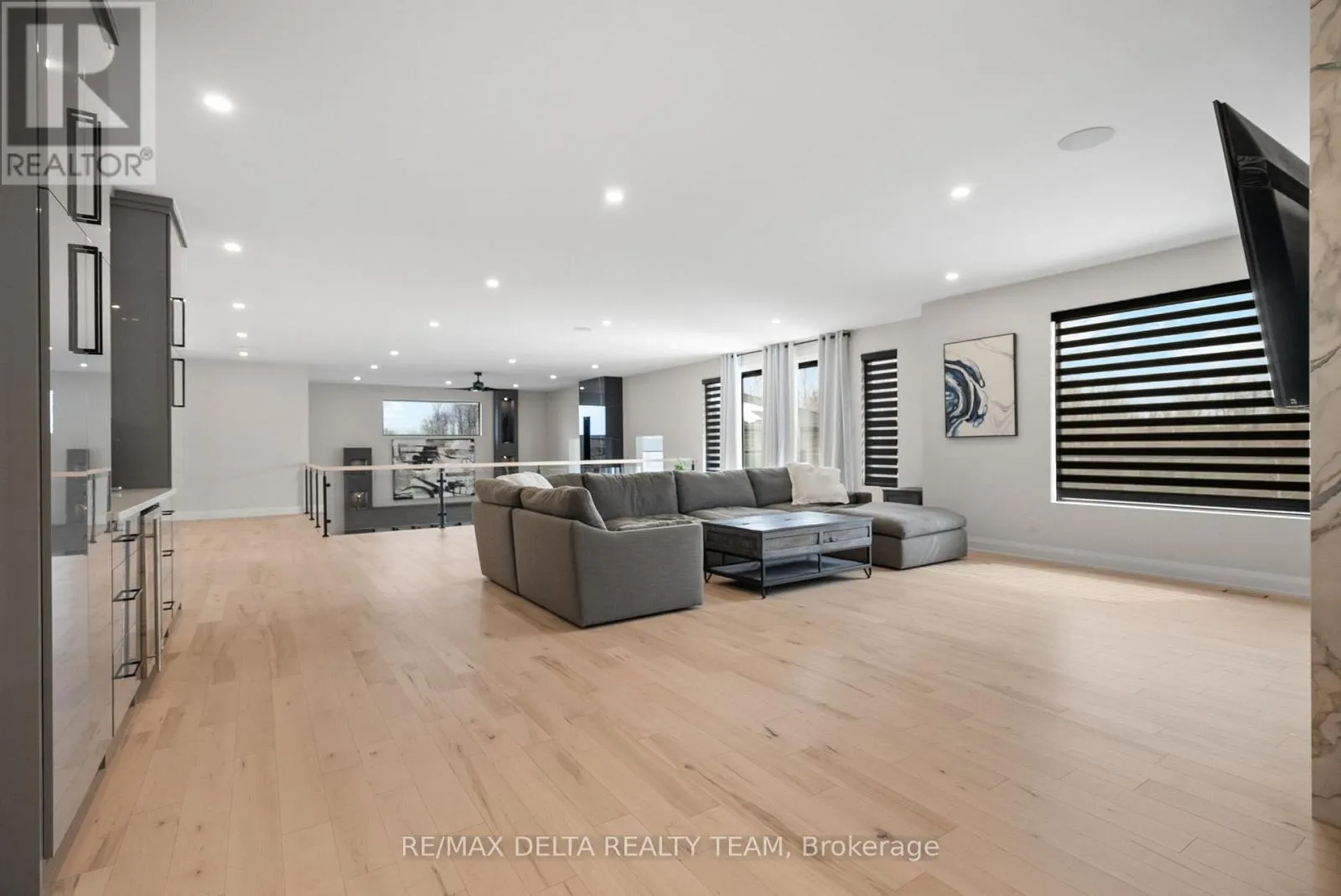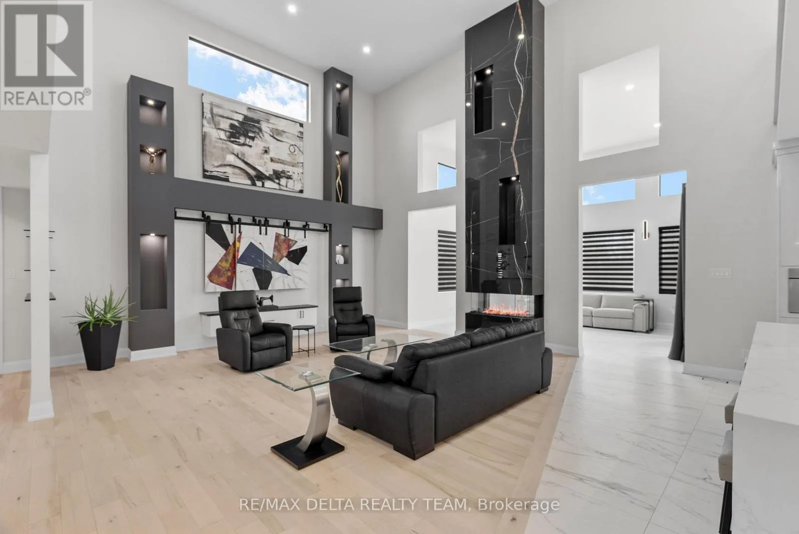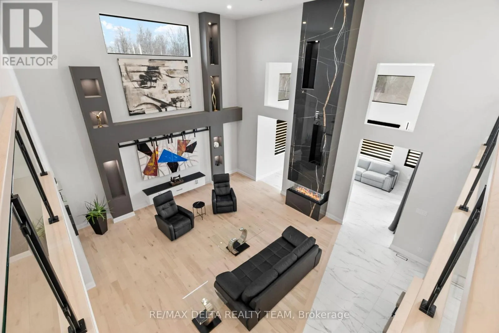 Cross Streets: Albion Rd & Mitch Owens Dr. ** Directions: From Manotick follow Mitch Owens Dr to Albion Road. Turn north and then west onto Killymoon Way then left onto Ballycastle. Located in Emerald Creek Estates near the intersection of Albion Rd & Mitch Owens Dr. Tailored for the executive lifestyle, perfected for family living. Welcome to 663 Ballycastle Crescent a showstopping modern residence with commanding curb appeal, set on a quiet crescent lined with prestigious homes and backing onto peaceful open space. With over 5,700 sq. ft. of refined living space, this 5-bedroom, 6-bathroom home is a true architectural statement. The exterior offers bold, clean lines and grand scale, while inside, elegance meets innovation. Soaring 20-foot ceilings and a dramatic open-riser staircase set the tone in the main living area anchored by a double-sided porcelain-wrapped fireplace and lighted artwork niches. Maple and leather-finished porcelain floors run throughout the main level. The kitchen is both luxurious and functional, with dual waterfall quartz islands, Thermador appliances, a walk-in pantry, and a striking glass wine feature. A spacious main floor suite with walk-in closet and ensuite offers flexible comfort for guests or extended family. Upstairs, an 830 sq. ft. loft overlooks the great room, connecting two bedrooms each with private ensuites and walk-ins plus a bar area. The 540 sq. ft. primary suite offers a dream walk-in closet with quartz island and a spa-inspired ensuite with freestanding tub, porcelain finishes, and custom-lit glass shower with rain heads and jets. The lower level features radiant-heated floors, a fireplace lounge, wet bar, theater, fifth bedroom and full bath, and a 900 sq. ft. commercial-grade gym with mirrors and glass dividers. Built-in media and smart systems run throughout. A 1,200 sq. ft. triple garage offers an oversized bay, loft storage, and backyard access. Two expansive decks add outdoor living space. Minutes from the new Hard Rock Casino and surrounded by luxury. This is a home that makes a statement. (id:27476)