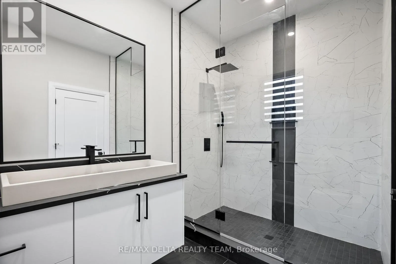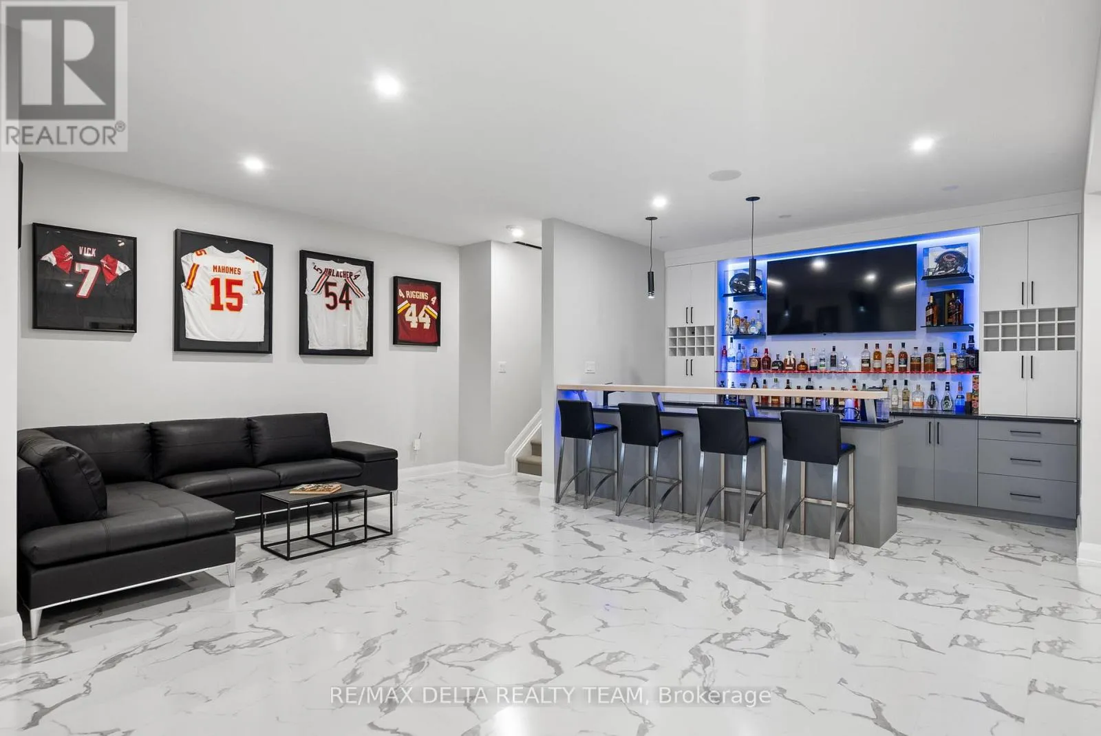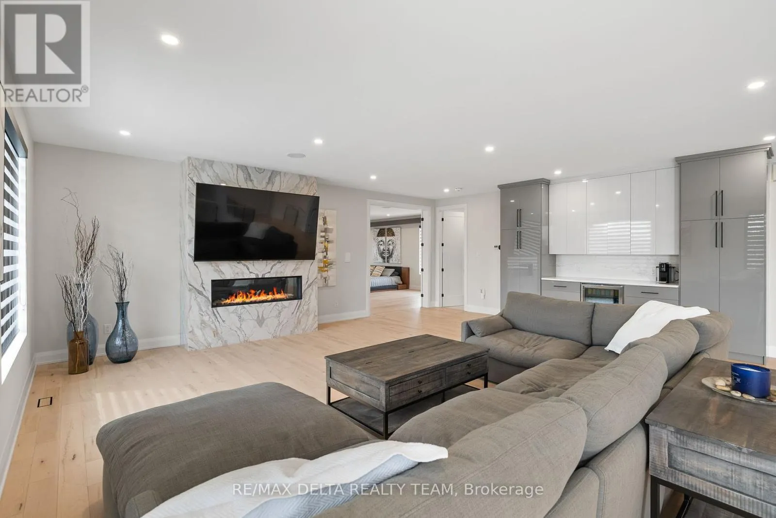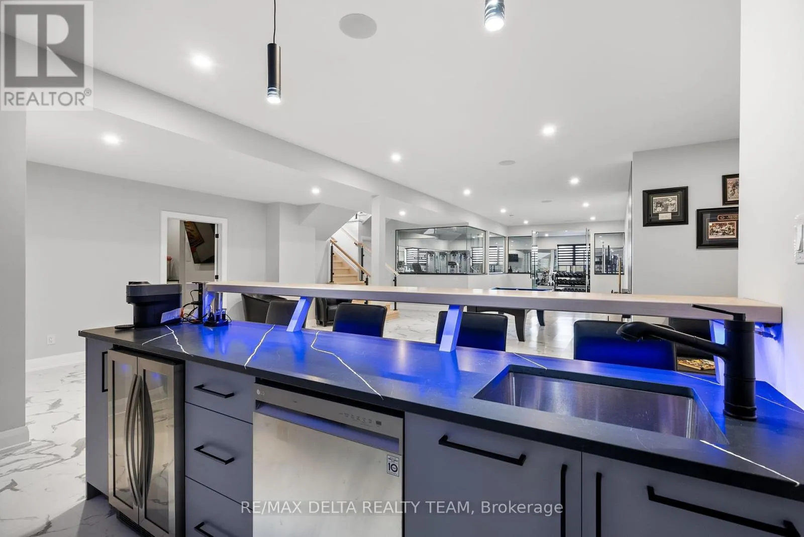 Cross Streets: Albion Rd & Mitch Owens Dr. ** Directions: From Manotick follow Mitch Owens Dr to Albion Road. Turn north and then west onto Killymoon Way then left onto Ballycastle. Located in Emerald Creek Estates near the intersection of Albion Rd & Mitch Owens Dr. Tailored for the executive lifestyle, perfected for family living. Welcome to 663 Ballycastle Crescent a showstopping modern residence with commanding curb appeal, set on a quiet crescent lined with prestigious homes and backing onto peaceful open space. With over 5,700 sq. ft. of refined living space, this 5-bedroom, 6-bathroom home is a true architectural statement. The exterior offers bold, clean lines and grand scale, while inside, elegance meets innovation. Soaring 20-foot ceilings and a dramatic open-riser staircase set the tone in the main living area anchored by a double-sided porcelain-wrapped fireplace and lighted artwork niches. Maple and leather-finished porcelain floors run throughout the main level. The kitchen is both luxurious and functional, with dual waterfall quartz islands, Thermador appliances, a walk-in pantry, and a striking glass wine feature. A spacious main floor suite with walk-in closet and ensuite offers flexible comfort for guests or extended family. Upstairs, an 830 sq. ft. loft overlooks the great room, connecting two bedrooms each with private ensuites and walk-ins plus a bar area. The 540 sq. ft. primary suite offers a dream walk-in closet with quartz island and a spa-inspired ensuite with freestanding tub, porcelain finishes, and custom-lit glass shower with rain heads and jets. The lower level features radiant-heated floors, a fireplace lounge, wet bar, theater, fifth bedroom and full bath, and a 900 sq. ft. commercial-grade gym with mirrors and glass dividers. Built-in media and smart systems run throughout. A 1,200 sq. ft. triple garage offers an oversized bay, loft storage, and backyard access. Two expansive decks add outdoor living space. Minutes from the new Hard Rock Casino and surrounded by luxury. This is a home that makes a statement. (id:27476)