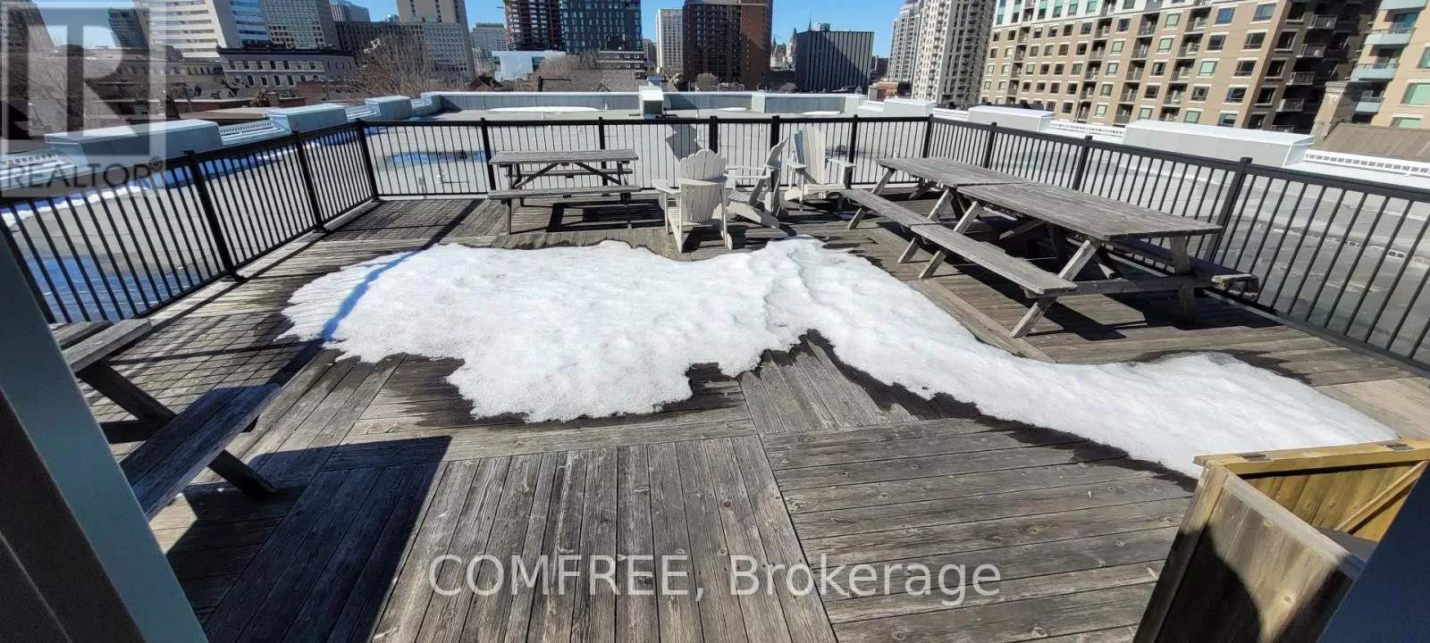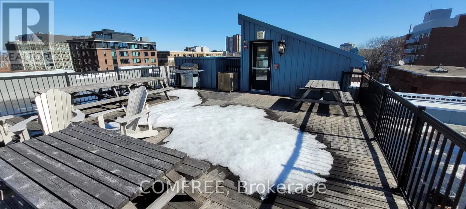 Cross Streets: Daly Ave. ** Directions: Highway 417E; Take Exit 118 for Rue Nicholas St; Continue onto Nicholas St; Right onto Laurier Ave; Left onto Cumberland St; Right onto Wilbrod St; Left onto King Edward Ave. Condo in downtown Ottawa (Sandy Hill), this one bedroom + den w/ parking is waiting for you. In an unbeatable location, near the exciting downtown core and University of Ottawa, this low-rise complex (47 units/5 floors) offers great urban living. Relax in your landscaped courtyard or enjoy your common area roof top patio (w/ BBQ) and be amazed at the view of our Capital with its historical buildings and landmarks. This 739 sq. ft. condo is elegantly laid out - open concept with views from kitchen into living/dining room, and den which may be used as a home office, additional relaxing space or may be converted into a second bedroom by simply adding a double sliding barn door. Soundproofed and very quiet. This 4th floor condo features a south facing balcony and quality finishes like laminated hardwood floors, ceramic flooring, air conditioning, granite countertops and backsplash. (id:27476)