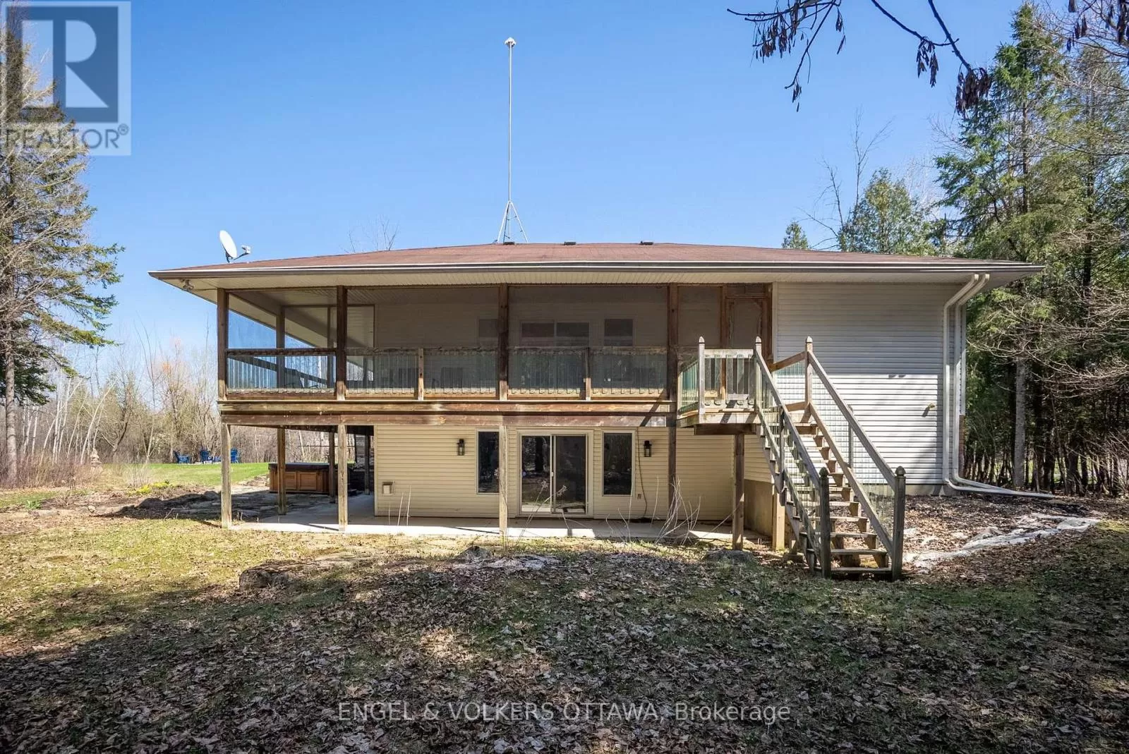 Cross Streets: Marcella Road and Greys Creek Road. ** Directions: Bank Street South, to Greys Creek Road. Turn right onto Marcella St. (Greys Creek Estates). Welcome to 7359 Marcella Drive, a private 2-acre retreat in Greely on a quiet no-through-traffic street. This lovely 5-bedroom, 3-bathroom home has seen over $120,000 in upgrades, including popcorn ceiling removal ($7,000), outdoor vinyl siding w/ upgraded urethane protectant, front door replacement ($10,000), garage finishes ($9,000), renovation of primary bathroom ($15,000) with approximately an additional ($69,450) in updates throughout. Open-concept main level features hardwood floors, large windows, gas fireplace, laundry & access to a wrap-around, partly screened-in deck. Kitchen includes white cabinetry, tiled floors, granite countertops, ample storage, & generous counter space for cooking & entertaining. Primary bedroom sits on right wing w/ ensuite, his/hers closets, while two additional bedrooms & full bathroom are on opposite side. A few steps down, walkout lower level offers family & games room w/ wall-to-wall windows, second gas fireplace, two eligible bedrooms, & a two-piece bathroom, where a tub or shower could easily be installed. Heated garage ($5000 HAWT DAWG Gas Heater for 2000 sq ft ) is a handy persons dream retreat with custom epoxy flooring ($3400). Improvements at every turn! Outside offers privacy surrounded by mature trees, no rear neighbors, firepit for evenings w/ friends. Located close to golf, walking paths, schools, & everyday amenities. "Privacy, Perfection, and Peace of Mind Where Refined Living Meets Tranquil Surroundings" (id:27476)