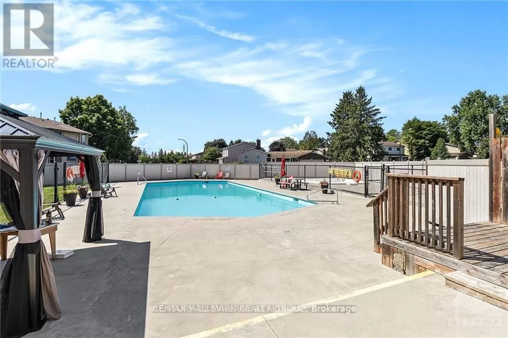 Cross Streets: Innes Rd. ** Directions: 417 to Innes exit, turn left to second Stonehenge, property on right. Spacious 3-bedroom 2 bathroom garden home situated in a family-friendly neighbourhood and close to public transit, LRT station, schools, shopping, Costco, and easy access to the 417 and Pine View Golf Course. The main floor offers an updated eat-in kitchen with SS appliances and an open concept living and dining room area with gleaming hardwood floors and a patio door leading to the private fenced backyard overlooking trees and grass. A convenient powder room completes this level. Large master bedroom upstairs, 2 additional good-sized bedrooms and a 4-piece main bathroom. Large lower-level recreation room, laundry room, and storage area. New furnace (2024), new stove, microwave, and washing machine. Enjoy the convenience of an outdoor pool during those hot summer days: 6 appliances and central air. (id:27476)