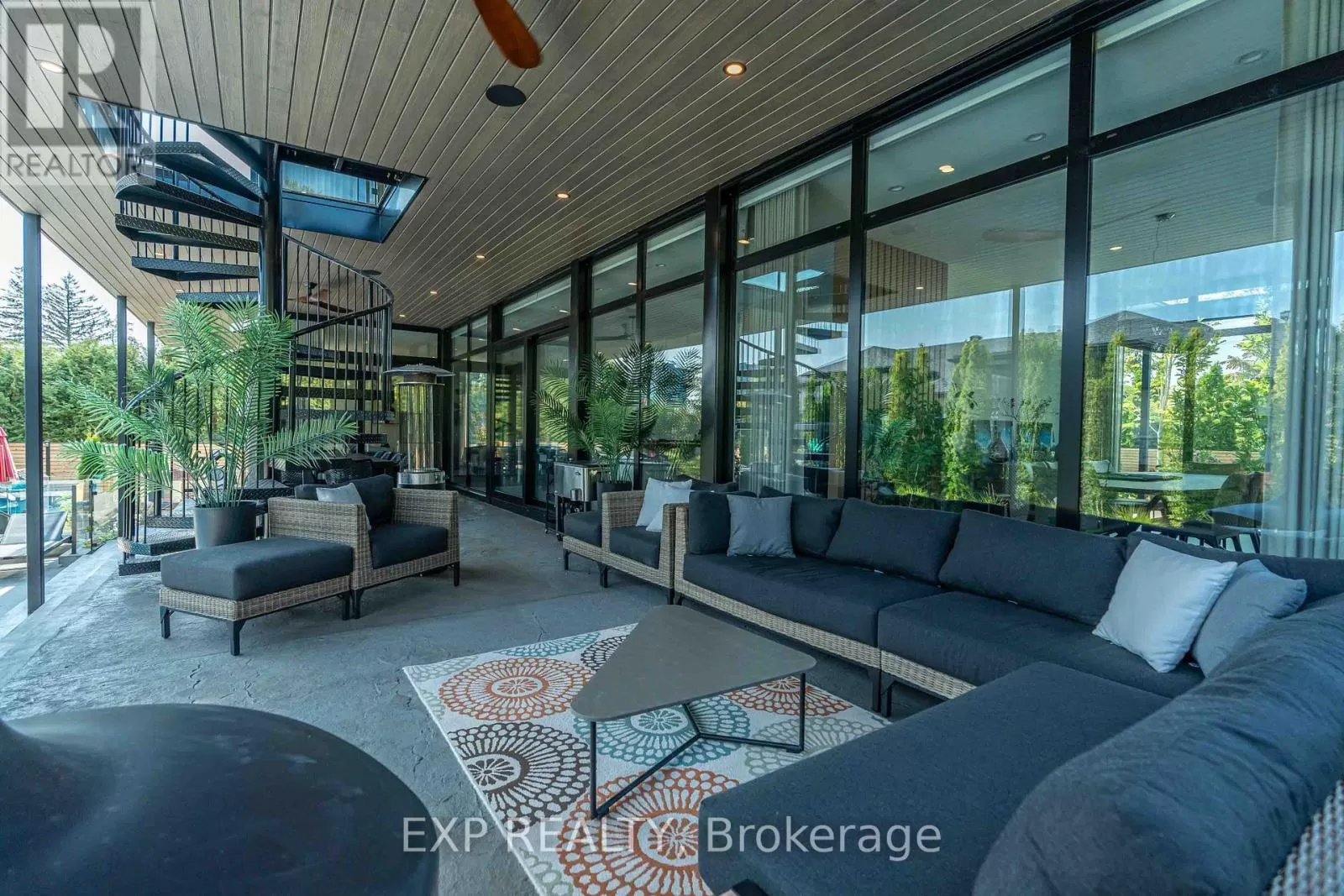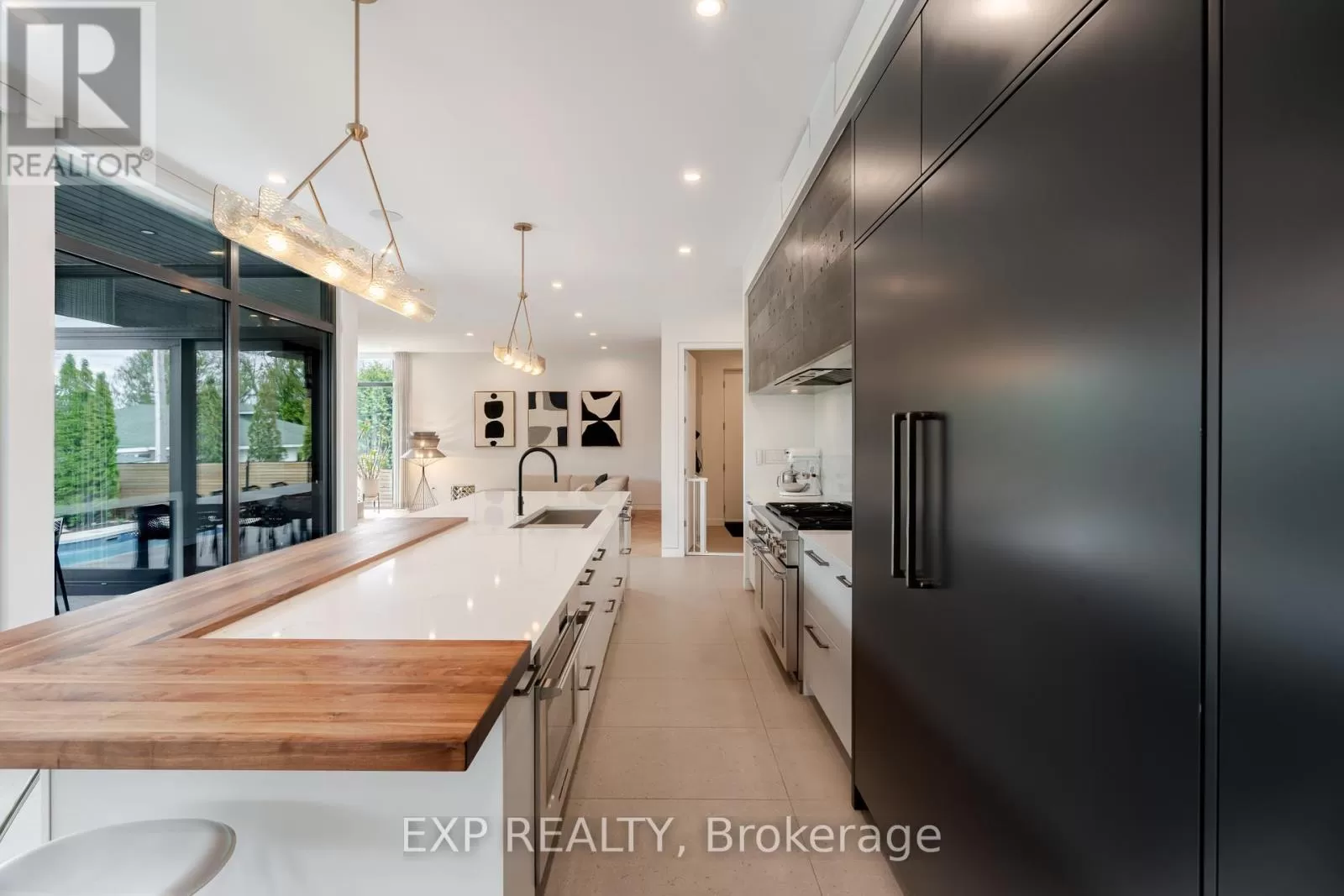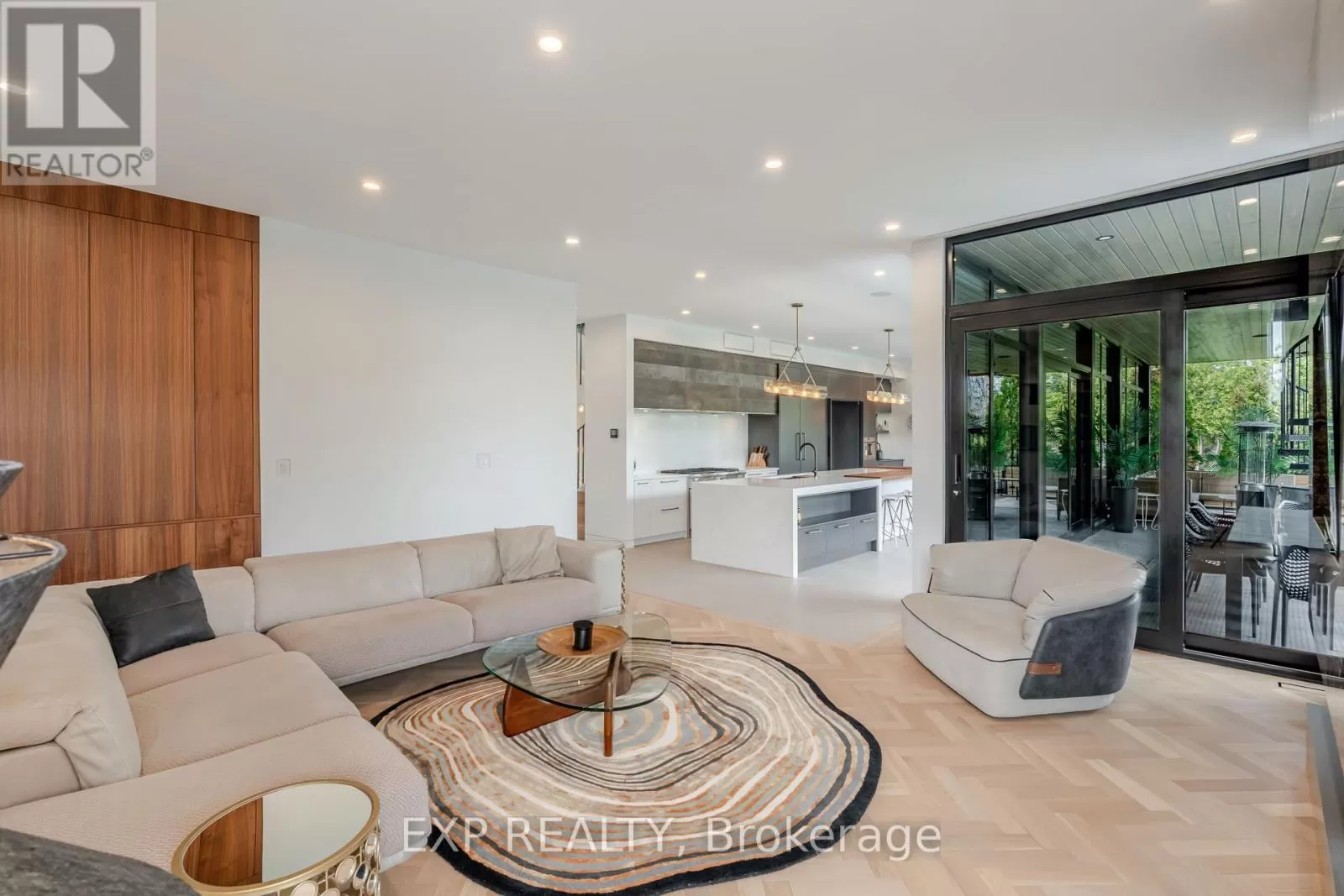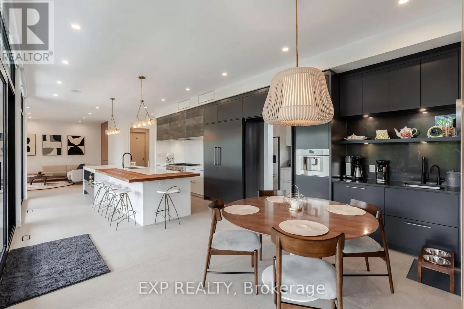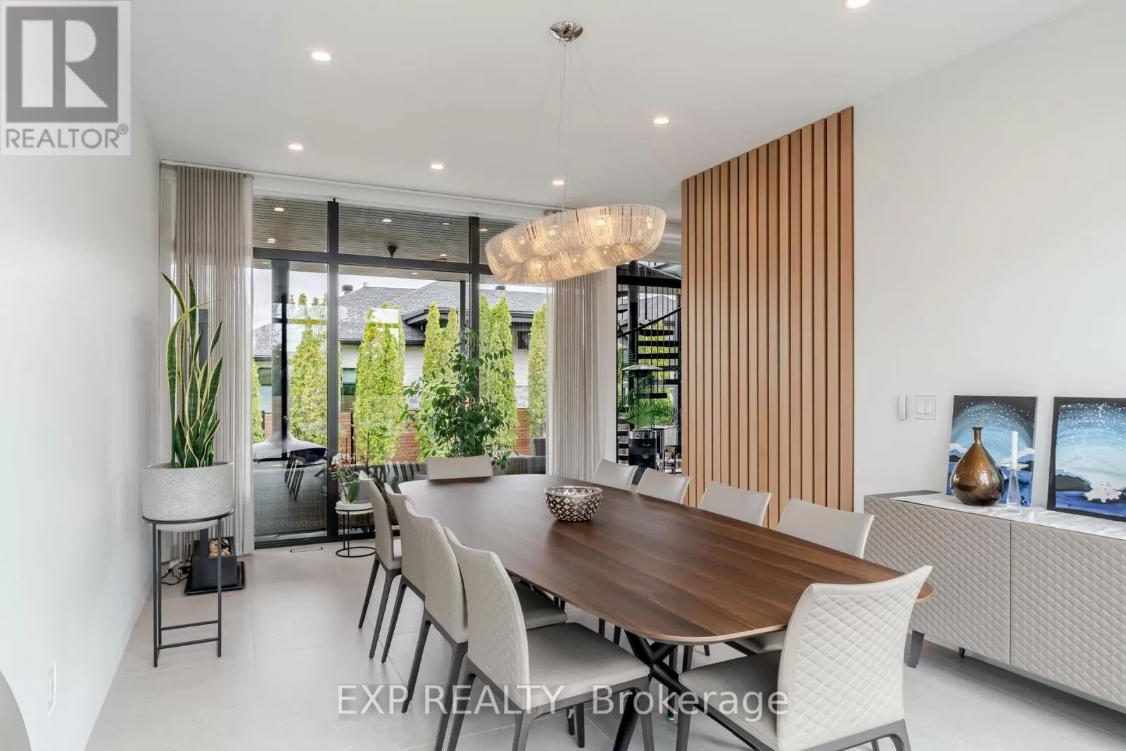 Cross Streets: Colonnade. ** Directions: Prince of Wales at Colonnade. Experience unparalleled luxury & architectural masterpiece offering over 5,000 sq. ft. of meticulously finished space across three levels. This custom-built luxurious home is a rare blend of refined design, modern function, and exceptional craftsmanship & energy efficient, located just steps from the Rideau River. Featuring 5 bedrooms, 4 full bathrooms, a powder room, custom made circuital staircase, an Garaventa Elevator access to all 4 floors, & a 3-car garage with a hoist system, this estate offers space & convenience for upscale living. Inside, enjoy 10 ceilings, floor-to-ceiling European windows, hardwood and porcelain flooring, designer lighting (Bocci, Cattelan Italia, Arteriors), & four fireplaces including a stunning suspended outdoor Gyrofocus wood-burning centrepiece.The Downsview kitchen by Astro Design is a chefs dream with Thermador appliances, built-in coffee bar, and a fully equipped walk-in pantry that can be concealed. The luxurious primary suite features a spa-like ensuite, walk-in closet, gas fireplace, and drop-down ceiling TV.The fully finished basement includes radiant in-floor heating, a bedroom, office, gym, rec-space, wine room, and concrete cold storage cantina. Outside, the private landscaped yard includes a heated saltwater pool, 8-person hot tub with a motorized pergola, three covered patios, custom metal exterior staircase, and water views from the second-floor terrace.Additional features: Generac whole-home power system, custom fencing and gate with intercom, 6-camera app-controlled security, permeable Pure Pave driveway, irrigation system, and two full laundry rooms.This rare luxury home must be seen to be appreciated. Perfectly suited for multigenerational living, with smart accessibility features for effortless comfort. (id:27476)