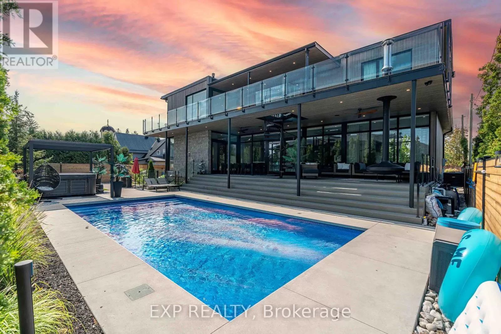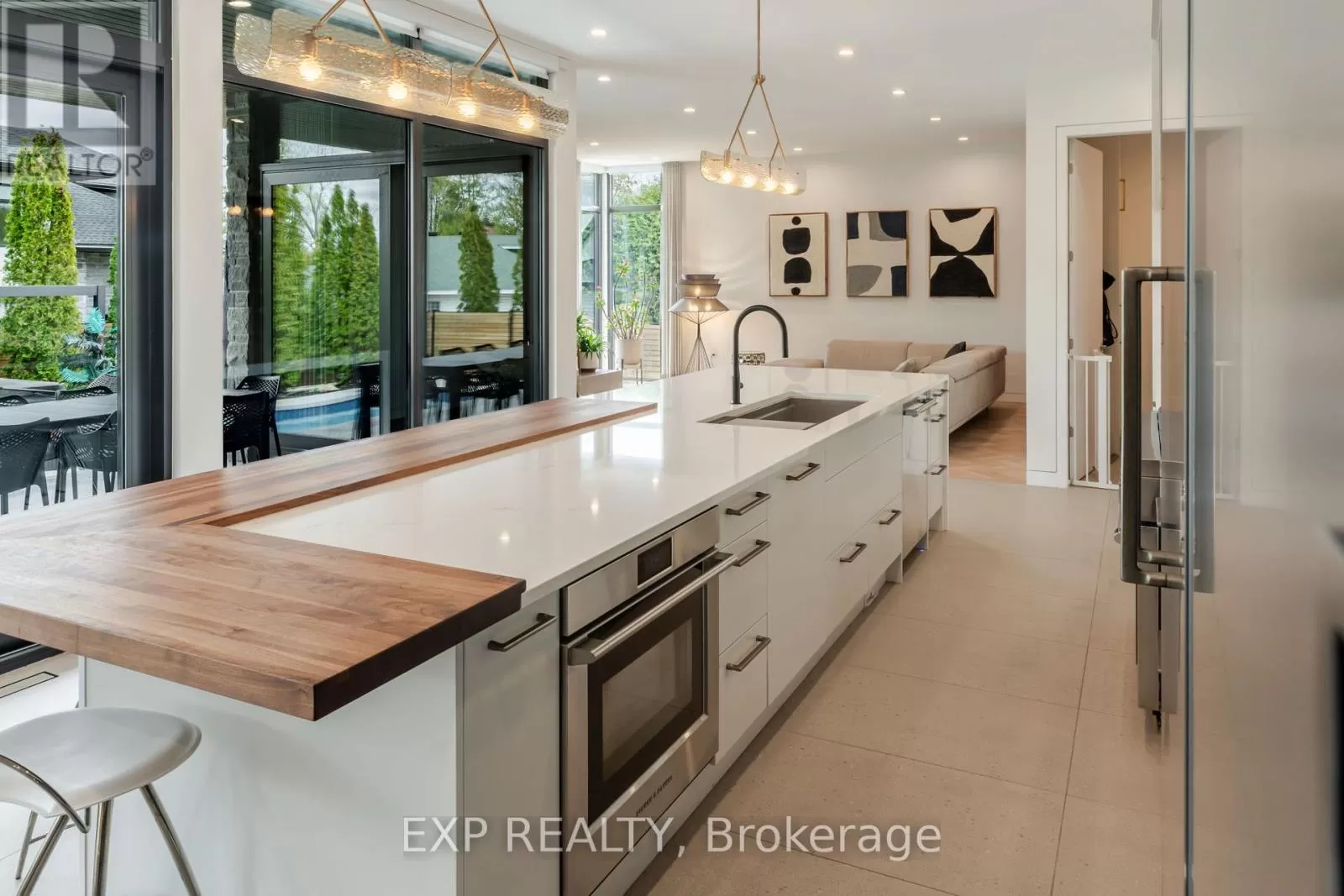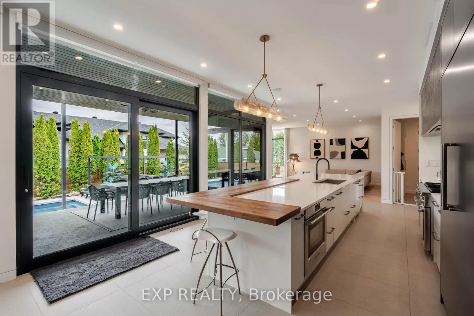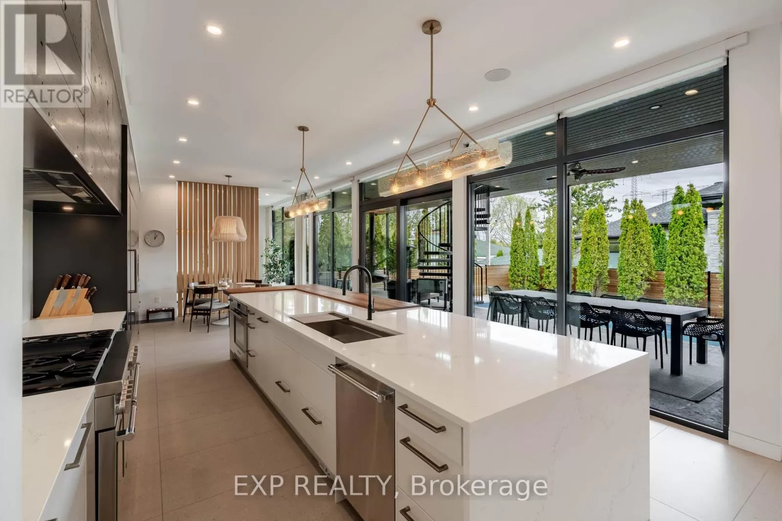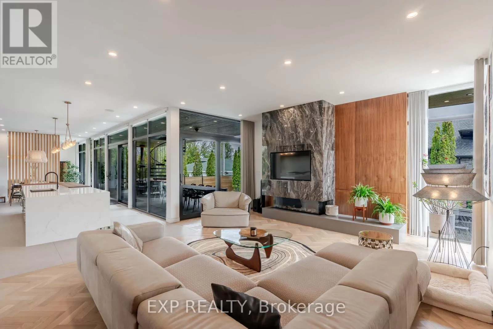 Cross Streets: Colonnade. ** Directions: Prince of Wales at Colonnade. Experience unparalleled luxury & architectural masterpiece offering over 5,000 sq. ft. of meticulously finished space across three levels. This custom-built luxurious home is a rare blend of refined design, modern function, and exceptional craftsmanship & energy efficient, located just steps from the Rideau River. Featuring 5 bedrooms, 4 full bathrooms, a powder room, custom made circuital staircase, an Garaventa Elevator access to all 4 floors, & a 3-car garage with a hoist system, this estate offers space & convenience for upscale living. Inside, enjoy 10 ceilings, floor-to-ceiling European windows, hardwood and porcelain flooring, designer lighting (Bocci, Cattelan Italia, Arteriors), & four fireplaces including a stunning suspended outdoor Gyrofocus wood-burning centrepiece.The Downsview kitchen by Astro Design is a chefs dream with Thermador appliances, built-in coffee bar, and a fully equipped walk-in pantry that can be concealed. The luxurious primary suite features a spa-like ensuite, walk-in closet, gas fireplace, and drop-down ceiling TV.The fully finished basement includes radiant in-floor heating, a bedroom, office, gym, rec-space, wine room, and concrete cold storage cantina. Outside, the private landscaped yard includes a heated saltwater pool, 8-person hot tub with a motorized pergola, three covered patios, custom metal exterior staircase, and water views from the second-floor terrace.Additional features: Generac whole-home power system, custom fencing and gate with intercom, 6-camera app-controlled security, permeable Pure Pave driveway, irrigation system, and two full laundry rooms.This rare luxury home must be seen to be appreciated. Perfectly suited for multigenerational living, with smart accessibility features for effortless comfort. (id:27476)