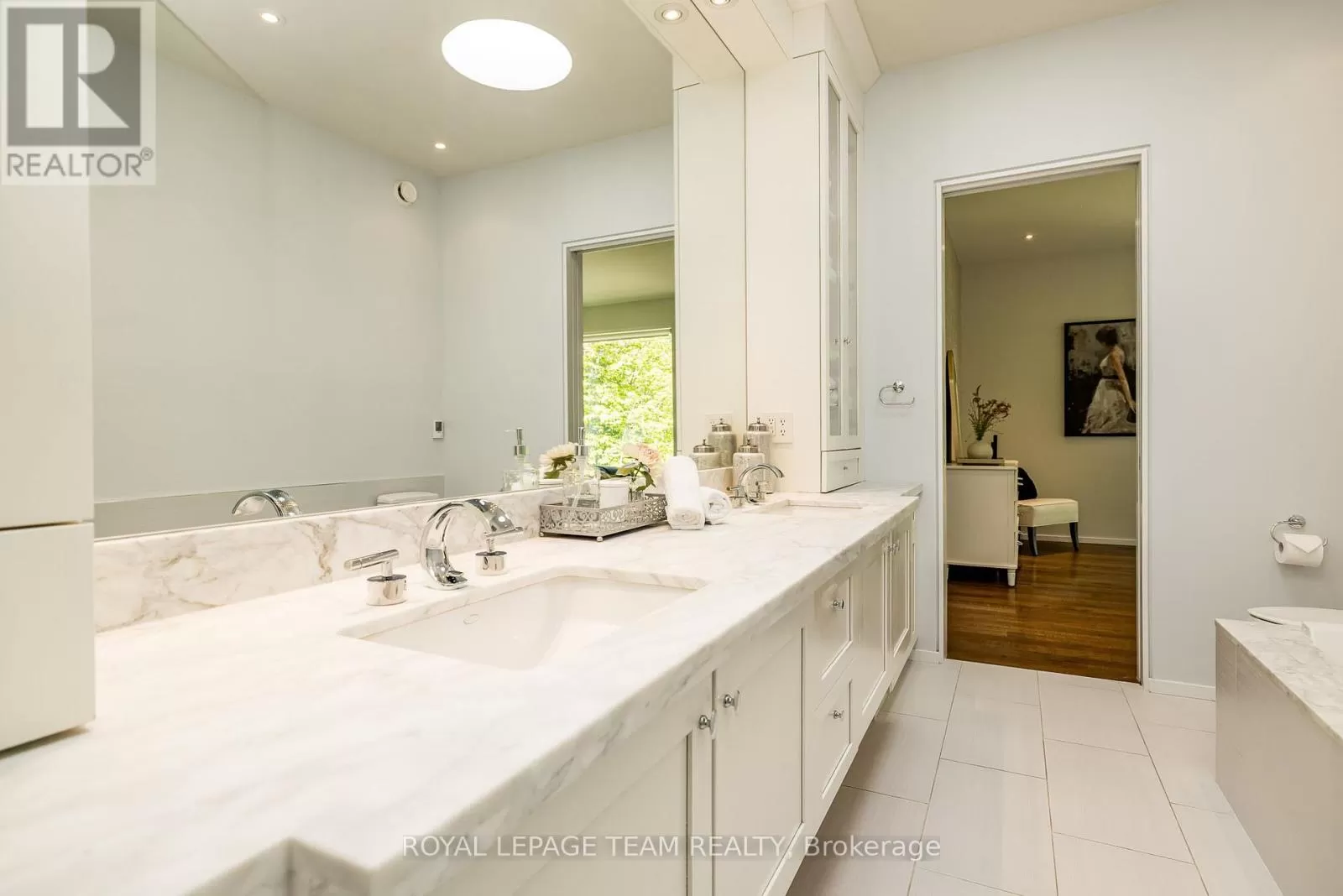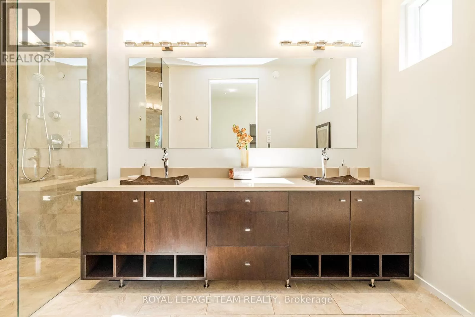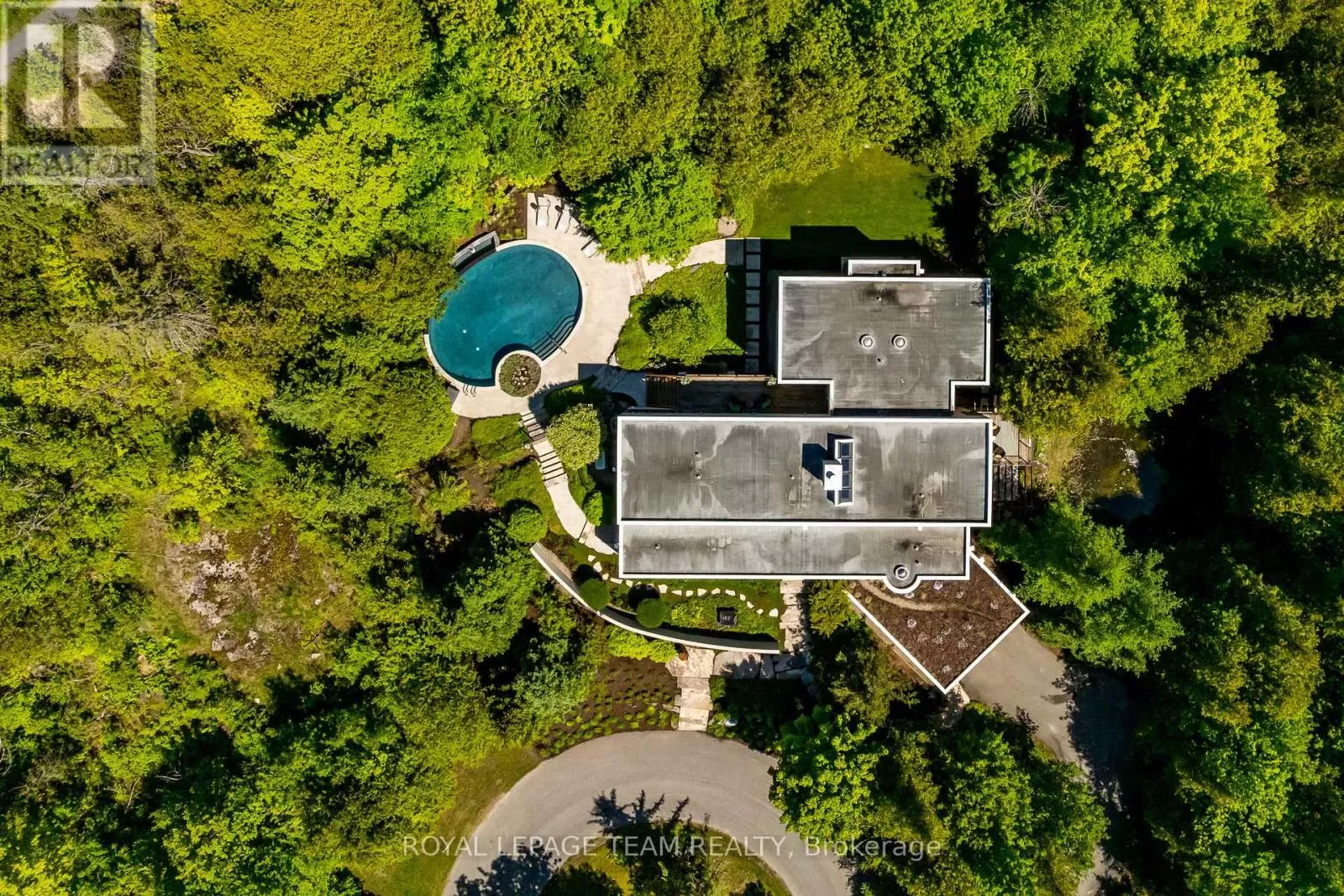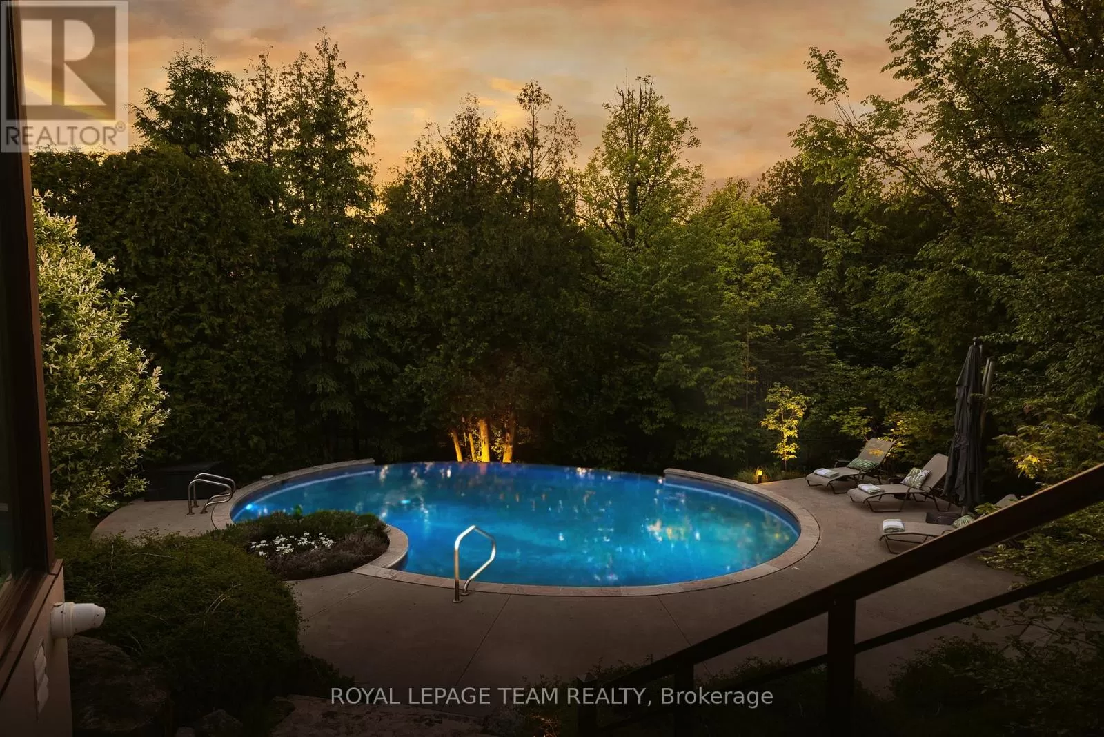 Cross Streets: Goulbourn Forced Road and Kanata Avenue. ** Directions: From Highway 417, Take the Terry Fox Drive exit, Turn right onto Kanata Avenue, Turn left onto Goulbourn Forced Road,Turn right onto Kanata Rockeries Private.14 Kanata Rockeries Private, will be on your right. Welcome to a one-of-a-kind estate where timeless elegance, refined craftsmanship, and natural beauty come together. Tucked away on a secluded, professionally landscaped lot in the exclusive Kanata Rockeries, this 6-bed, 5-bath custom home offers over 5,100 sq ft of exquisitely designed living space. An architectural masterpiece by Richard Limmert, built by esteemed Terra Nova Building Corp. This exceptional home blends luxury and lifestyle seamlessly. Surrounded by lush gardens, water features, and mature trees, the setting feels like a private resort. Multiple patios and decks offer perfect vantage points for enjoying the saltwater infinity-edge gunite pool, cozy fire pit, and even a charming winter skating pond. Step inside to soaring 12-ft ceilings and a light-filled open-concept layout. The gourmet kitchen features an oversized island, granite countertops, and flows effortlessly into the dining and living areas ideal for entertaining. Phantom-screened doors open to peaceful views and fresh air. The primary suite is a tranquil retreat, with a walkout to a private patio, automated retractable privacy screens, a spacious walk-in closet, and a spa-like 5-piece ensuite with quartz counters, heated floors, and a rain shower. The fully finished walk-out lower level includes radiant in-floor heating, a stylish wet bar with fridge and dishwasher, private theatre room, at-home gym, and a mudroom with a built-in dog shower. Step outside directly to the pool and beautifully landscaped backyard. Smart features like a built-in generator, advanced irrigation, and snow-melting roof cables ensure year-round comfort and convenience. This is more than a home, it's a lifestyle. Where every detail has been curated for living beautifully, indoors and out. Nestled in the prestigious Kanata Lakes community you are close to all amenities and high ranking schools while being surrounded by nature and wildlife! (id:27476)