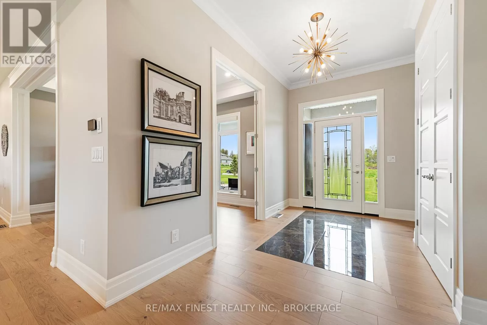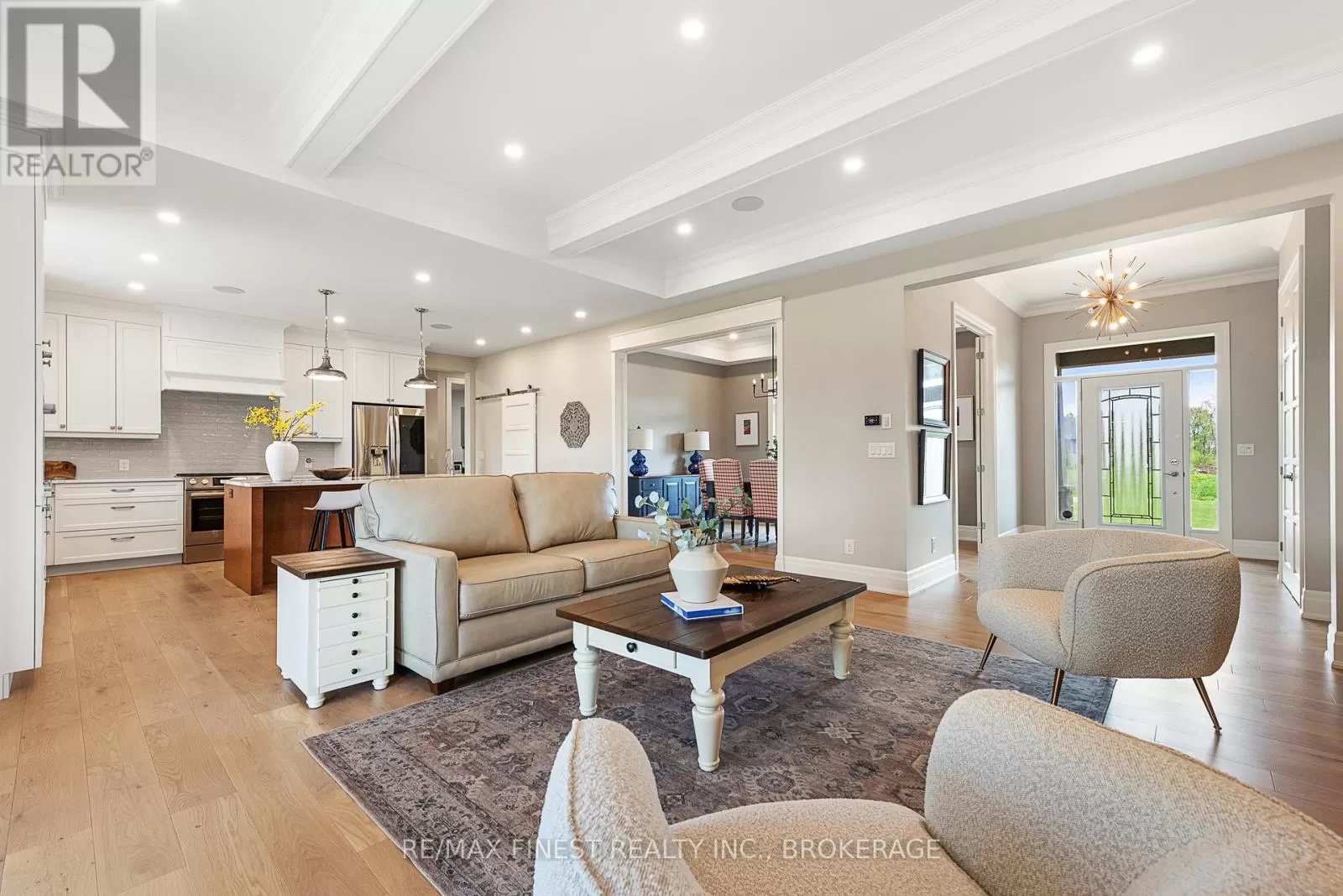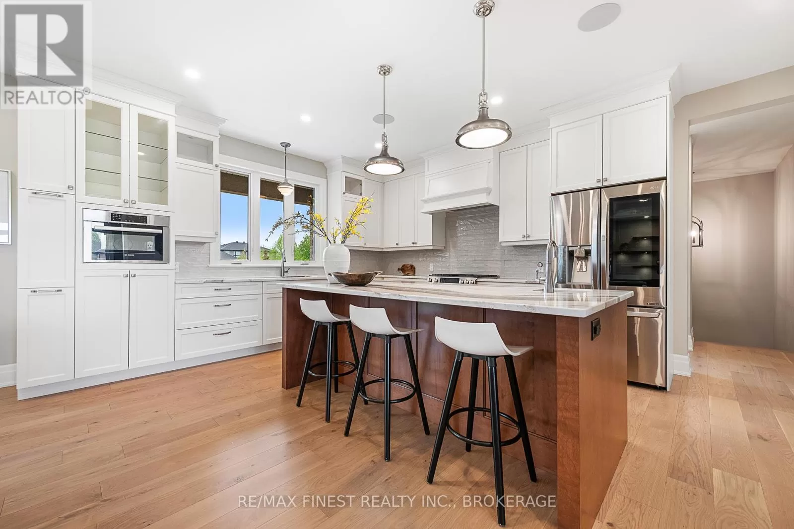Cross Streets: Dunblane Way & McManus Ave. ** Directions: From Highway 416, exit to Manotick, East on Bankfield Road, right on First Line Road, left on Dunblane Way, left on McManus Ave. This beautifully designed Manotick bungalow offers the perfect blend of classic charm and modern style. Thoughtfully laid out with quality finishes and meticulous attention to detail, the home features an open-concept main living area with wide plank white oak hardwood, a stunning kitchen with walk-in pantry, and a cozy living room with gas fireplace and custom built-ins. The elegant formal dining room sets the stage for refined entertaining, while natural light pours into the sunroom, drawing attention to the elegance of the Norwegian fireplace a perfect spot to unwind or gather in comfort. The private primary suite is tucked away for extra peace and quiet, complete with a luxurious ensuite that includes separate vanities and dual walk-in closets. You'll also find a practical main floor laundry and a well-organized mudroom connecting to the garage where a separate entrance provides private access to the lower level, perfect for guests or a live-in teenager. Downstairs, the bright lower level has hickory hardwood throughout, a spacious family room, full bathroom, sauna, and a private 4thbedroom. Cambria quartz counters run throughout, and all full bathrooms include in-floor heating for added comfort. Outside, the curated landscaping frames a welcoming front porch, deck, and patio. Just minutes to the 416, with nearby trails connecting you to the heart of the village. (id:27476)