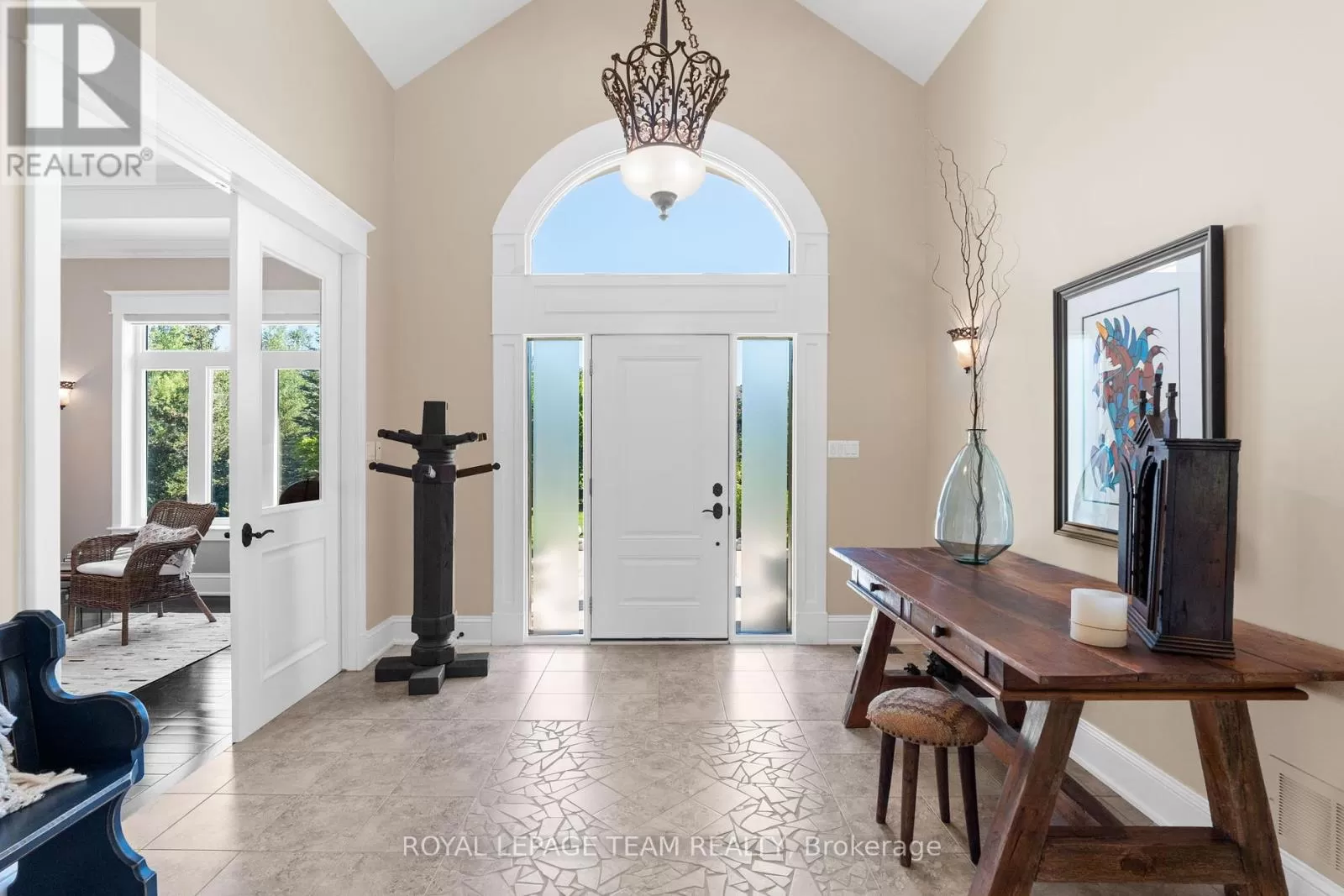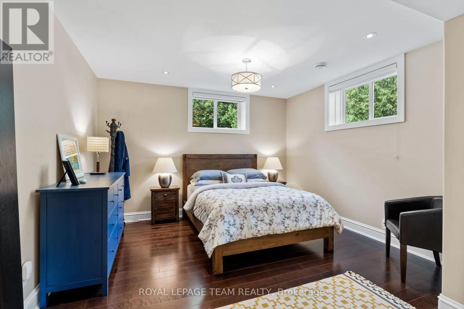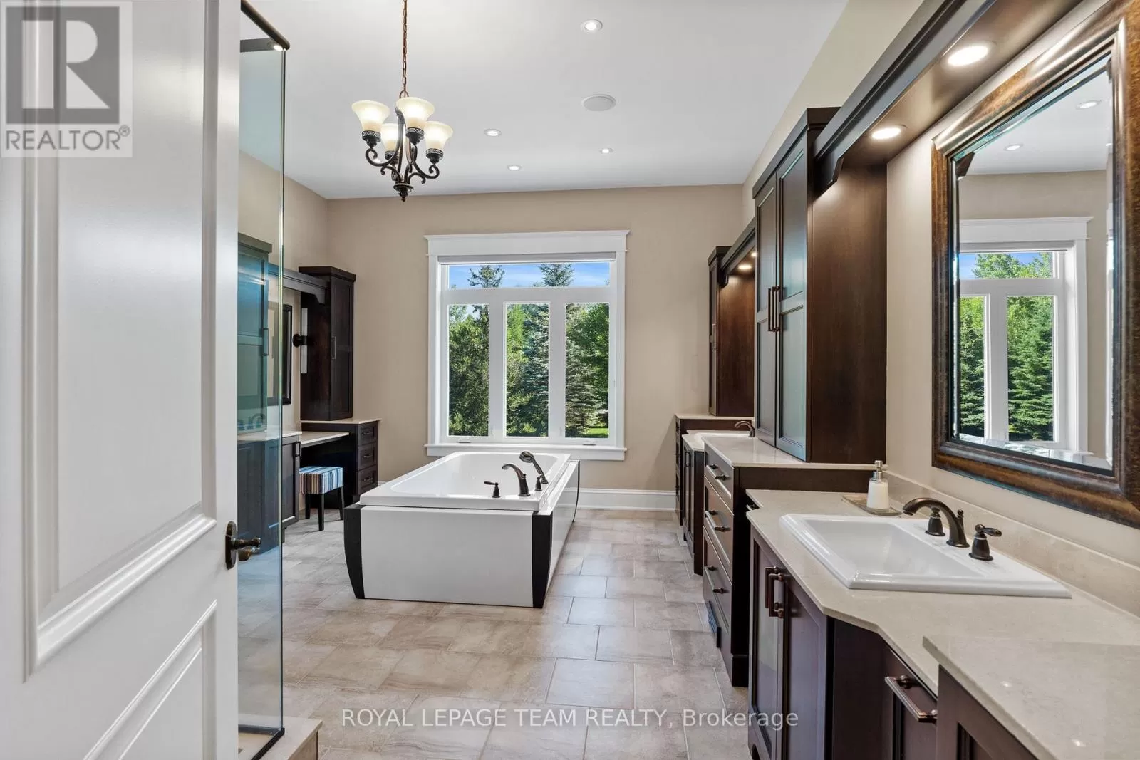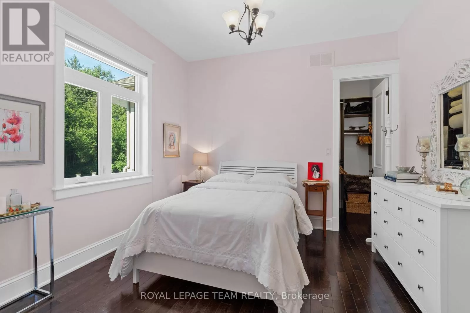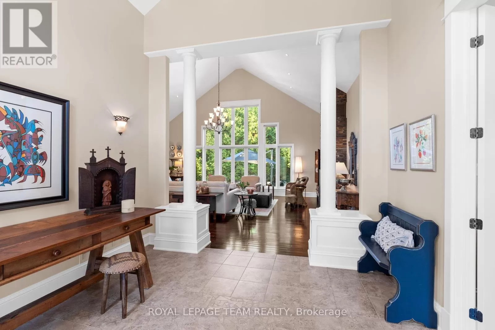 Cross Streets: Dozois Road. ** Directions: From Mitch Owens Road, turn onto Dozois Rd. Turn left onto Knights Dr. Set on a sprawling 2.5-acre estate lot in Manotick's Rideau Forest, this custom-built bungalow offers an exceptional lifestyle in a setting defined by mature trees and natural beauty. The property seamlessly blends timeless design with a thoughtful layout ideal for both relaxed family living and refined gatherings. Inside, the home features elegant architectural elements, including cathedral and tray ceilings, hardwood flooring, recessed lighting, and a striking fireplace that anchors the main living area. Expansive windows fill the interior with natural light and offer peaceful views of the surrounding landscape. The eat-in kitchen is beautifully appointed with rich wood cabinetry, granite countertops, stainless steel appliances, a centre island, a distinctive backsplash, and a walk-in pantry. Adjacent formal and informal living areas offer flexibility for everyday living and hosting. Three bedrooms are located on the main level, including a private primary suite with its own fireplace, walk-in closet, and a luxurious five-piece ensuite. The fully finished lower level offers impressive space and mirrors the quality of the main floor. It features a large recreation room with a refreshment station/wet bar, two additional bedrooms, a full bathroom, a home office, and flexible areas that can adapt to a variety of needs. Outdoors, the property unfolds into a private oasis that invites you to unwind. Professionally landscaped, it features multiple patios and an inground saltwater pool, all surrounded by a backdrop of mature woodland that ensures privacy. A truly exceptional residence, located just moments from amenities in the charming village of Manotick. (id:27476)