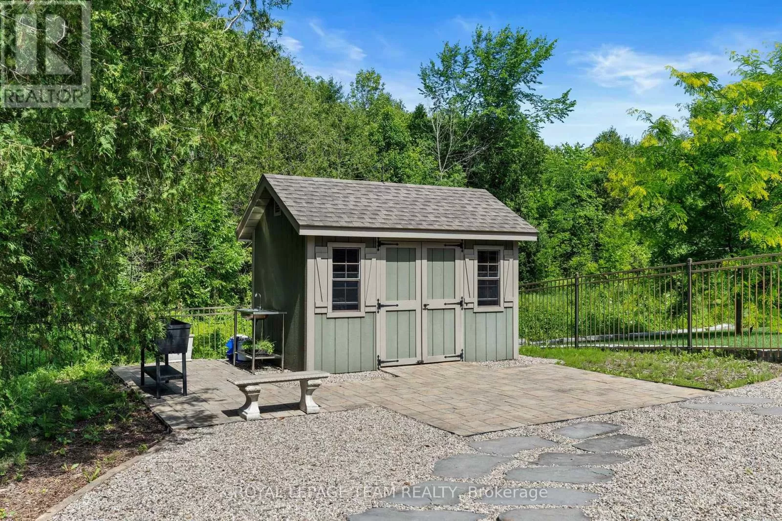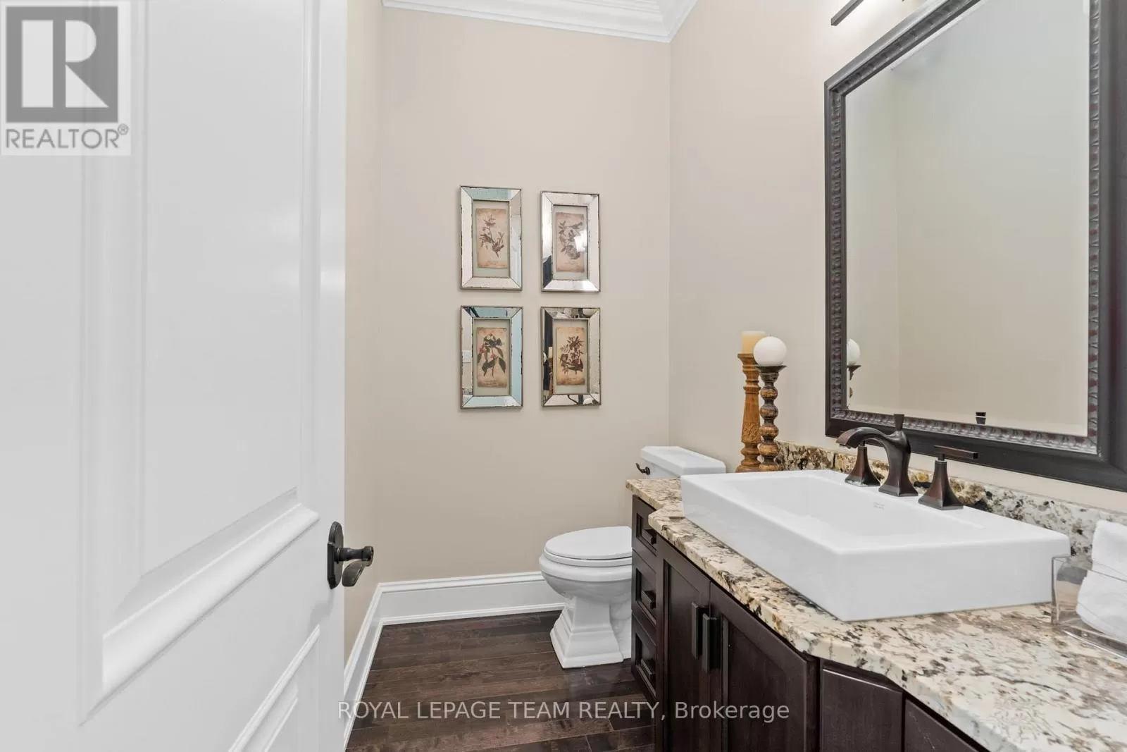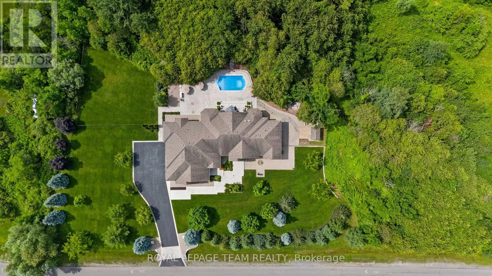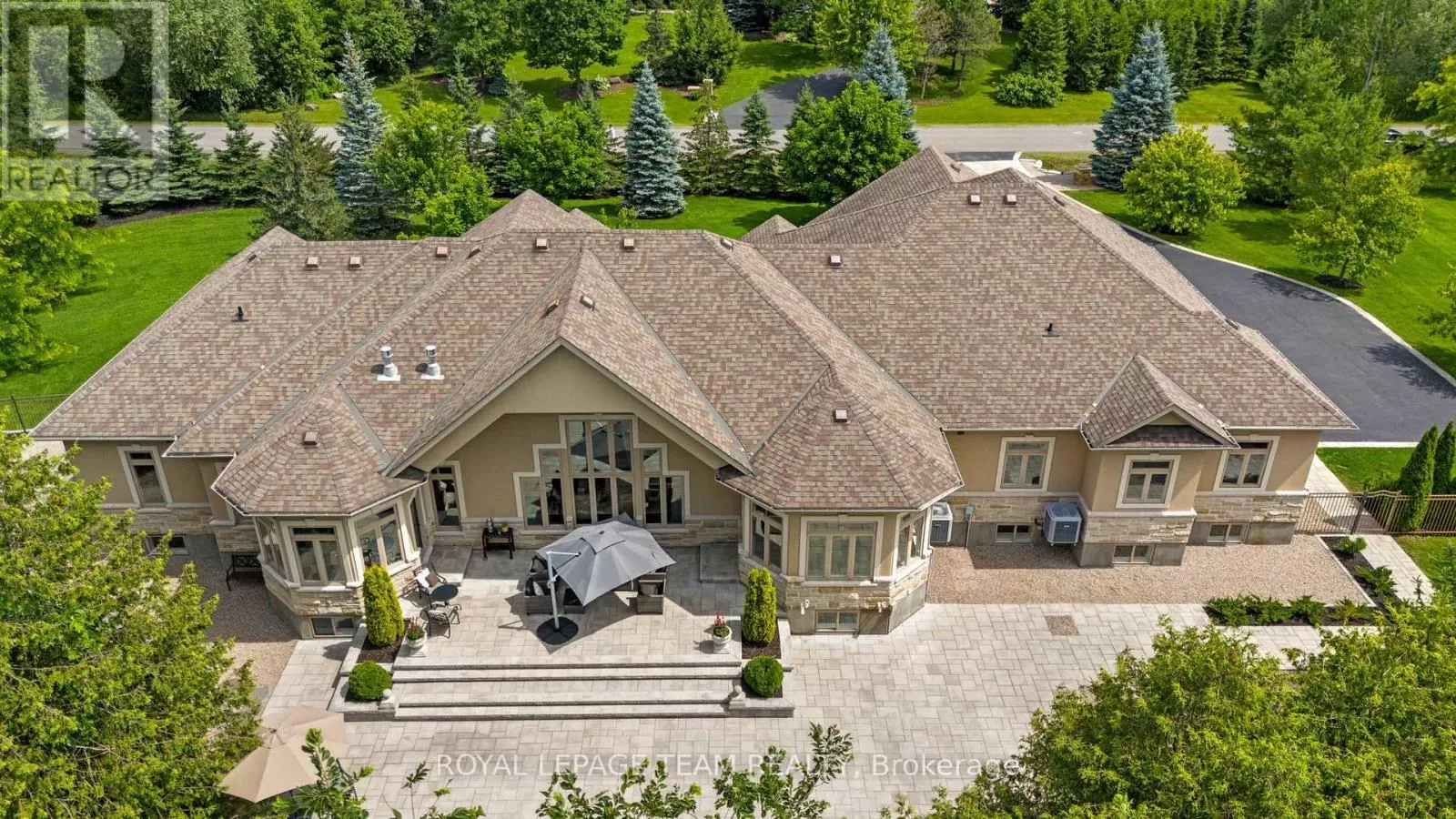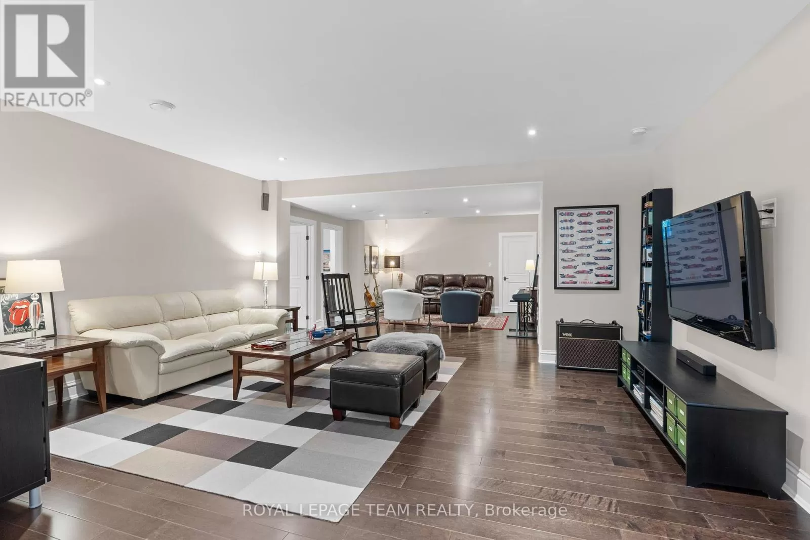 Cross Streets: Dozois Road. ** Directions: From Mitch Owens Road, turn onto Dozois Rd. Turn left onto Knights Dr. Set on a sprawling 2.5-acre estate lot in Manotick's Rideau Forest, this custom-built bungalow offers an exceptional lifestyle in a setting defined by mature trees and natural beauty. The property seamlessly blends timeless design with a thoughtful layout ideal for both relaxed family living and refined gatherings. Inside, the home features elegant architectural elements, including cathedral and tray ceilings, hardwood flooring, recessed lighting, and a striking fireplace that anchors the main living area. Expansive windows fill the interior with natural light and offer peaceful views of the surrounding landscape. The eat-in kitchen is beautifully appointed with rich wood cabinetry, granite countertops, stainless steel appliances, a centre island, a distinctive backsplash, and a walk-in pantry. Adjacent formal and informal living areas offer flexibility for everyday living and hosting. Three bedrooms are located on the main level, including a private primary suite with its own fireplace, walk-in closet, and a luxurious five-piece ensuite. The fully finished lower level offers impressive space and mirrors the quality of the main floor. It features a large recreation room with a refreshment station/wet bar, two additional bedrooms, a full bathroom, a home office, and flexible areas that can adapt to a variety of needs. Outdoors, the property unfolds into a private oasis that invites you to unwind. Professionally landscaped, it features multiple patios and an inground saltwater pool, all surrounded by a backdrop of mature woodland that ensures privacy. A truly exceptional residence, located just moments from amenities in the charming village of Manotick. (id:27476)