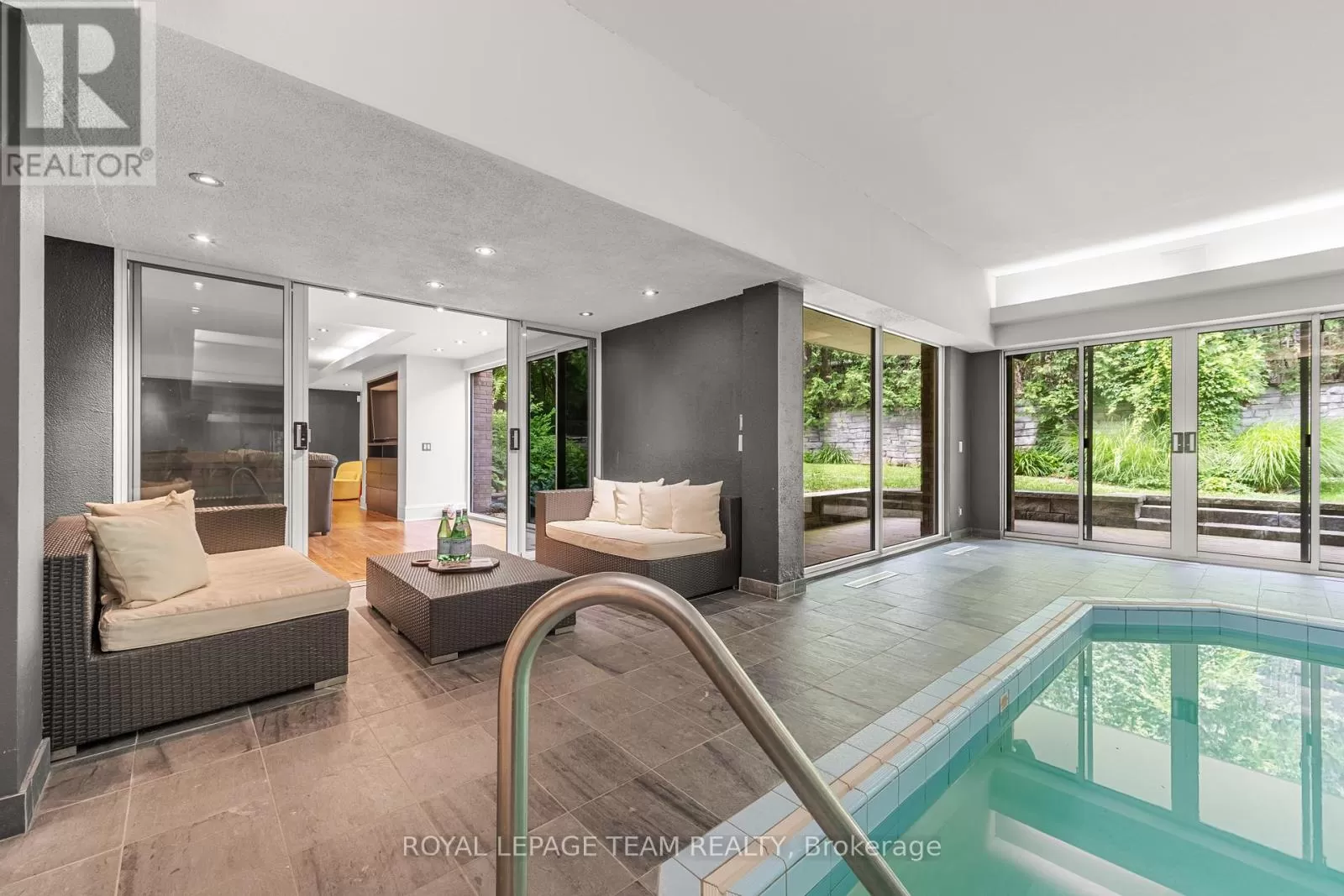 Cross Streets: Lisgar Road and Mariposa Avenue. ** Directions: Beechwood Avenue to Mackay Street to Dufferin Road to Lisgar Road to Willingdon Road. Discover the beauty of Rockcliffe: prestige, community spirit, proximity to family necessities and pride of place make this an exceptional address to call home. This well-placed mid-century stunner offers an exceptional design with open flow, plenty of natural light through floor to ceiling windows. Wrap around terrace, walk out lower level with full sized indoor salt water pool, home gym, and nanny-suite. Cathedral ceilings throughout and luxury finishes for a perfectly 21st century ready home with a nod to mid-century touches. Don't wait - make an appointment today! **EXTRAS** Miele Steam Oven, Miele Built/In Espresso Machine, Miele Warming Oven/drawer, 4 Sub Zero Refrigerator Drawers, Wine Fridge, Garburator (id:27476)