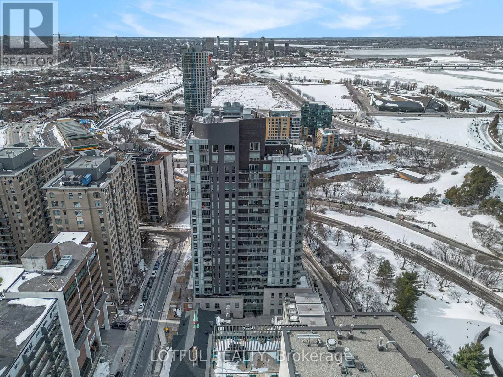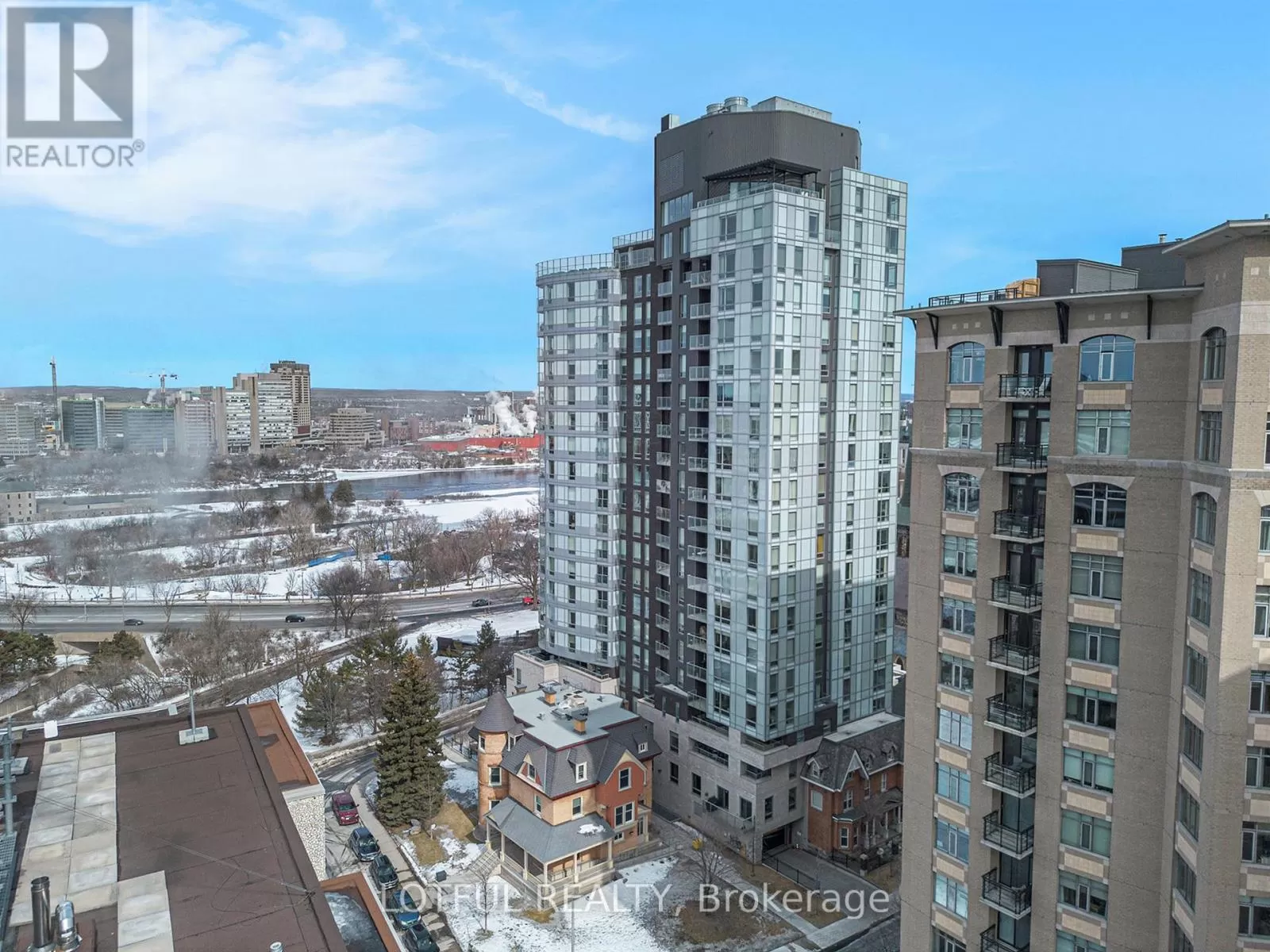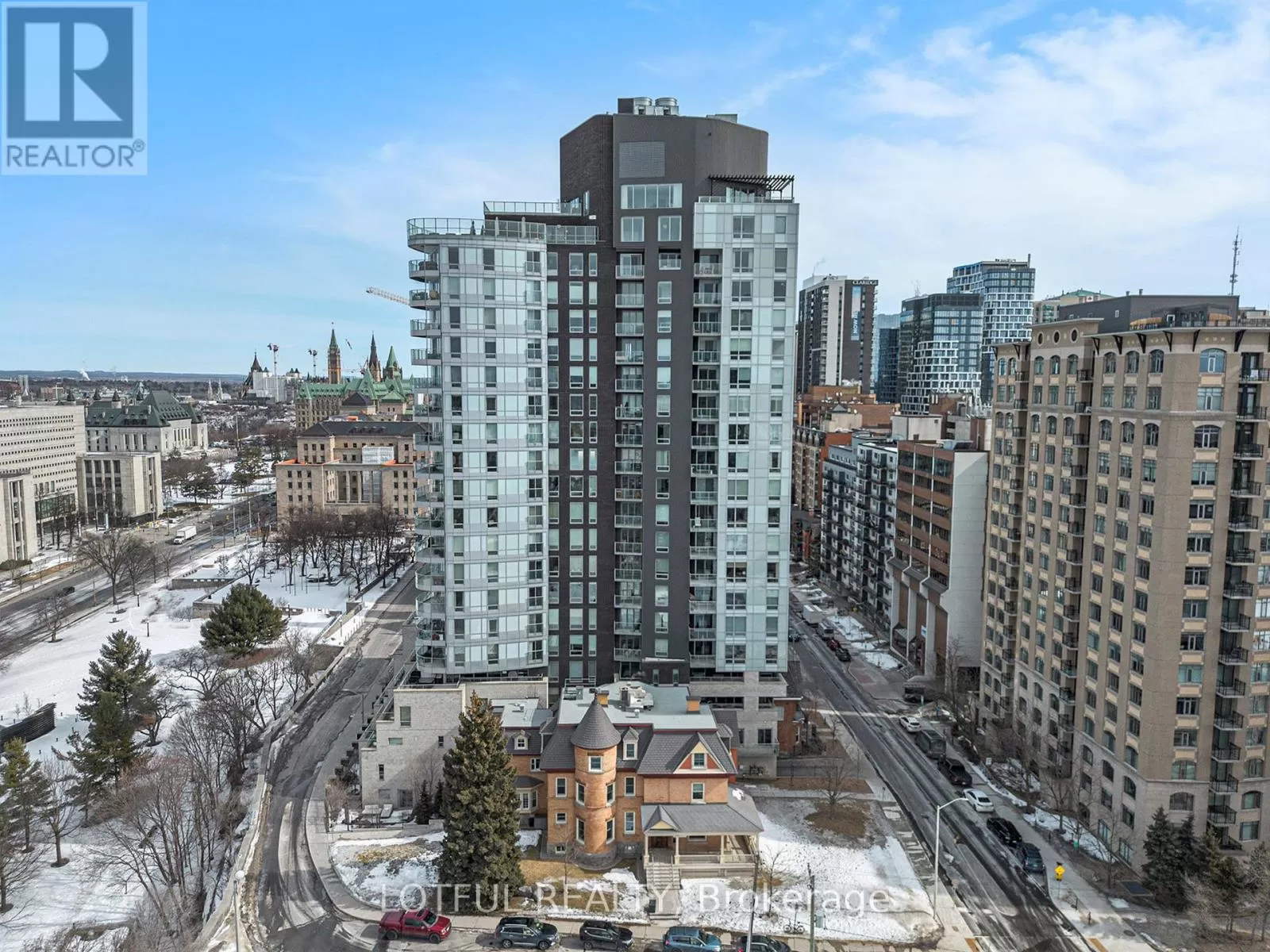 Cross Streets: Sparks and Bronson. ** Directions: 417 exit north on Bronson, turn right on Queen. Building at the corner of Queen, Bronson and Sparks Street. Just one block from the Queen Street LRT, this executive-style one-bedroom suite offers the perfect blend of luxury and convenience. Nestled in the prestigious Cathedral Hill, this residence boasts upscale finishes, including engineered hardwood, stunning ceramics, and chic, elegant cabinetry. The modern kitchen features Energy Star appliances, an under-counter microwave, a sleek hood fan, a stylish backsplash, and a versatile island ideal for cooking and entertaining. Floor-to-ceiling windows, adorned with California blinds, bathe the unit in natural light, while the spacious bedroom offers a generous closet. Enjoy breathtaking east-facing views, with reflected sunlight brightening the space throughout the day and a front-row seat to Canada Day fireworks! Unmatched amenities include a state-of-the-art fitness center, concierge service, guest suites, a party room, a dog wash station, and more. Secure underground parking and a storage locker complete this exceptional offering. Steps from Ottawa's finest riverfront, canal paths, and historical landmarks this is urban living at its finest. (id:27476)