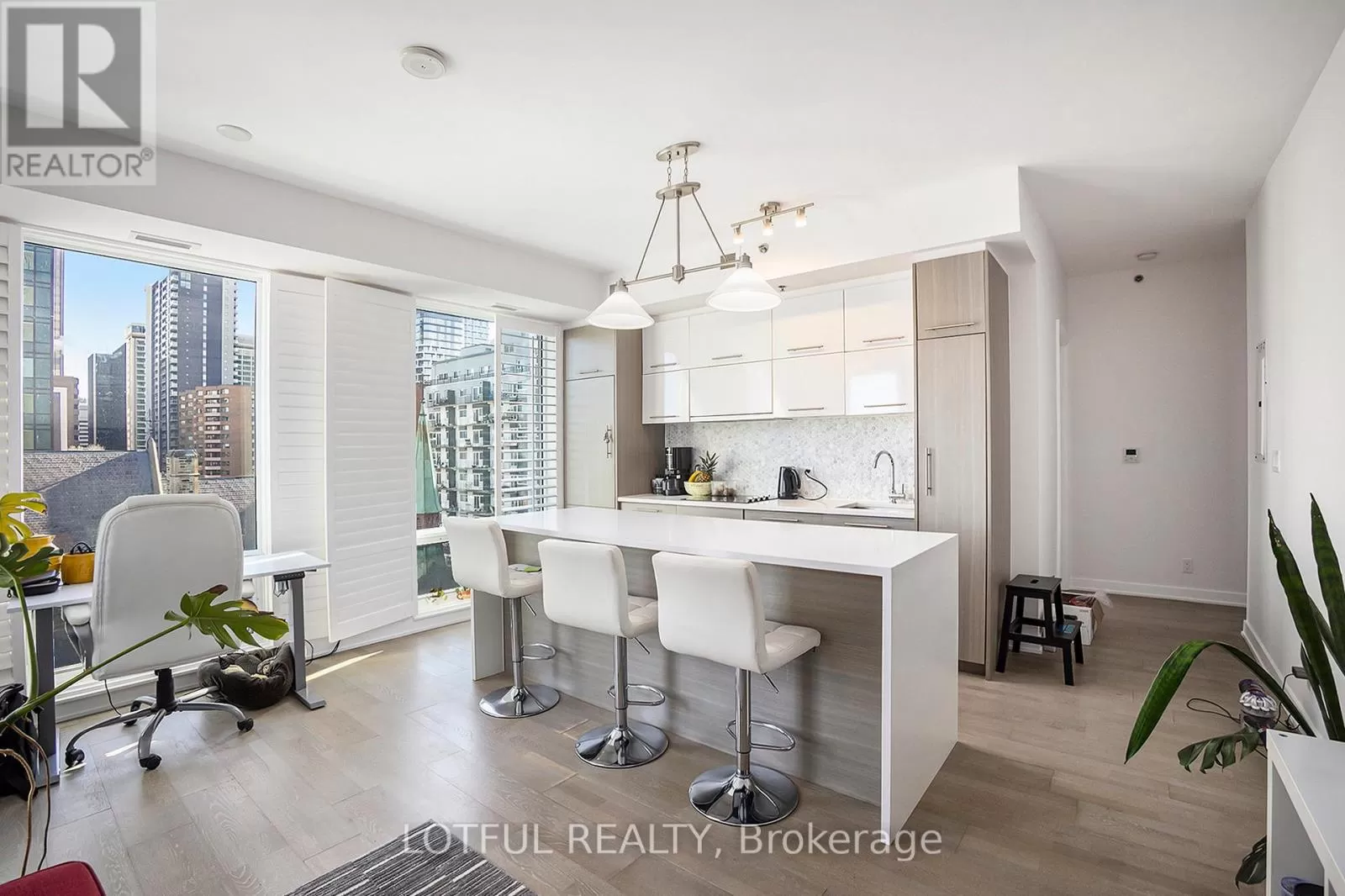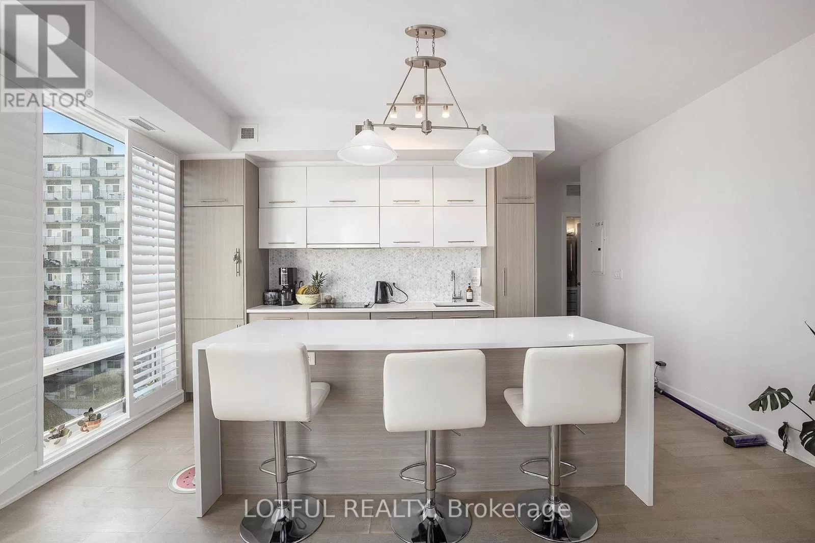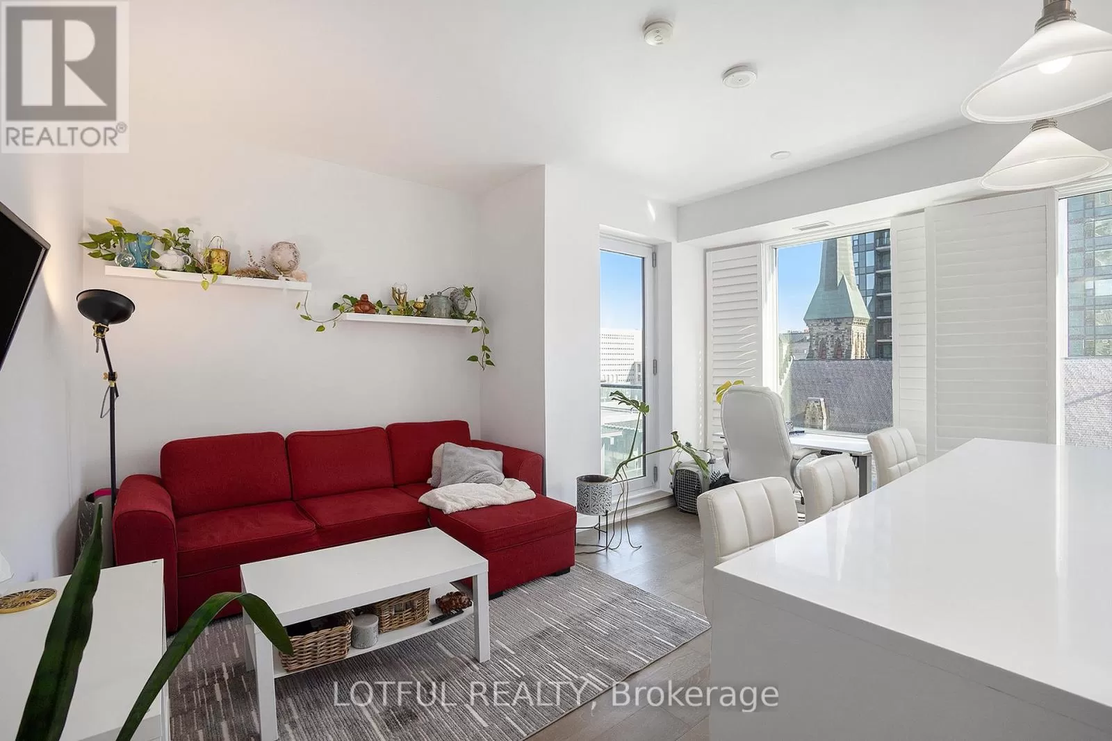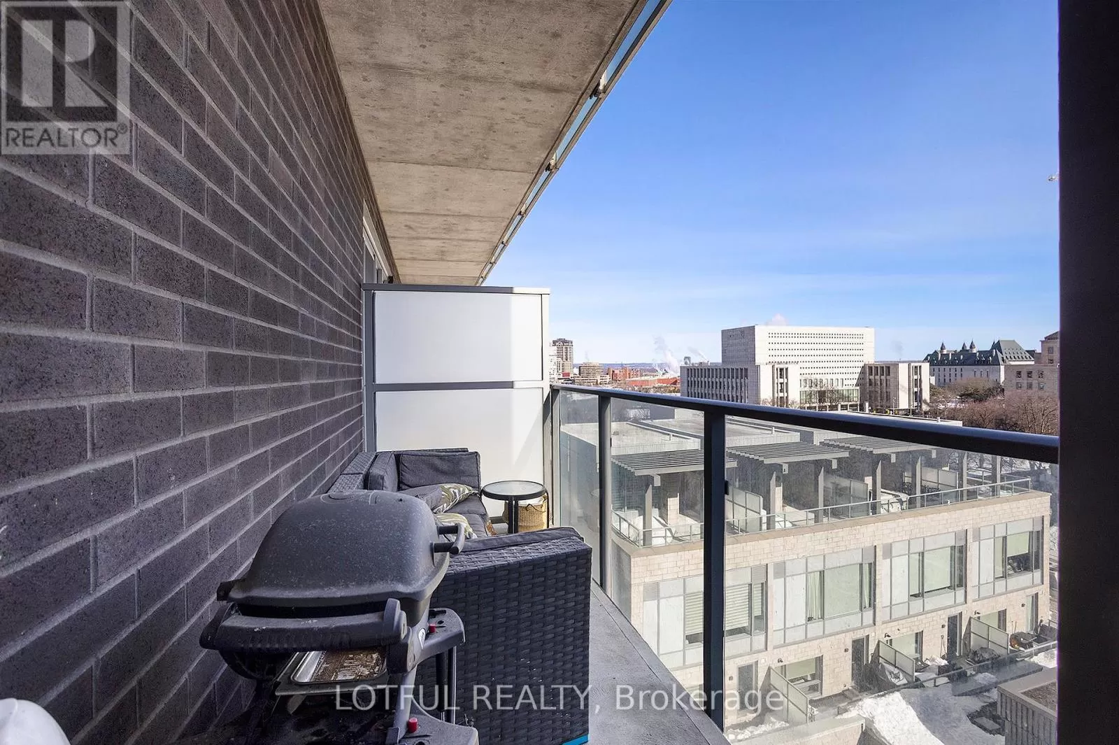 Cross Streets: Sparks and Bronson. ** Directions: 417 exit north on Bronson, turn right on Queen. Building at the corner of Queen, Bronson and Sparks Street. Just one block from the Queen Street LRT, this executive-style one-bedroom suite offers the perfect blend of luxury and convenience. Nestled in the prestigious Cathedral Hill, this residence boasts upscale finishes, including engineered hardwood, stunning ceramics, and chic, elegant cabinetry. The modern kitchen features Energy Star appliances, an under-counter microwave, a sleek hood fan, a stylish backsplash, and a versatile island ideal for cooking and entertaining. Floor-to-ceiling windows, adorned with California blinds, bathe the unit in natural light, while the spacious bedroom offers a generous closet. Enjoy breathtaking east-facing views, with reflected sunlight brightening the space throughout the day and a front-row seat to Canada Day fireworks! Unmatched amenities include a state-of-the-art fitness center, concierge service, guest suites, a party room, a dog wash station, and more. Secure underground parking and a storage locker complete this exceptional offering. Steps from Ottawa's finest riverfront, canal paths, and historical landmarks this is urban living at its finest. (id:27476)
