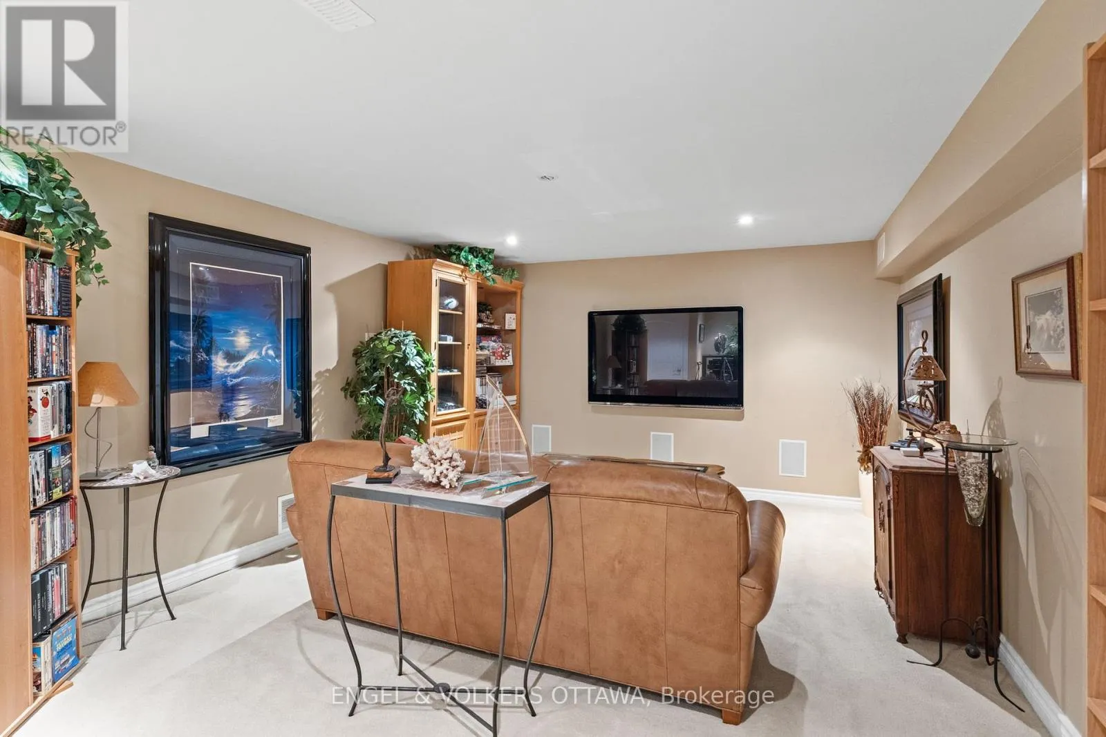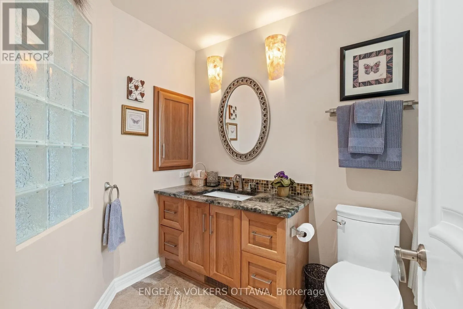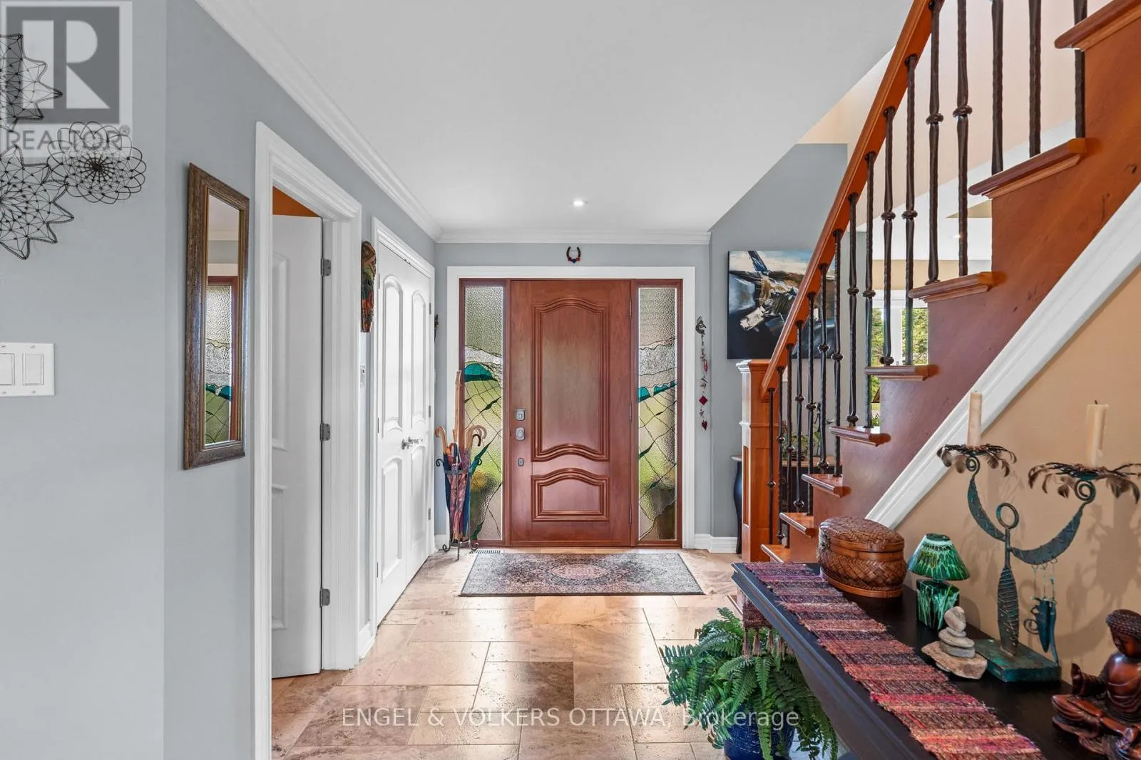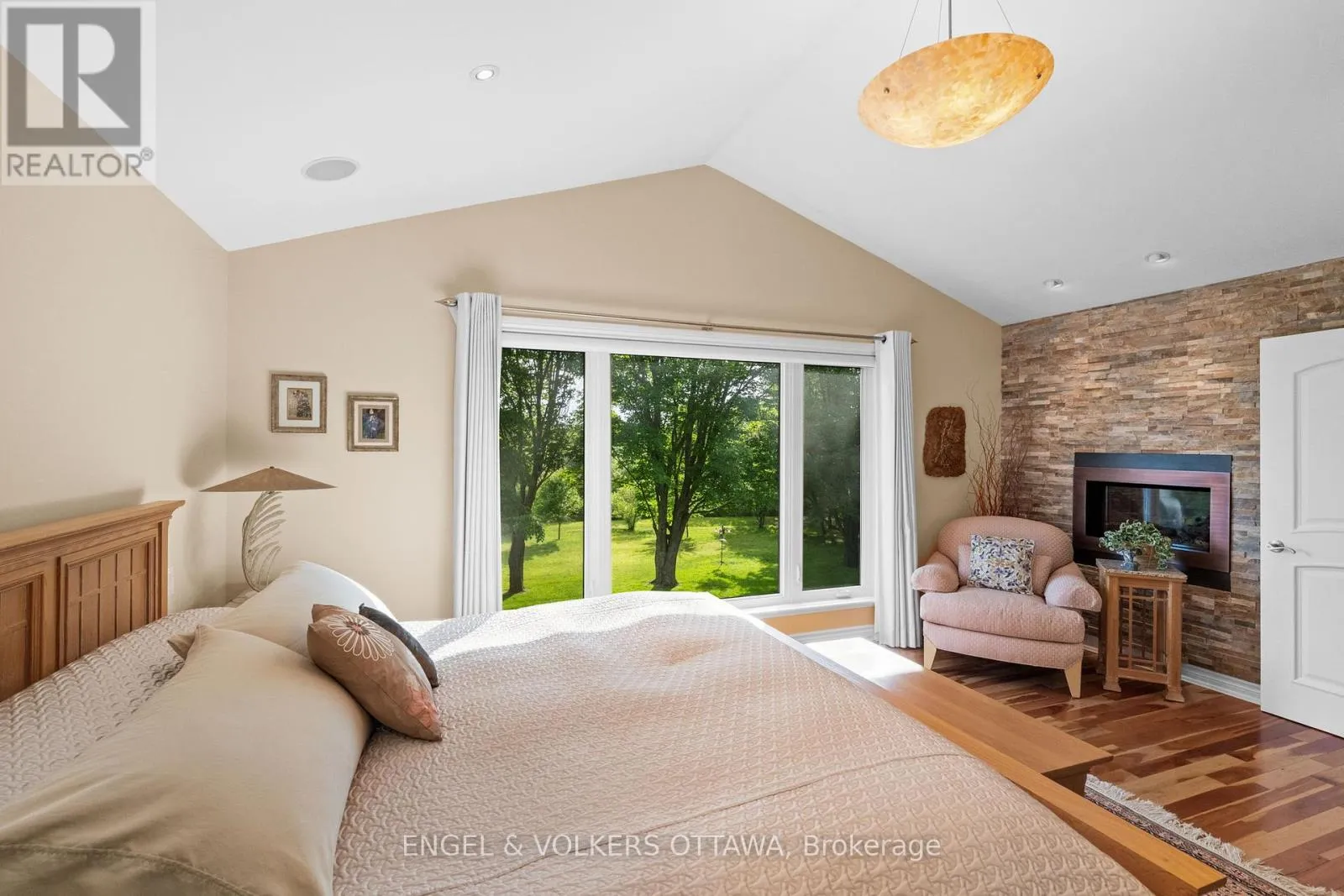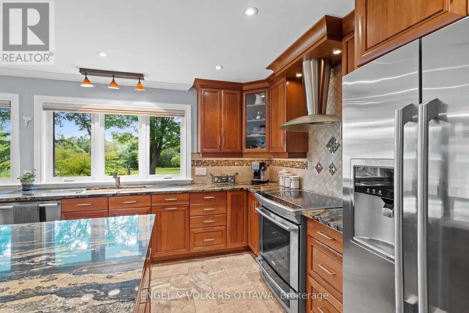 Bank Street south right on Kemp Drive and left on Doris Avenue. Situated on a private, tree-lined lot backing onto NCC greenspace, 24 Doris Avenue offers $100,000+ in custom stained glass and over $100,000 in landscaping. This custom home sits in the heart of Kemp Park, surrounded by an enclave of fellow expansive custom homes. The main level welcomes you with an elegant stone-clad portico and arched entry, opening to a grand foyer with custom stained glass and rich cherry wood floors. At the heart of the home, a spacious open-concept living and dining area features a floor-to-ceiling stone fireplace, coffered ceiling, and oversized windows framing the serene backyard. The chef's kitchen is equally impressive, boasting an oversized island with black-and-gold granite, extensive cherry wood cabinetry, and premium stainless steel appliances - perfect for hosting or casual family meals. Off the kitchen, a dedicated office provides an ideal workspace, while a full steam room with shower offers a spa-like experience. Two generous main floor bedrooms, a beautifully appointed full bath, and a laundry area just off the garage complete this level. Upstairs, the private primary suite with vaulted ceilings, a natural gas fireplace, expansive windows, and tranquil views is designed for relaxation. The ensuite features a deep soaker tub, walk-in glass shower, dual vanities with granite counters, and elegant finishes throughout. The fully finished lower level offers exceptional flexibility. A bright recreation room, dedicated home theatre, and gym accommodate a variety of lifestyle needs. Outdoors, the landscaped backyard is an entertainer's dream. A large interlock patio, outdoor fireplace, and natural gas BBQ connection make outdoor living seamless. The property spans over a third of an acre, offering privacy and a rare connection to surrounding greenspace. With close proximity to schools, parks, the Airport Parkway, and South Keys Shopping Centre, this exceptional home offers luxurious city living in a tranquil, sought-after setting. (id:27476)