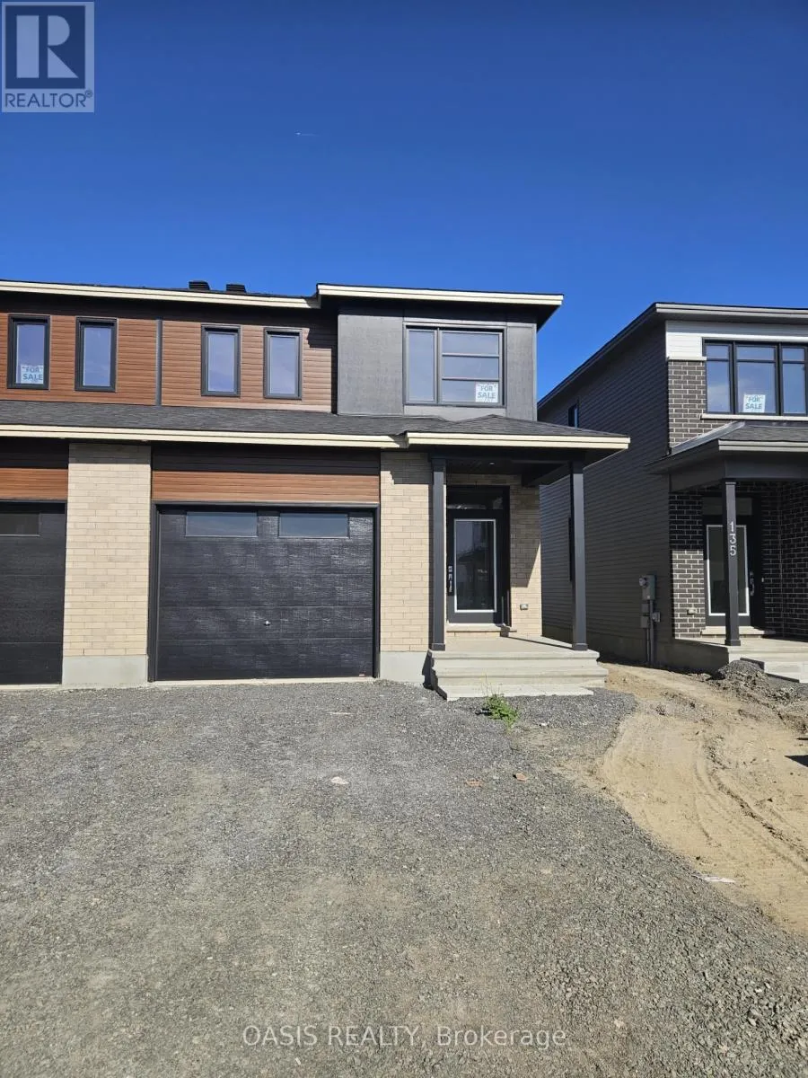 Cross Streets: Albion Rd and Kelly Farm Dr. ** Directions: Albion to Kelly Farm to Kerala Place. 30 day possession for this spacious and beautiful "Ivy" model semi-detached home from Tartan Homes in Findlay Creek! 3 bedrooms+loft+finished basement family room and 14'x20' oversize garage. Great package of standard features includes: stone countertops in kitchen and bathrooms, extra potlights and hardwood, Energy Star certified, 9' ceilings on main, smooth ceilings throughout, 3 piece rough-in in basement, waterline to fridge, gas fitting to stove, central air conditioning, ensuite with 5' ceramic shower and glass door. First time home buyer GST incentive not included in price shown and could lower price to a net of as low as $739,297. (to be confirmed) Interior photos are of a model home so finishes will vary and the actual property will not include appliances, furniture, window coverings or staging items. Lot dimensions to be confirmed. New construction, taxes not yet assessed. total sq ft per builder plans is 2,358 sq ft which includes 377 sq ft finished in basement family room. (id:27476)