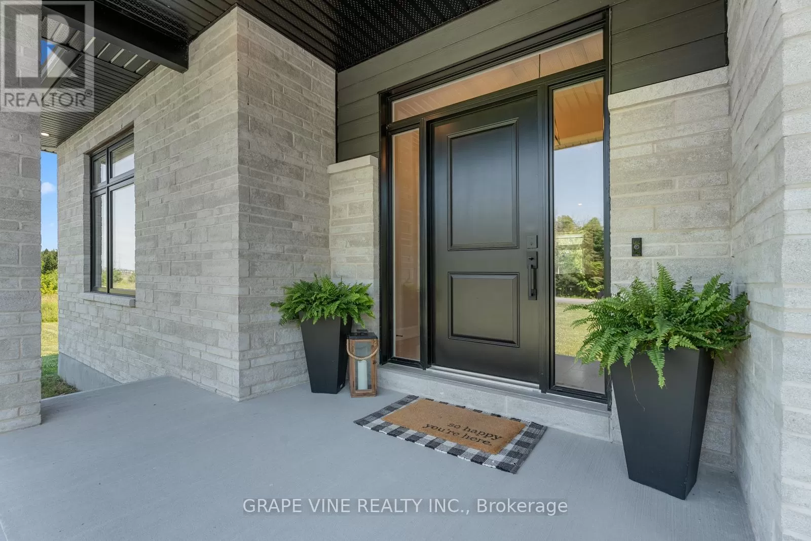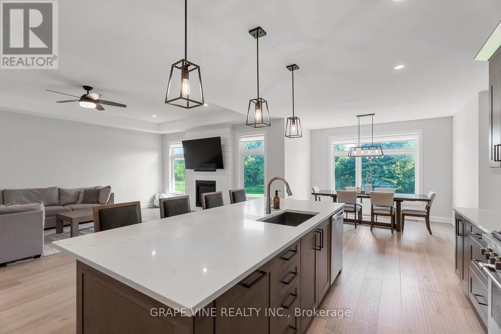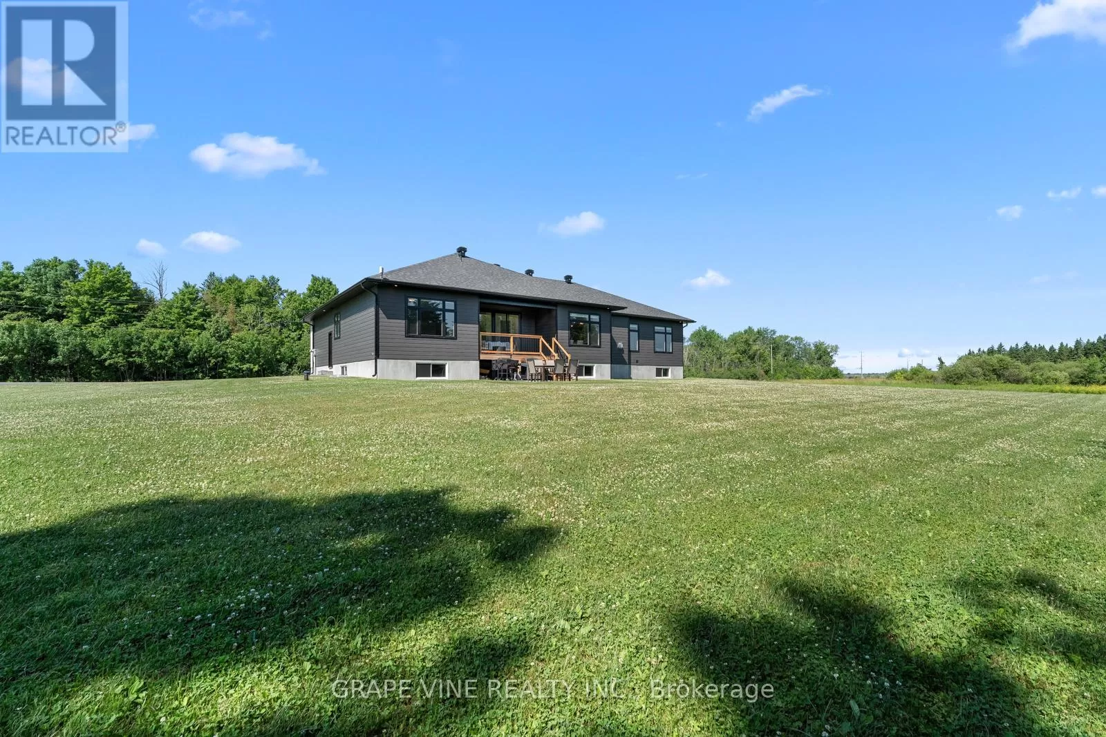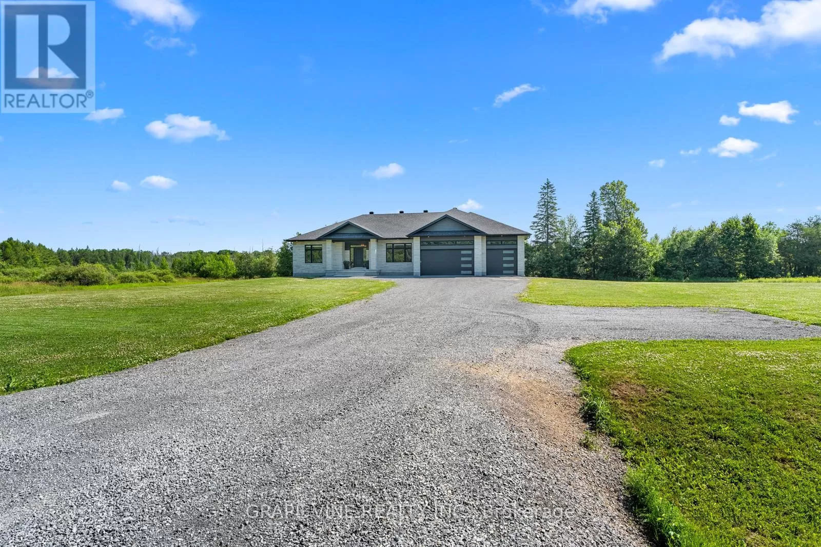 Cross Streets: HWY 7. ** Directions: Located less than 1 kilometer from the Ashton Station highway 7 off ramp. Welcome to this beautifully finished, move-in-ready home located in the charming community of Ashton. This 2,500 sq. ft. bungalow features 3 bedrooms, 2.5 bathrooms, and a dedicated office, perfect for remote work or study. The open-concept layout includes a modern kitchen that flows seamlessly into the bright and inviting living area, ideal for both relaxing and entertaining. The kitchen showcases Laurysen custom cabinetry, quartz countertops, a large island, and high-end appliances. The spacious master bedroom features a coffered ceiling, an sizeable walk-in closet and a stunning ensuite complete with a large custom standalone shower and a relaxing free-standing tub, perfect for unwinding after a long day. With top-quality finishes throughout and thoughtful design, this home offers comfort, style, and functionality in a peaceful, family-friendly setting. Inside, the home showcases 3/4 inch engineered hardwood flooring throughout, while a beautifully crafted custom hardwood staircase adds to its refined character. Comfort is maintained year-round with an energy-efficient heat pump providing both heating and cooling. Situated on a 2-acre lot, the property includes a fully finished and insulated 3 car garage equipped with an EV plug-in, offering ample space for parking, storage, or a workshop. Outdoor living is just as inviting, with a covered deck and interlock patio, ideal for summer barbecues, morning coffee, or peaceful evenings under the stars. The remainder of the expansive lot is fully covered with lush grass, providing plenty of space for outdoor activities or future landscaping. The front of the home is beautifully finished with full stonework, offering timeless curb appeal, while the remaining exterior is clad in insulated composite siding which provides long-lasting durability and enhanced energy efficiency without the need for upkeep. The basement features rough-in plumbing, framing and electrical for future use. (id:27476)