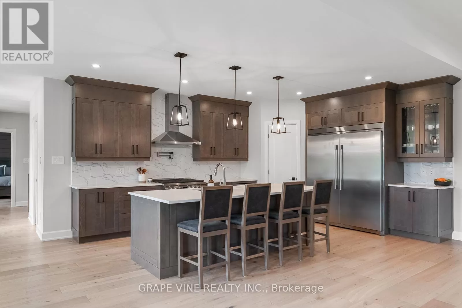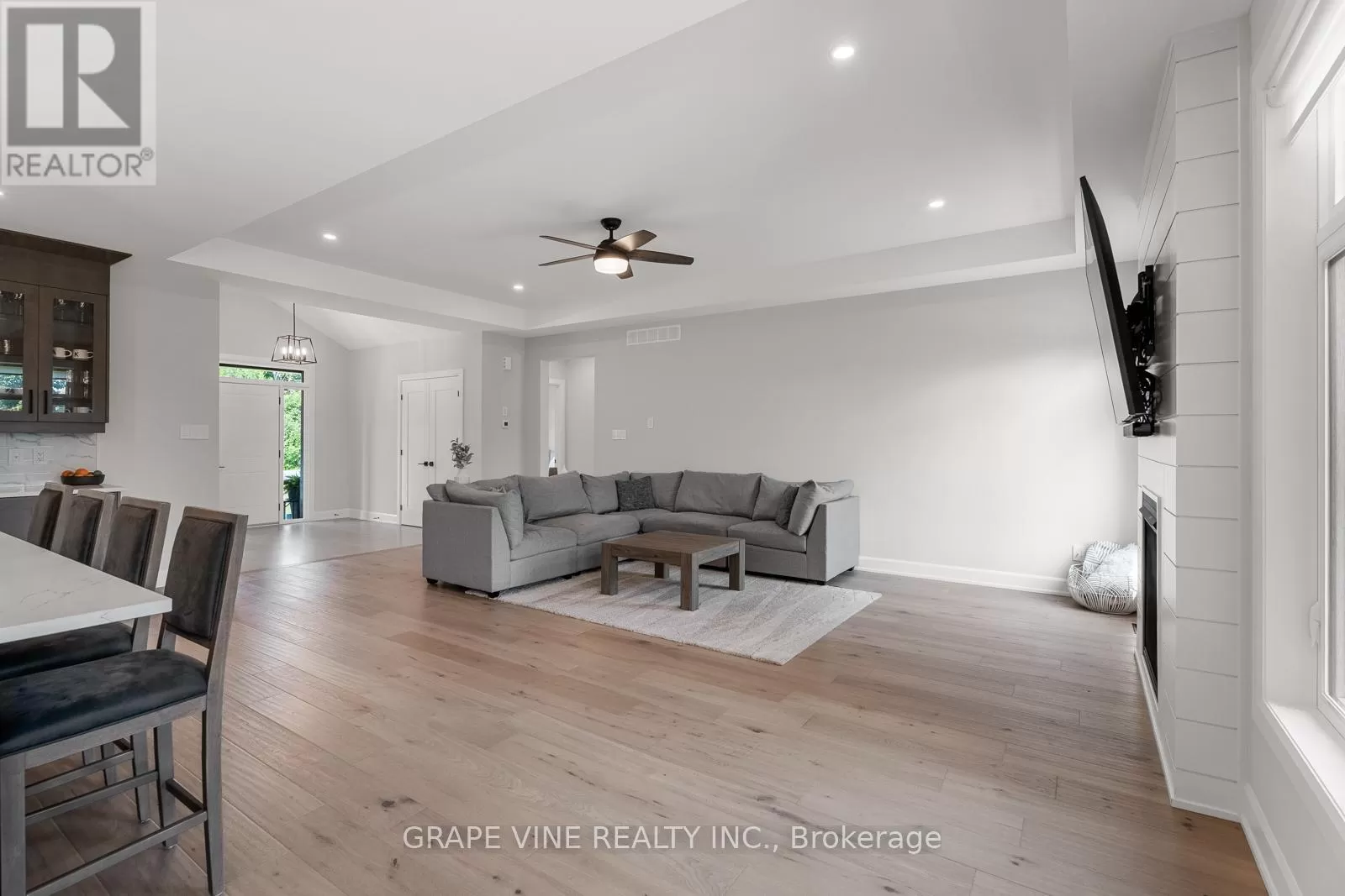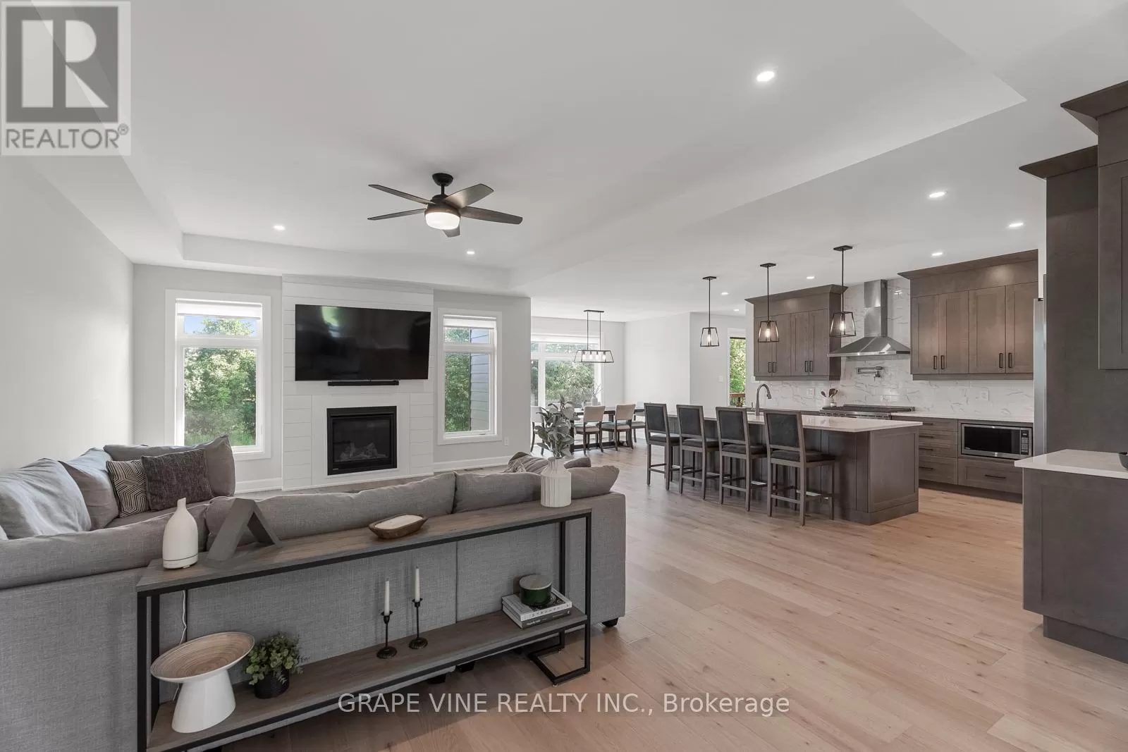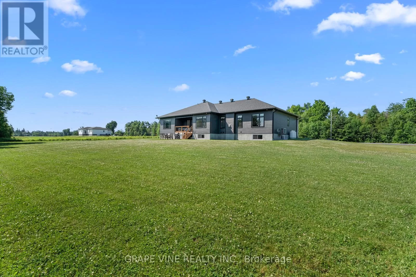 Cross Streets: HWY 7. ** Directions: Located less than 1 kilometer from the Ashton Station highway 7 off ramp. Welcome to this beautifully finished, move-in-ready home located in the charming community of Ashton. This 2,500 sq. ft. bungalow features 3 bedrooms, 2.5 bathrooms, and a dedicated office, perfect for remote work or study. The open-concept layout includes a modern kitchen that flows seamlessly into the bright and inviting living area, ideal for both relaxing and entertaining. The kitchen showcases Laurysen custom cabinetry, quartz countertops, a large island, and high-end appliances. The spacious master bedroom features a coffered ceiling, an sizeable walk-in closet and a stunning ensuite complete with a large custom standalone shower and a relaxing free-standing tub, perfect for unwinding after a long day. With top-quality finishes throughout and thoughtful design, this home offers comfort, style, and functionality in a peaceful, family-friendly setting. Inside, the home showcases 3/4 inch engineered hardwood flooring throughout, while a beautifully crafted custom hardwood staircase adds to its refined character. Comfort is maintained year-round with an energy-efficient heat pump providing both heating and cooling. Situated on a 2-acre lot, the property includes a fully finished and insulated 3 car garage equipped with an EV plug-in, offering ample space for parking, storage, or a workshop. Outdoor living is just as inviting, with a covered deck and interlock patio, ideal for summer barbecues, morning coffee, or peaceful evenings under the stars. The remainder of the expansive lot is fully covered with lush grass, providing plenty of space for outdoor activities or future landscaping. The front of the home is beautifully finished with full stonework, offering timeless curb appeal, while the remaining exterior is clad in insulated composite siding which provides long-lasting durability and enhanced energy efficiency without the need for upkeep. The basement features rough-in plumbing, framing and electrical for future use. (id:27476)