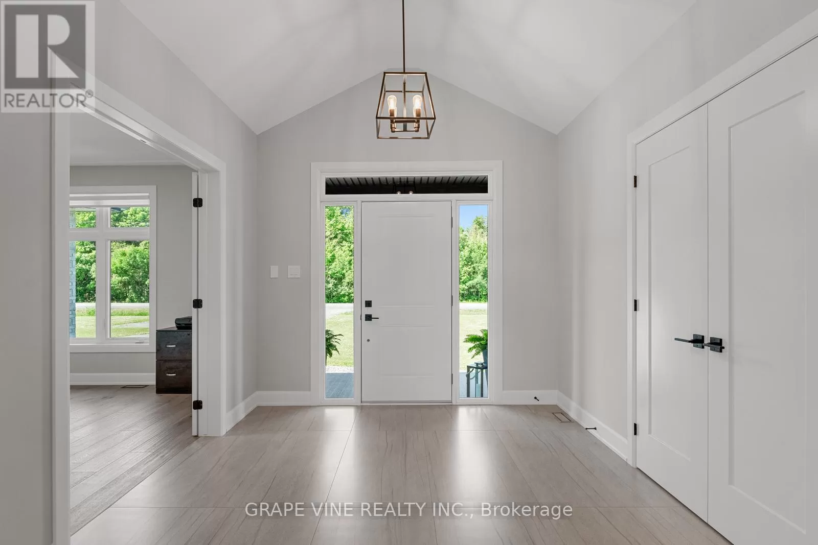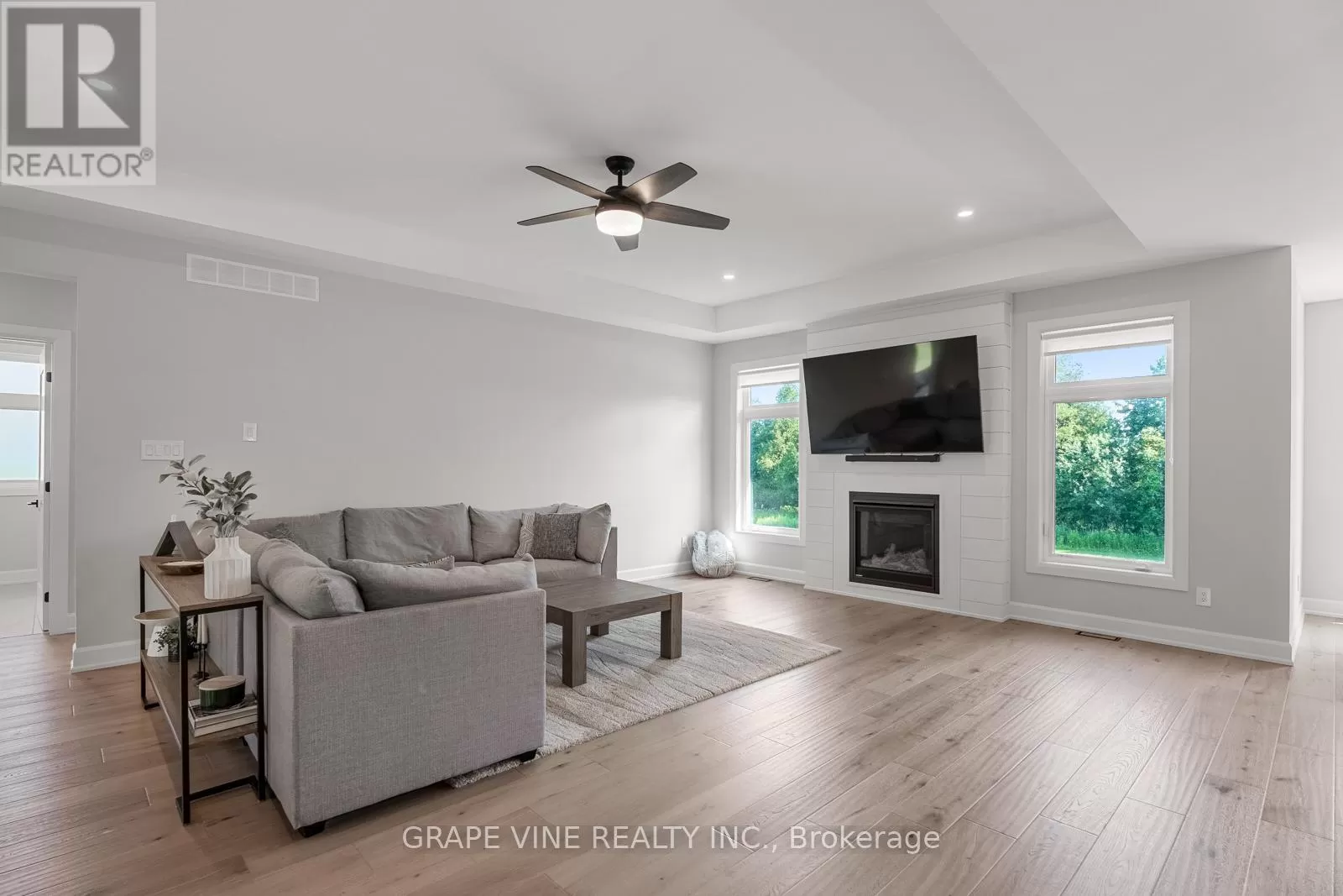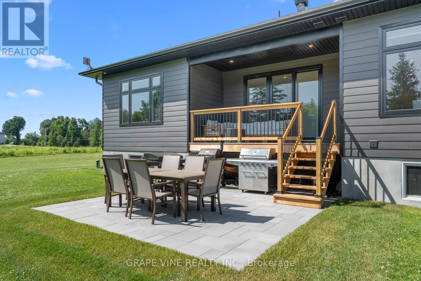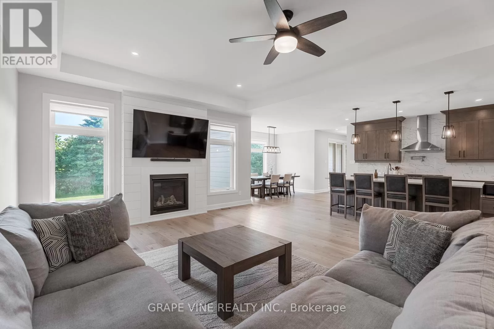 Cross Streets: HWY 7. ** Directions: Located less than 1 kilometer from the Ashton Station highway 7 off ramp. Welcome to this beautifully finished, move-in-ready home located in the charming community of Ashton. This 2,500 sq. ft. bungalow features 3 bedrooms, 2.5 bathrooms, and a dedicated office, perfect for remote work or study. The open-concept layout includes a modern kitchen that flows seamlessly into the bright and inviting living area, ideal for both relaxing and entertaining. The kitchen showcases Laurysen custom cabinetry, quartz countertops, a large island, and high-end appliances. The spacious master bedroom features a coffered ceiling, an sizeable walk-in closet and a stunning ensuite complete with a large custom standalone shower and a relaxing free-standing tub, perfect for unwinding after a long day. With top-quality finishes throughout and thoughtful design, this home offers comfort, style, and functionality in a peaceful, family-friendly setting. Inside, the home showcases 3/4 inch engineered hardwood flooring throughout, while a beautifully crafted custom hardwood staircase adds to its refined character. Comfort is maintained year-round with an energy-efficient heat pump providing both heating and cooling. Situated on a 2-acre lot, the property includes a fully finished and insulated 3 car garage equipped with an EV plug-in, offering ample space for parking, storage, or a workshop. Outdoor living is just as inviting, with a covered deck and interlock patio, ideal for summer barbecues, morning coffee, or peaceful evenings under the stars. The remainder of the expansive lot is fully covered with lush grass, providing plenty of space for outdoor activities or future landscaping. The front of the home is beautifully finished with full stonework, offering timeless curb appeal, while the remaining exterior is clad in insulated composite siding which provides long-lasting durability and enhanced energy efficiency without the need for upkeep. The basement features rough-in plumbing, framing and electrical for future use. (id:27476)