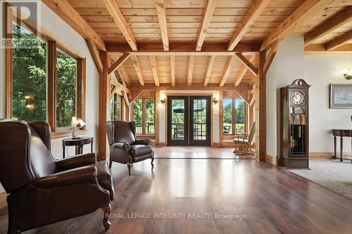 Cross Streets: Glenashton Rd. ** Directions: HWY 7 toward Carleton Place, Exit toward Ashton Station Rd, Turn left, stay on Ashton Station Rd and the house will be located on the left side of the road. Experience timeless elegance and modern comfort in this extraordinary 5-bedroom, 4-bathroom estate set on 26.34 acres of pristine countryside. Originally constructed in the 1870s and masterfully expanded in 1996, this home blends historic charm with upscale finishes, including hickory hardwood and wide-plank engineered flooring, granite countertops, and stainless steel appliances. Recent upgradestwo propane furnaces (2024), a new hot water tank (2025), HRV, and a full water systemensure peace of mind and efficiency. Entertain in style with an in-ground saltwater pool, hot tub, and a rare indoor synthetic ice rink. The showstopping two-storey garage features steel beam construction, soaring ceilings, two garage doors, cement flooring, two electric heaters, additional drive-through toy storage, and a sunlit loft with oversized windowsideal for a studio, gym, yoga studio or guest suite. Plus an additional 72 ft Drive Shed. With five separate electrical panels, a 220-ft drilled well, and a permitted septic system, this property is as functional as it is beautiful. Currently taxed as working farmland, this luxurious rural retreat offers unmatched character, privacy, and potential. (id:27476)