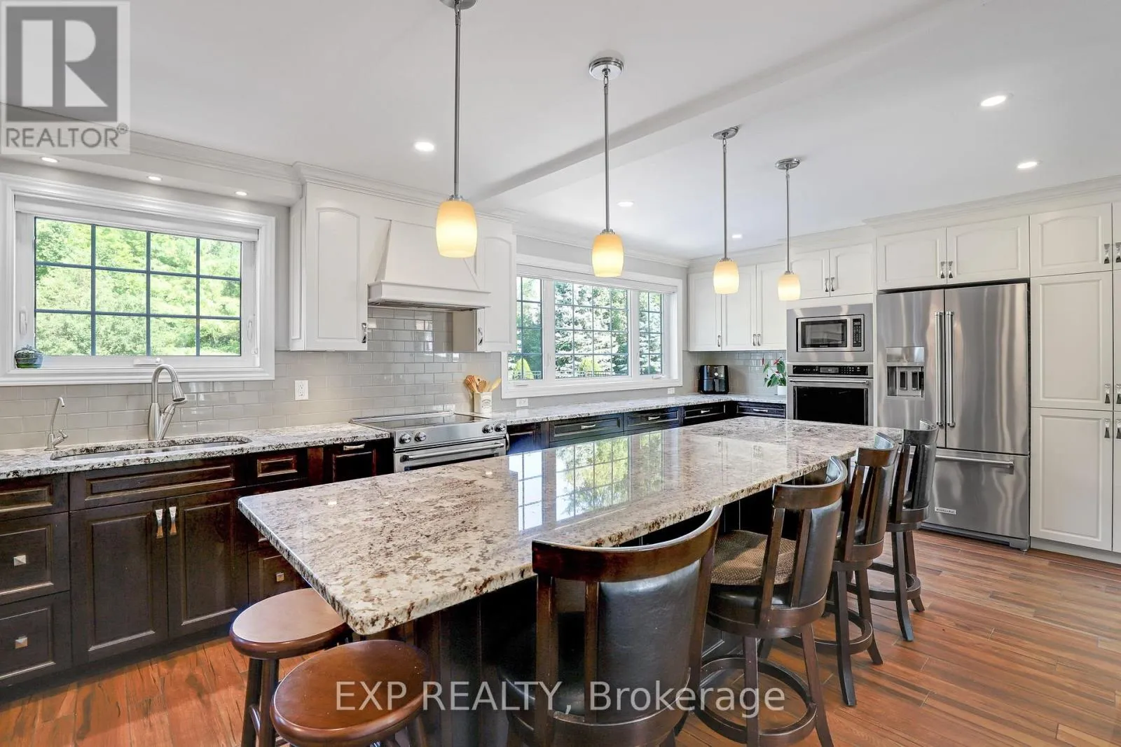 Cross Streets: Prince of Wales/ Third Line. ** Directions: Prince of Wales to Third Line. Tucked away on an expansive 3.74-acre lot surrounded by Prince of Wales Dr., Phelan Rd., and with private access off Third Line Rd South, this custom all-brick estate is a rare opportunity to own a versatile, move-in ready compound just minutes from city conveniences.Whether you're a multigenerational family, business owner, or hobbyist, this home offers space, privacy, and serious potential. Main Residence Features: 4 spacious bedrooms. 2.5 bathrooms, including 4-piece ensuite + walk-in closet in the primary suite. Spacious formal dining room, perfect for entertaining. Converted attached garage now serves as a large media-room ideal for a home theatre, in-law suite, or flexible living space. Beautiful 3-season sunroom overlooking the pool and gardens. Finished basement with rec-room, storage, and workshop area. Hydronic heating system (hot water via propane) provides efficient, comfortable warmth throughout. In-floor heating in the kitchen, laundry area, and powder room. 2 split-system A/C units, one for the main floor, and a new heat pump + AC unit (2025) in the primary bedroom.Additional Highlights: Heated workshop with separate road access, ideal for home-based businesses or tradespeople. Oversized 3-car detached garage (roof 2020, 50-year shingles, 10-year labour warranty). In-ground pool with recent upgrades (2023), fully fenced for safety and privacy. Roof replaced in 2012 (50-year warranty on shingles). Propane heating upgrade 2018. New fencing installed in 2021. Massive 24 kW standby generator provides whole-home backup power for uninterrupted comfort and security.Outbuildings & Extras: Garden cottage. Equipment shed (includes pool heater and filter area). 1,200 sq. ft. workshop/storage area. (id:27476)