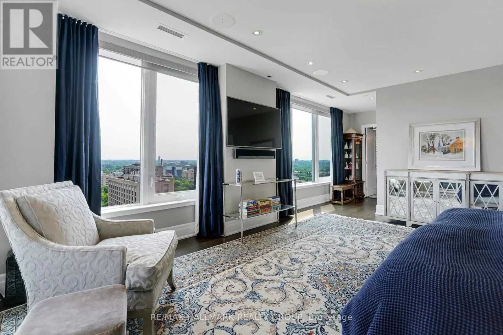 Cross Streets: Lisgar Street between Elgin and Cartier, Across from City Hall. ** Directions: Across from City Hall on Lisgar between Elgin and Cartier. Welcome to Ottawa's finest condominium address. This magnificent, almost 4300 sqft suite occupies the entire 20th floor, featuring 2 spacious private outdoor balconies, 3 parking (equipped with EV chargers), 4 bedrooms - each with a private ensuite - a theatre room and office. Take in some of the most impressive views of the city while enjoying the highest quality finishings in your luxurious apartment. The Merit blends modern living with the sophistication of the Golden Age. Enjoy Panoramic views of the city in 360 degrees from the top of Ottawa's most sought after building. This very well could be the nicest condo unit in the city! (id:27476)