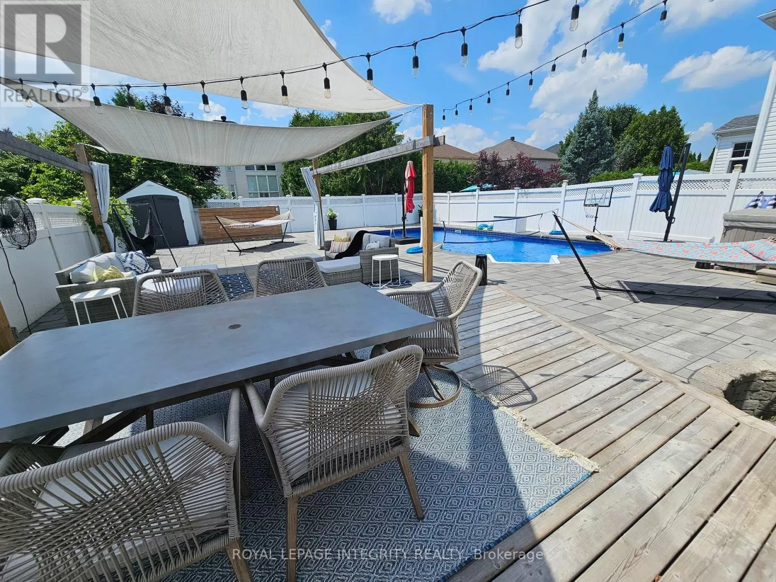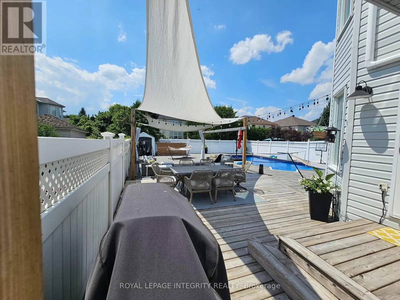 Cross Streets: Golflinks & Bracewood. ** Directions: Golflinks to Bracewood Way. Welcome to your dream home in the heart of Stonebridge. This stunning property is an entertainers paradise, featuring a luxurious saltwater heated pool, relaxing hot tub, and an expansive interlocked patio with a built-in deck, covered gazebos, and a tranquil water fall feature. The fully fenced backyard is a private oasis, perfect for family time, summer barbecues, or gathering with friends. Inside, the home is filled with natural light, thanks to tinted windows that reduce heat while maintaining brightness. The vaulted ceilings add a grand touch, and the separate air conditioning unit for the upper level ensures cool comfort throughout. The bright and open kitchen is ideal for cooking and entertaining, complete with stainless steel appliances, a gas stove, and modern finishes. The main floor offers a welcoming front foyer with a custom built-in dressing unit perfect for shoes, jackets, and everyday essentials. The home continues to impress with a beautiful laundry room, a convenient office nook, and countless thoughtful upgrades throughout. The fully finished basement adds incredible value with an additional bedroom, partial bathroom, a dedicated office space, and a stylish bar area perfect for guests, teens, or working from home and plenty of storage space. Located in a family-friendly community with parks, schools, and amenities nearby, this home truly has it all. Whether you're relaxing poolside or enjoying the comfort of its interior features, this Stonebridge beauty offers the lifestyle you've been waiting for. (id:27476)