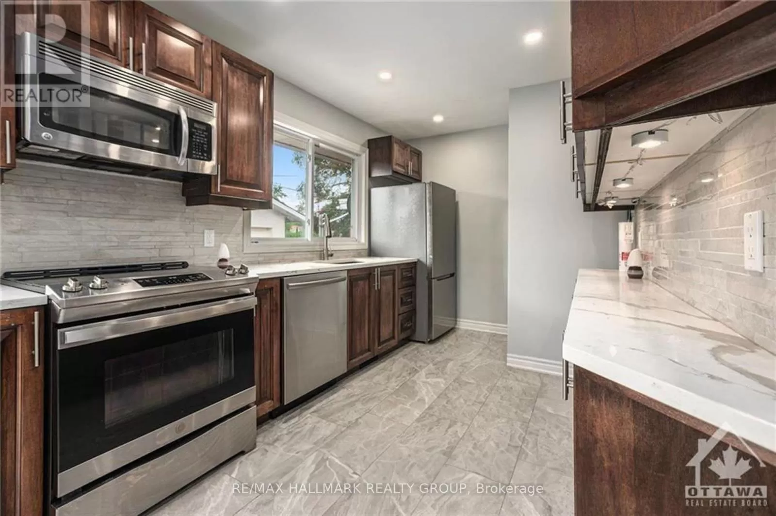 Fisher Avenue - in between Normandy Crescent and Falaise Road Welcome to this beautifully renovated bungalow on a spacious 60ft x 92ft lot offering the perfect blend of comfort, style, and versatility. Thoughtfully updated from top to bottom, this move-in ready home is ideal for families, professionals, or those looking to offset their mortgage with rental income. The main level features an open-concept layout with a stunning custom kitchen, stainless steel appliances, hardwood floors, modern LED lighting, and a sun-filled living room with a cozy wood-burning fireplace. Three well-sized bedrooms, a stylish full bath, and convenient laundry make everyday living effortless. Patio doors lead to a newly built rear deck (2022) and a private, fenced backyard perfect for entertaining or quiet outdoor enjoyment. The fully finished lower level, with its own private entrance, adds incredible flexibility with two additional bedrooms, a full kitchen (2022), a full bathroom, laundry, and a spacious living/dining area ideal for extended family, guests, or rental potential. With recent updates including a new roof (2017), furnace (2021), AC, updated electrical, newer windows, and flooring, this home offers both peace of mind and long-term value. Complete with a garage, long driveway, and parking for four vehicles, and located minutes from Carleton University, Mooney's Bay Beach, public transit, parks, shopping, downtown Ottawa, and the Civic Hospital this is a perfect opportunity to enjoy elevated living in a vibrant, well-connected neighborhood. *Note: not a legal DUPLEX* (id:27476)