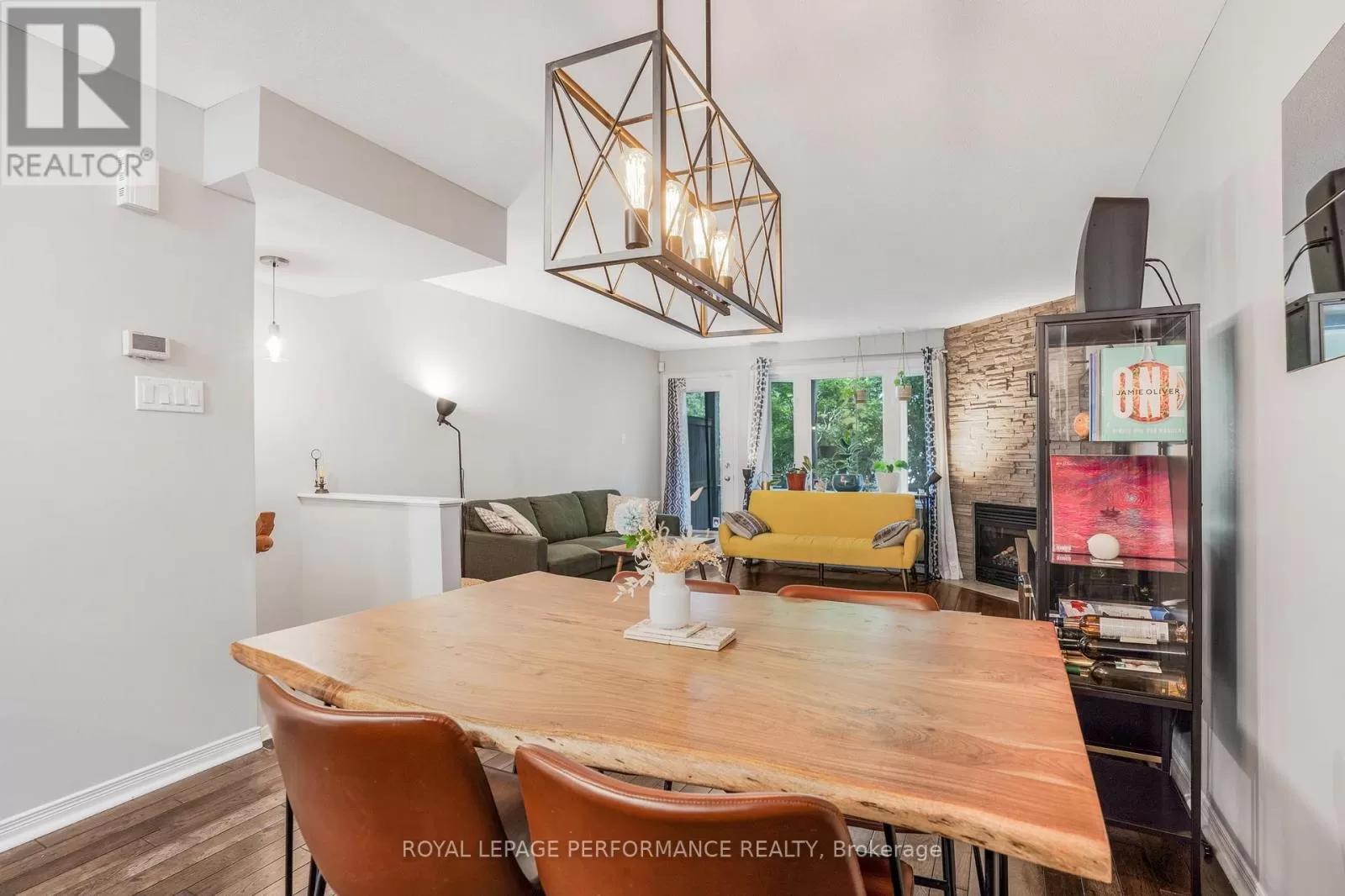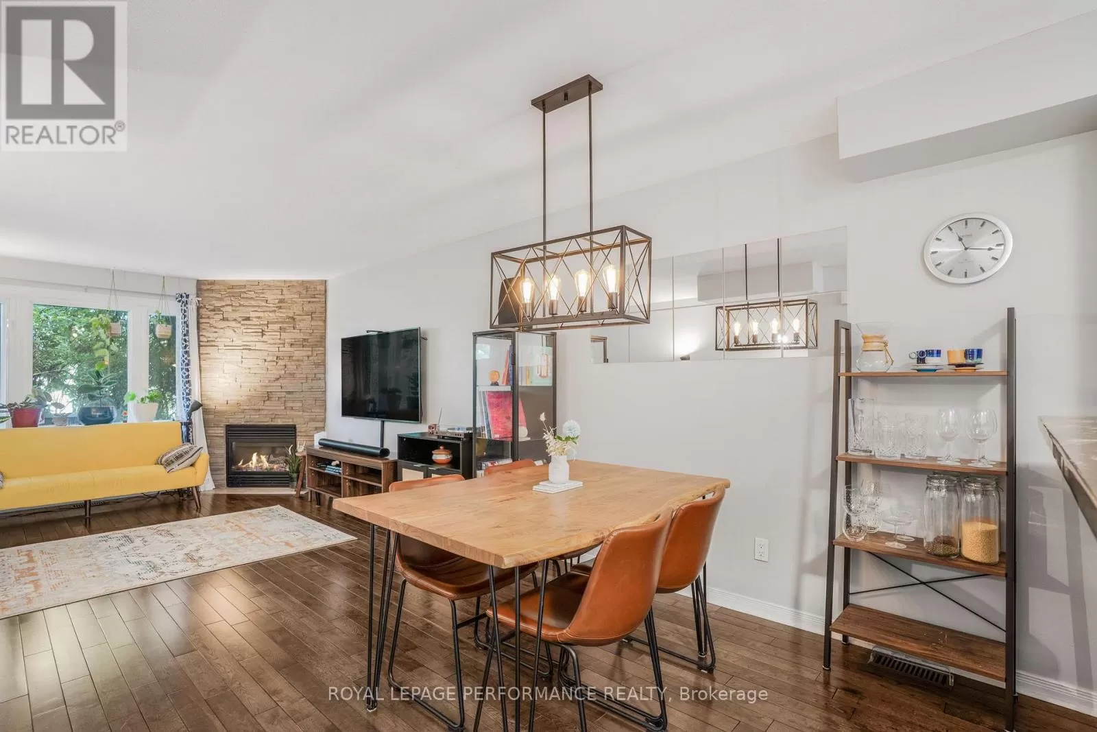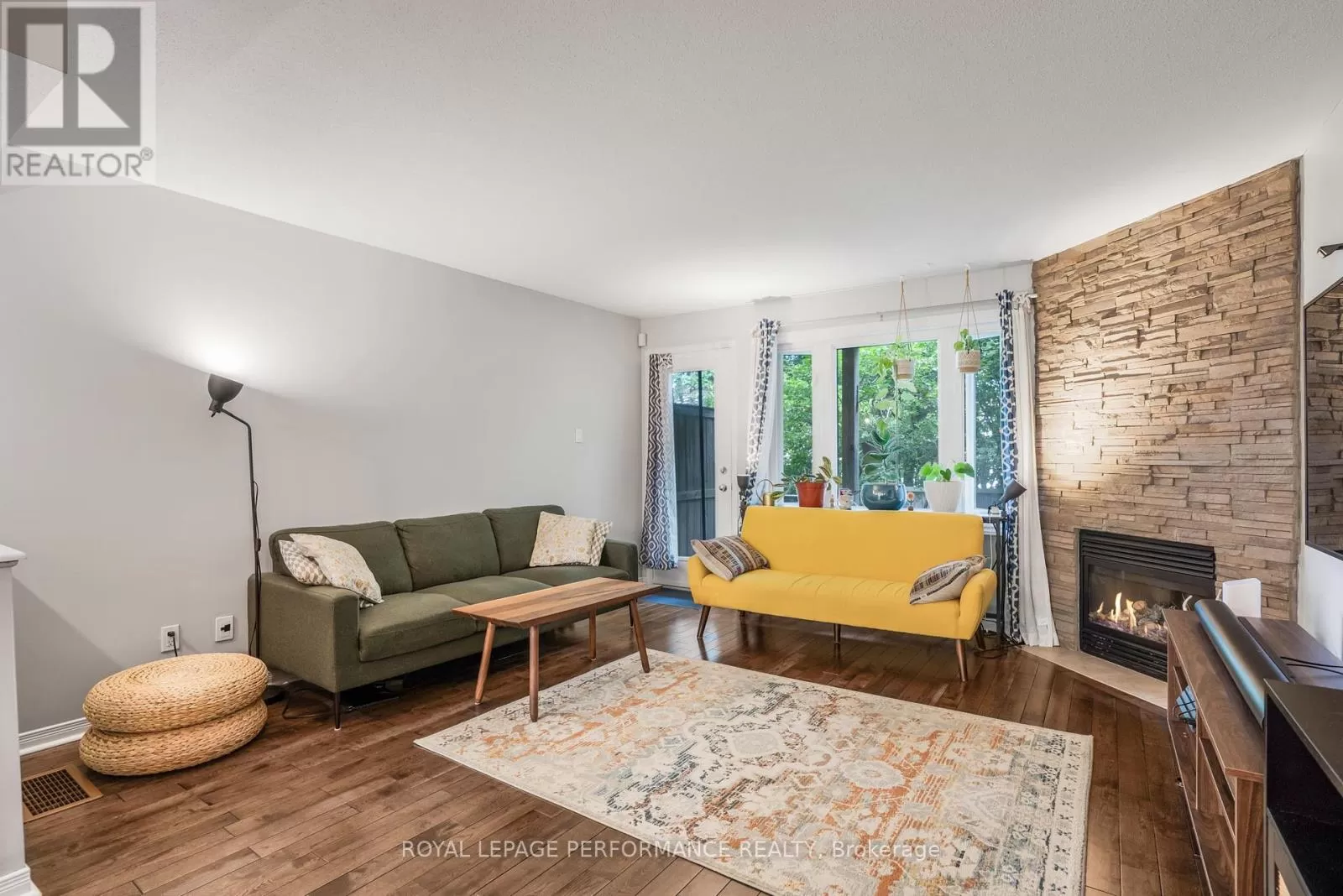 Cross Streets: Ogilvie and Cummings. ** Directions: Ogilvie West to Cummings turn right. Nestled in a quiet, accessible neighbourhood just steps from shops, parks, playgrounds, public transit (including the nearby Ogilvie O-Train), and schools, this beautifully updated 2-bedroom, 2-bath condo offers incredible value and convenience.The open-concept main floor features a bright and modern kitchen with quartz countertops, granite breakfast bar, glass tile backsplash, and stylish light fixtures. Rich hardwood flooring flows through the dining and living areas, where a gas fireplace with brick accent wall adds warmth and character. French doors lead to your own private garden oasis perfect for relaxing, entertaining, or BBQing in the warmer months.Downstairs, the lower level boasts two spacious bedrooms with soaring 9-foot ceilings, a full bathroom, convenient laundry room with washer and dryer, additional storage, and a linen closet.Additional features include central air conditioning and TWO dedicated parking spaces, each equipped with its own electrical outlet ideal for winter plug-ins or EV adaptors.This is a rare opportunity to own a move-in ready home in a well-connected, family-friendly community. Don't miss it! (id:27476)