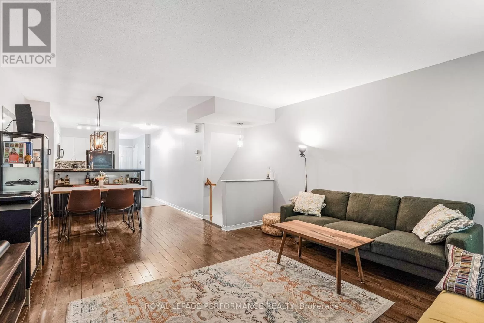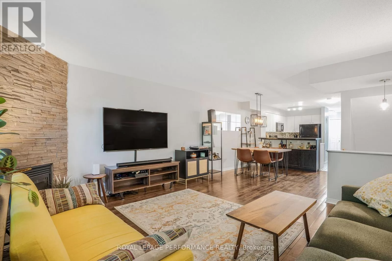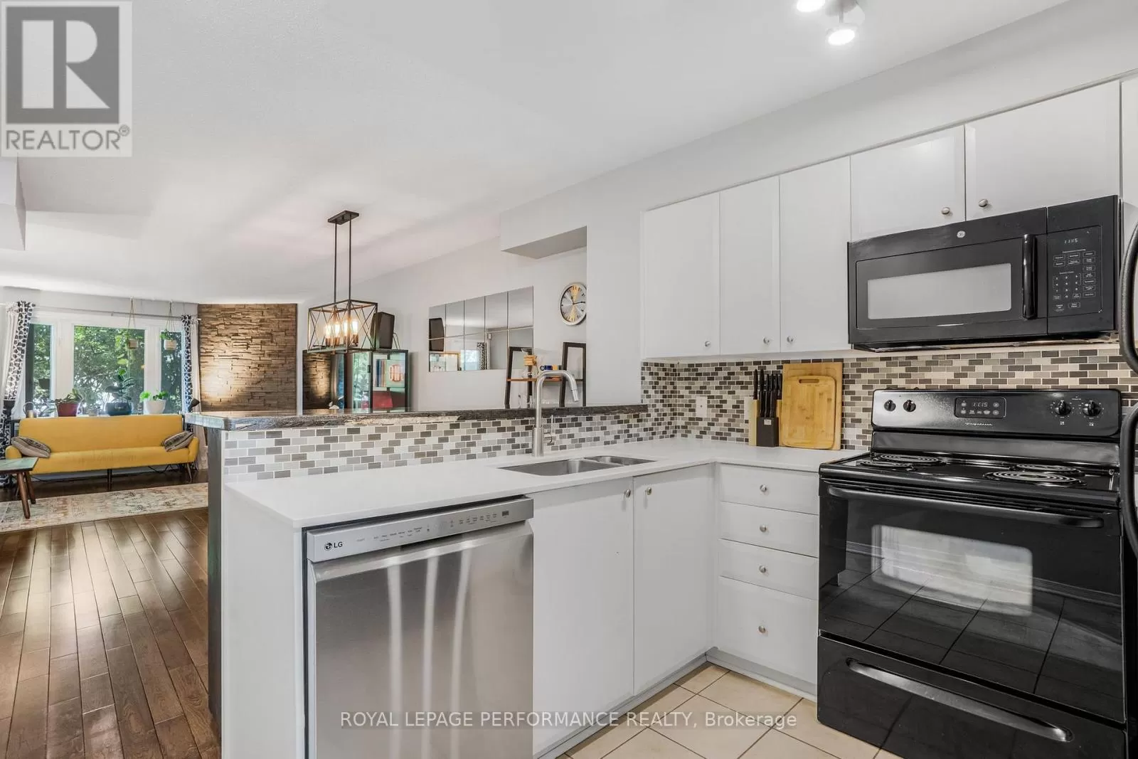 Cross Streets: Ogilvie and Cummings. ** Directions: Ogilvie West to Cummings turn right. Nestled in a quiet, accessible neighbourhood just steps from shops, parks, playgrounds, public transit (including the nearby Ogilvie O-Train), and schools, this beautifully updated 2-bedroom, 2-bath condo offers incredible value and convenience.The open-concept main floor features a bright and modern kitchen with quartz countertops, granite breakfast bar, glass tile backsplash, and stylish light fixtures. Rich hardwood flooring flows through the dining and living areas, where a gas fireplace with brick accent wall adds warmth and character. French doors lead to your own private garden oasis perfect for relaxing, entertaining, or BBQing in the warmer months.Downstairs, the lower level boasts two spacious bedrooms with soaring 9-foot ceilings, a full bathroom, convenient laundry room with washer and dryer, additional storage, and a linen closet.Additional features include central air conditioning and TWO dedicated parking spaces, each equipped with its own electrical outlet ideal for winter plug-ins or EV adaptors.This is a rare opportunity to own a move-in ready home in a well-connected, family-friendly community. Don't miss it! (id:27476)