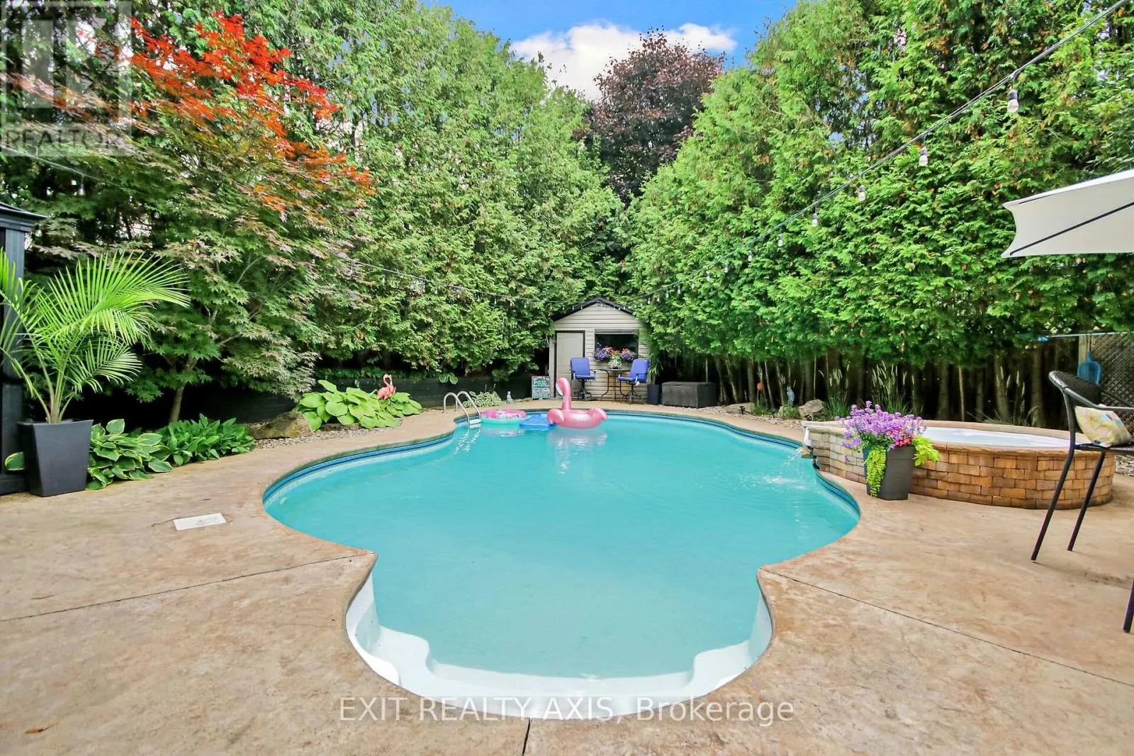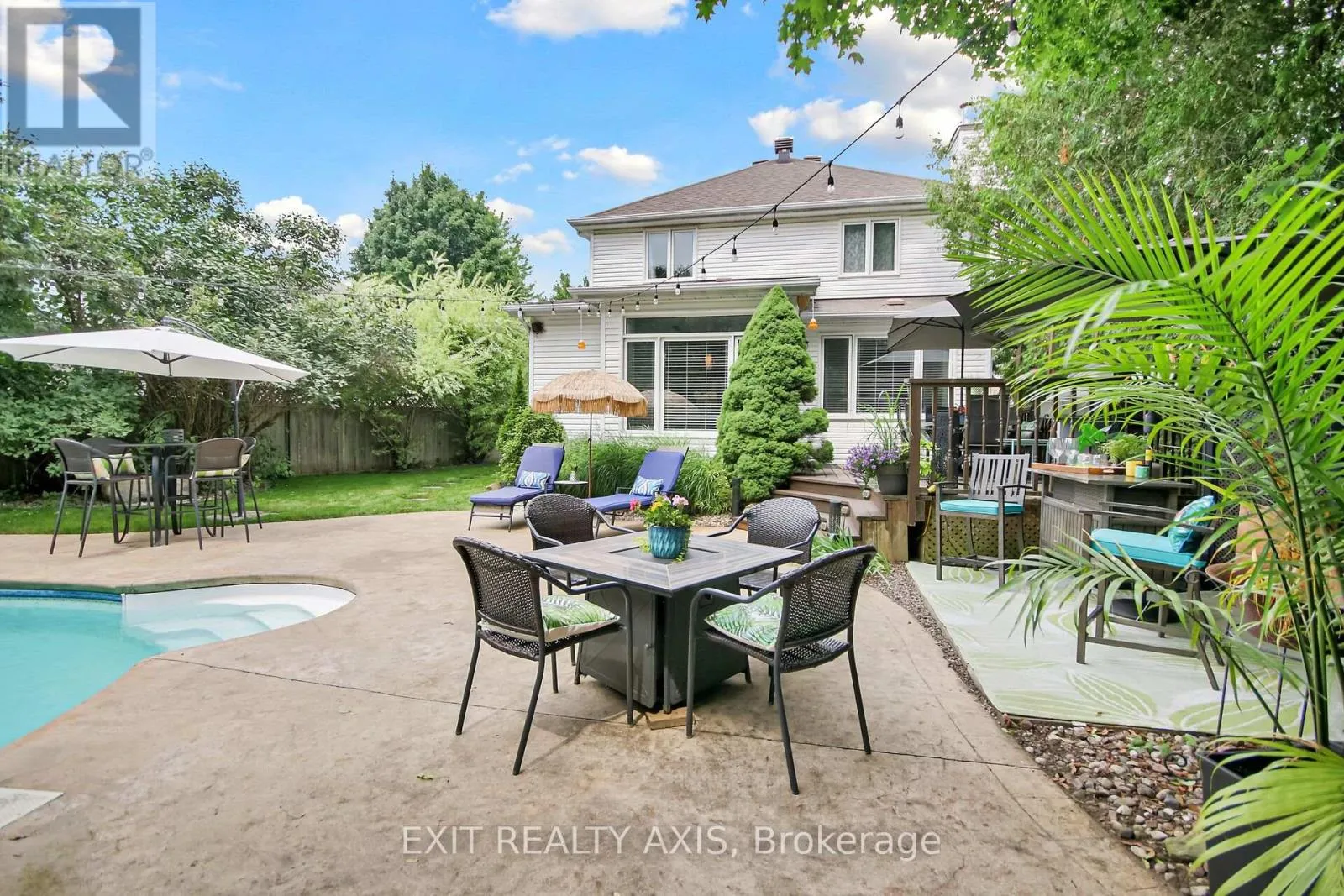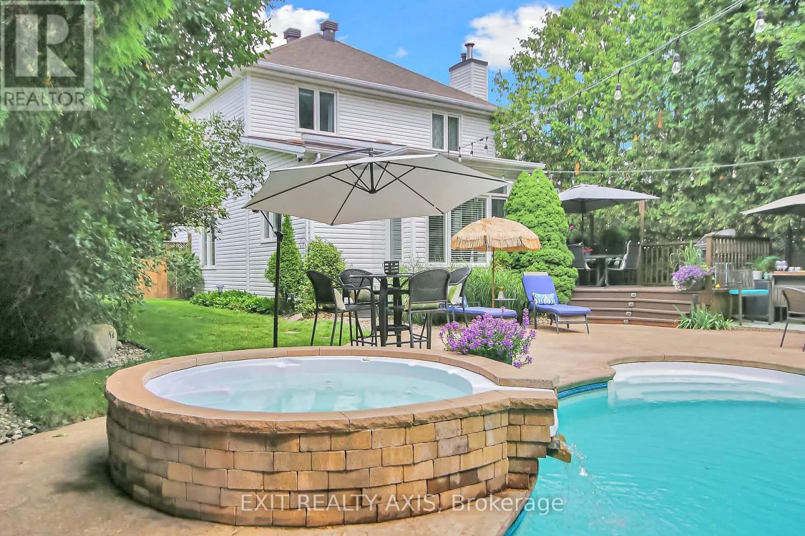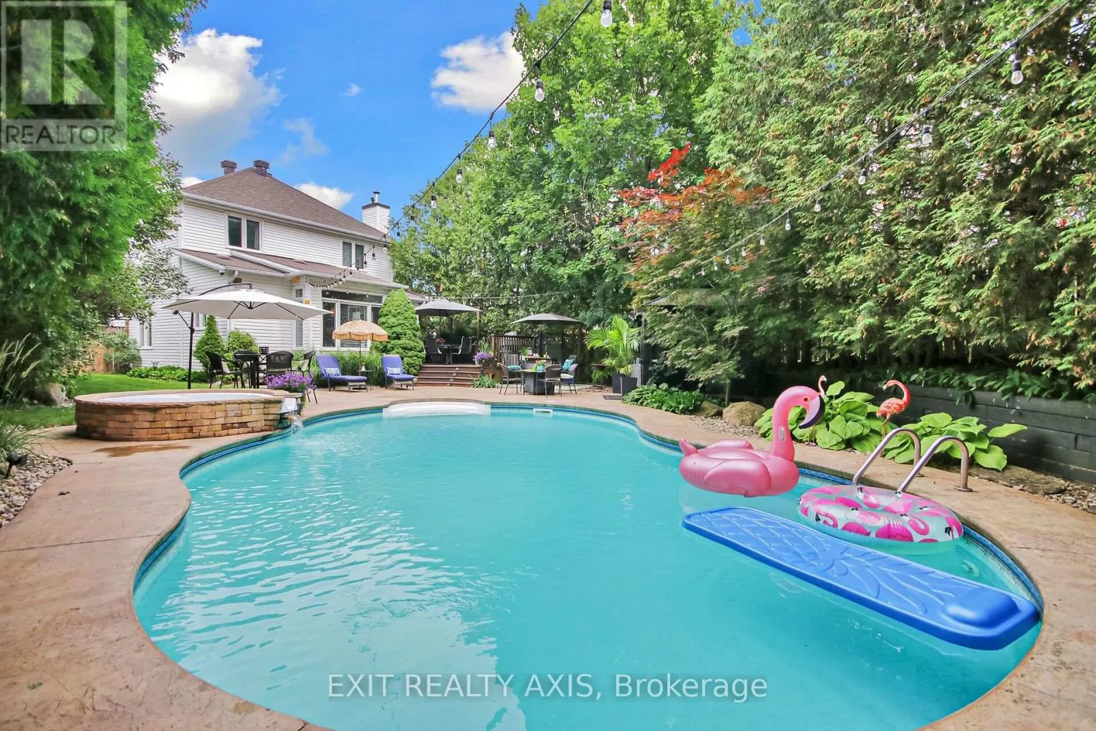 Cross Streets: Woodroffe and queensbury. ** Directions: From Woodroffe Ave turn onto Queensbury Dr, right on Doulton Gate left on Longshire Cir property on your left. Welcome to 155 Longshire Circle Your Private Backyard Oasis Awaits! This charming 4-bedroom, 3-bathroom two-storey home offers the perfect blend of comfort, space, and entertainment for the whole family. Step inside to find formal living and dining rooms ideal for hosting guests or enjoying quiet evenings. The spacious kitchen includes a bright breakfast area that overlooks the large family room, complete with a cozy fireplace and built-in entertainment center perfect for relaxing family time. The fully finished lower level is designed for fun and entertaining, featuring a games area with a pool table and a stylish bar for refreshments and social gatherings. Step outside and experience your own private oasis! Beat the heat in the beautiful inground pool with an integral spillover spa, or unwind in the shade of the screened-in gazebo. There's plenty of space to lounge, play, and entertain in this backyard retreat. Don't miss your chance to make this family-friendly gem your forever home! Upgrades; Jeld wen windows throughout house in 2022, roof 2020,Luxury vinyl fl in office/4th bedroom 2025, Laminate in 2 bedrooms 2020, primary bedroom Carpet 2020, Pool 2012. (id:27476)