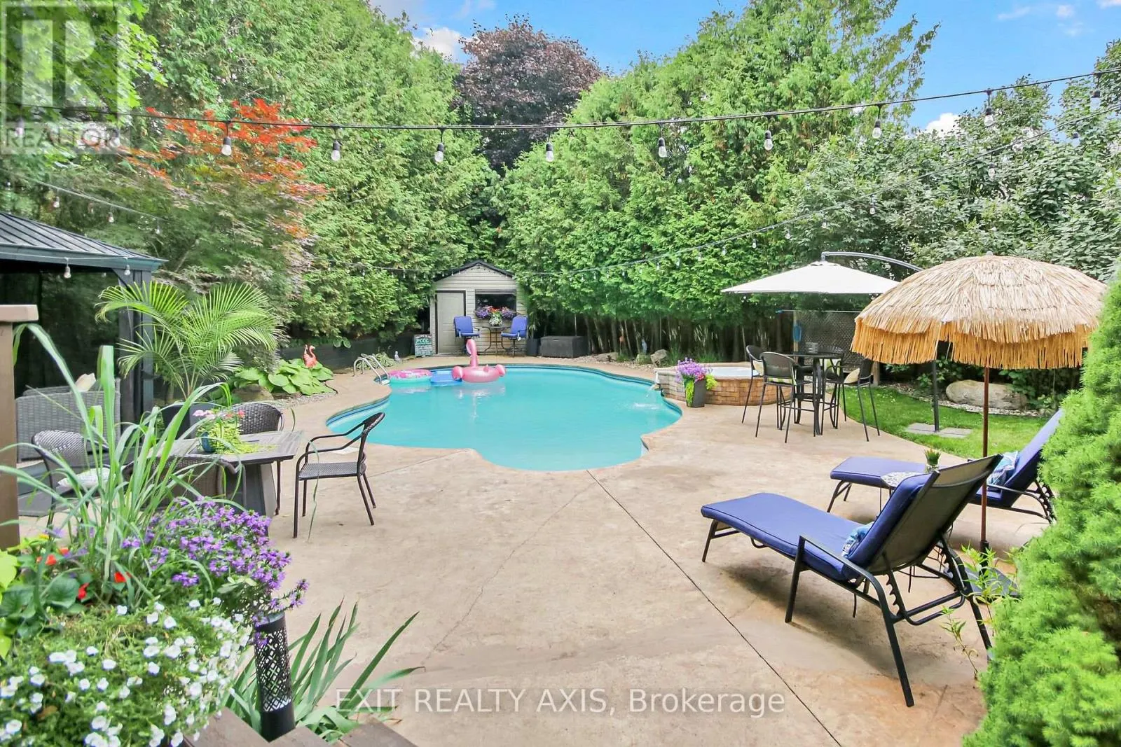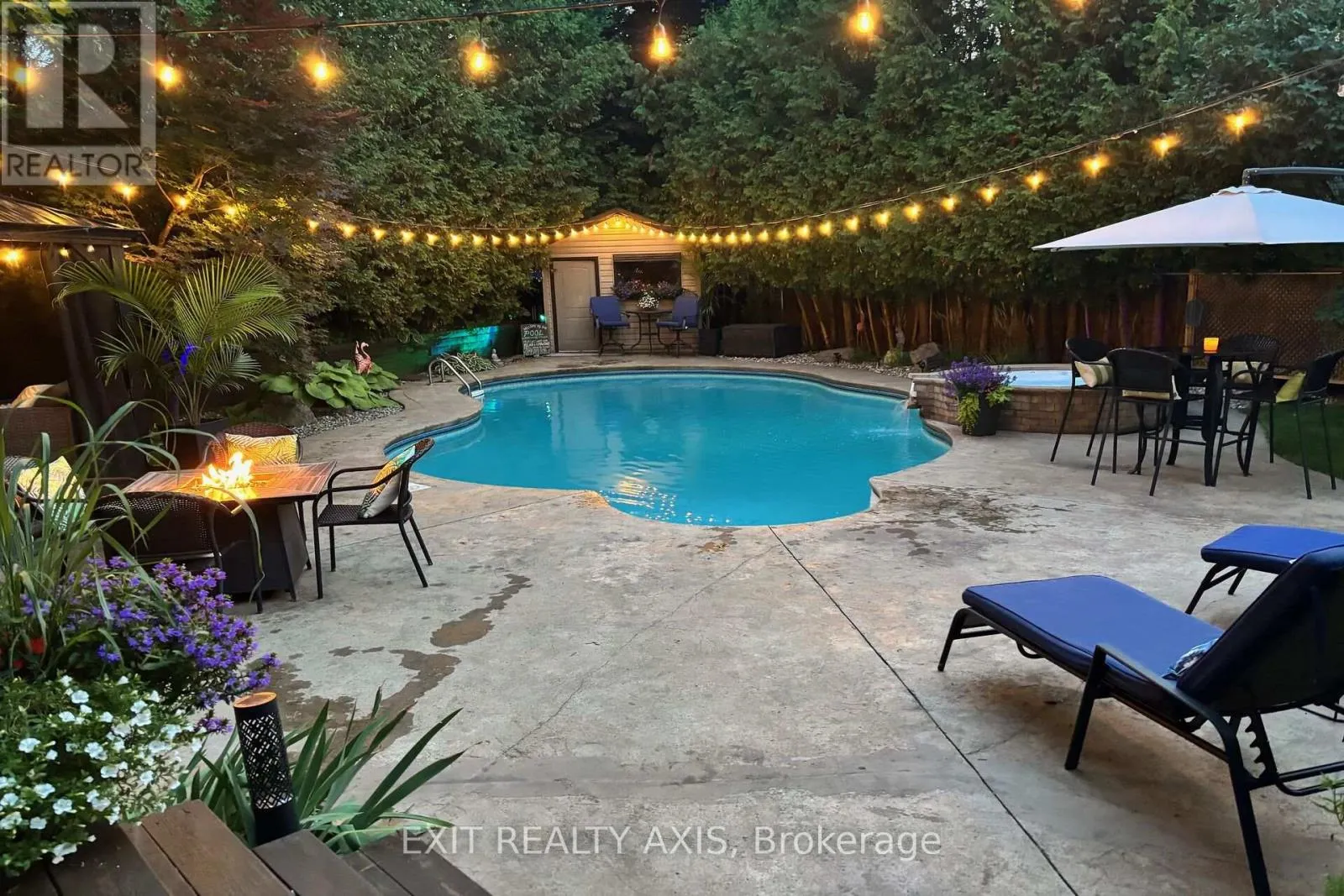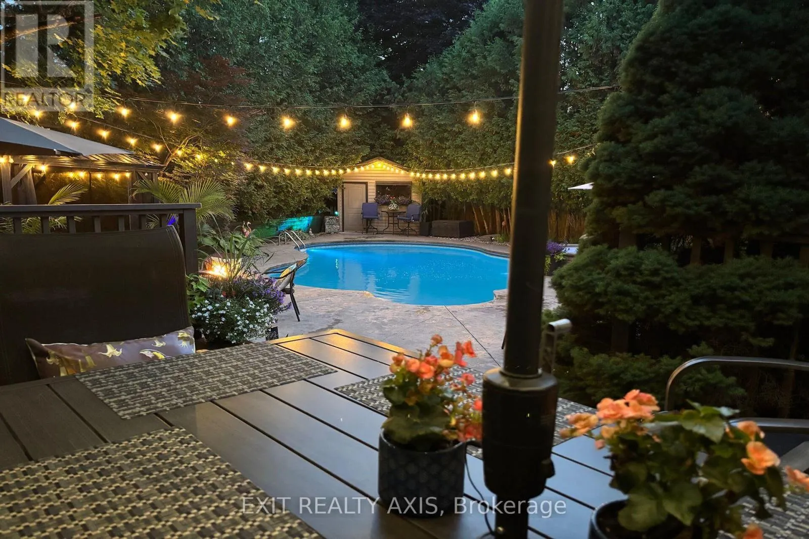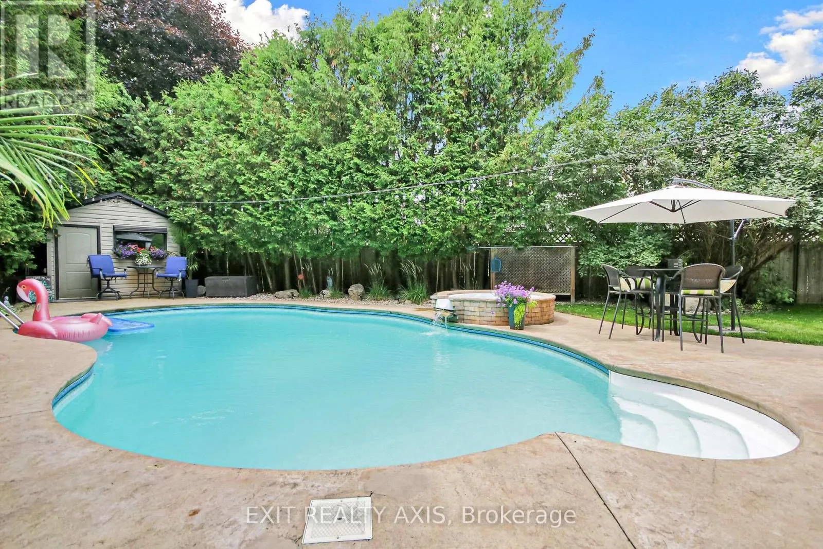 Cross Streets: Woodroffe and queensbury. ** Directions: From Woodroffe Ave turn onto Queensbury Dr, right on Doulton Gate left on Longshire Cir property on your left. Welcome to 155 Longshire Circle Your Private Backyard Oasis Awaits! This charming 4-bedroom, 3-bathroom two-storey home offers the perfect blend of comfort, space, and entertainment for the whole family. Step inside to find formal living and dining rooms ideal for hosting guests or enjoying quiet evenings. The spacious kitchen includes a bright breakfast area that overlooks the large family room, complete with a cozy fireplace and built-in entertainment center perfect for relaxing family time. The fully finished lower level is designed for fun and entertaining, featuring a games area with a pool table and a stylish bar for refreshments and social gatherings. Step outside and experience your own private oasis! Beat the heat in the beautiful inground pool with an integral spillover spa, or unwind in the shade of the screened-in gazebo. There's plenty of space to lounge, play, and entertain in this backyard retreat. Don't miss your chance to make this family-friendly gem your forever home! Upgrades; Jeld wen windows throughout house in 2022, roof 2020,Luxury vinyl fl in office/4th bedroom 2025, Laminate in 2 bedrooms 2020, primary bedroom Carpet 2020, Pool 2012. (id:27476)