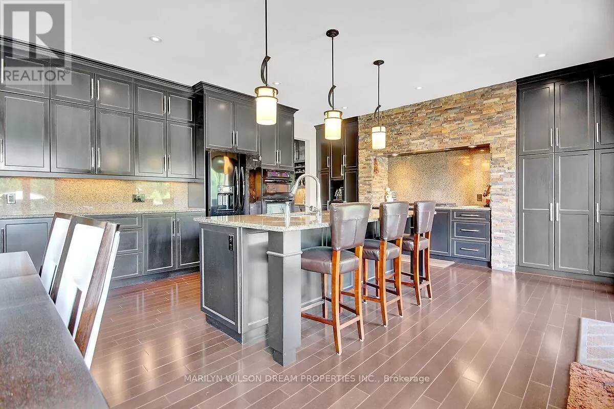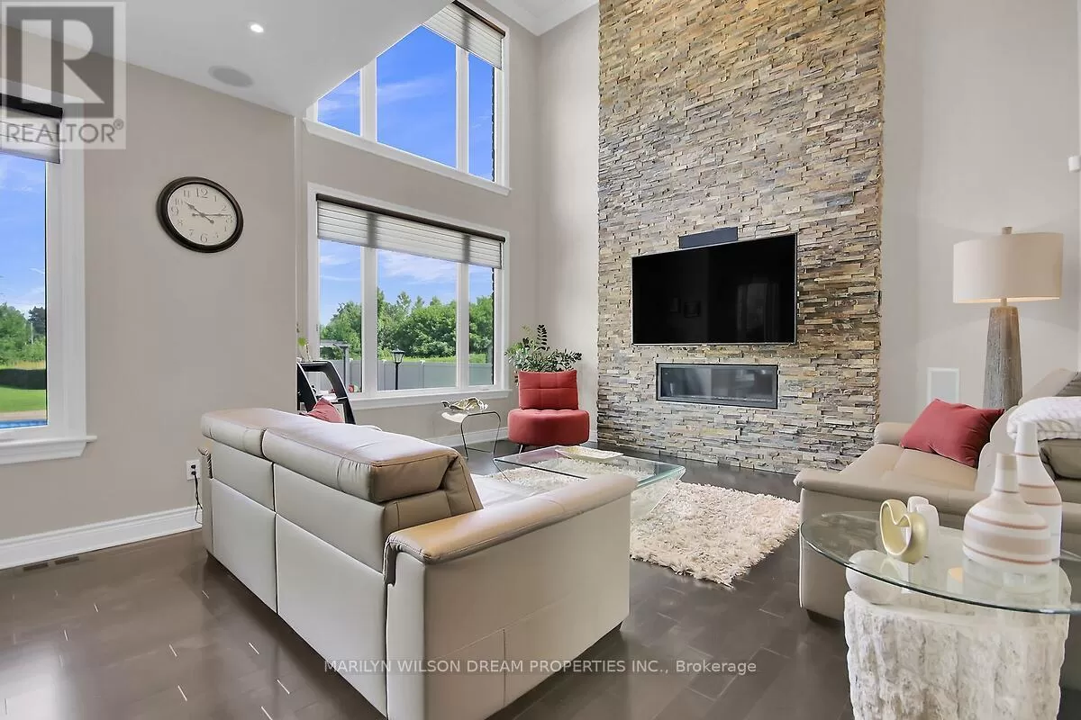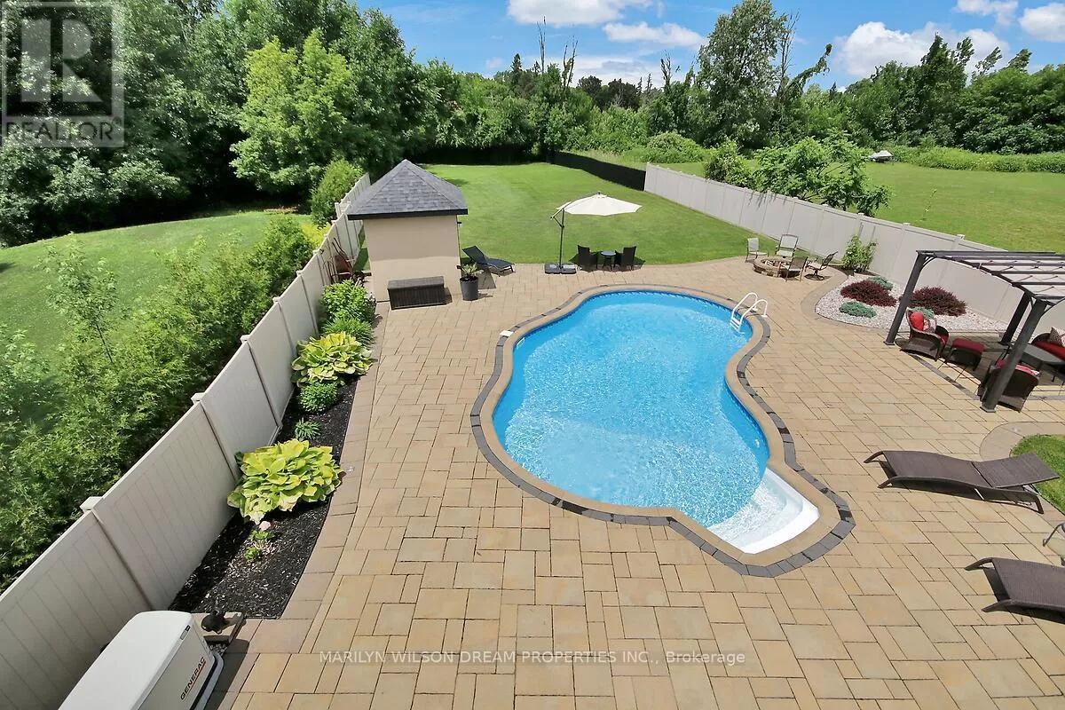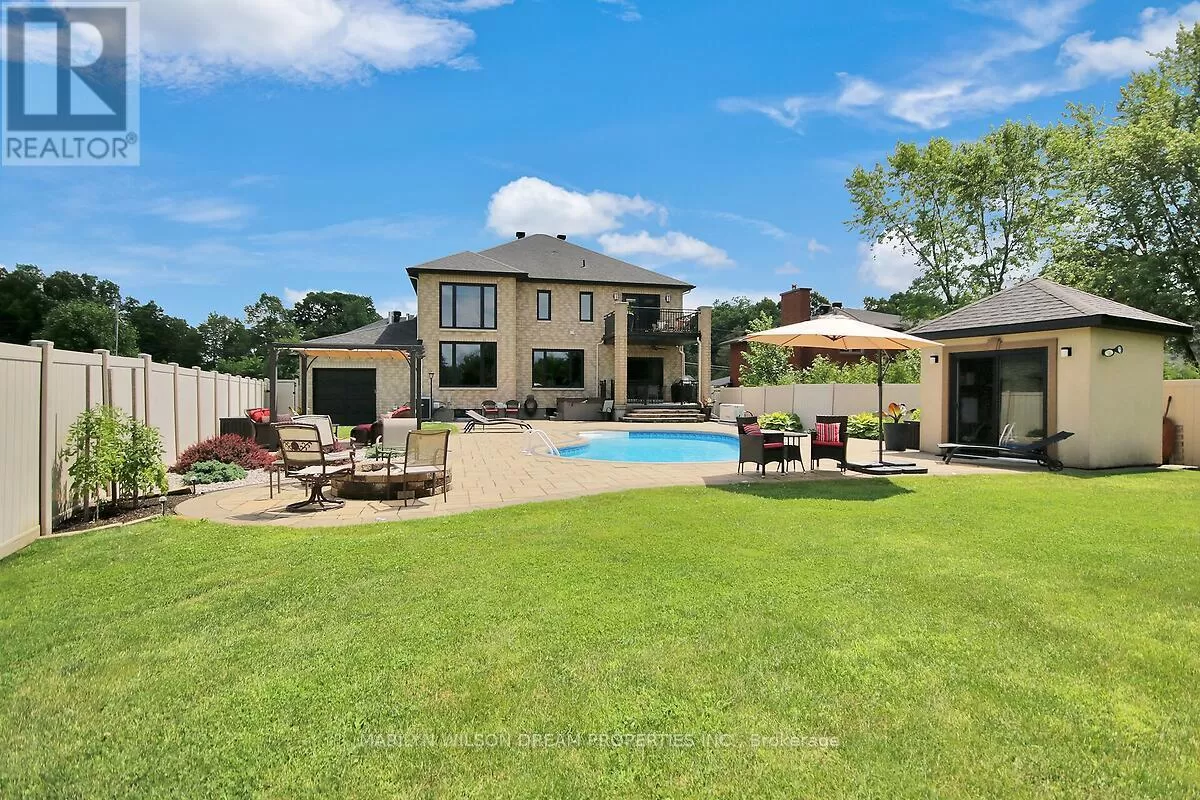 Cross Streets: Limebank Road & Balmoral Drive. ** Directions: Heading East on Hunt Club Road, turn right onto Limebank Road. Then, turn right onto Balmoral Drive. The house will be on your right. This elegant custom built estate home is marked by impeccable design and the finest quality of materials and finishes. Traditional meets modern. Spectacular 319' deep lot with backyard oasis surrounded by mature trees. Peaceful country living meets modern city amenities - only minutes away. No rear neighbours and NCC land across the street. 3702 sq ft above grade the 1800 sq ft on lower level. Oversize triple pane windows throughout provide an abundance of natural light. Grand 18' entrance with split staircase. Gourmet kitchen with custom-crafted, soft close cabinetry, granite counters, immense island with 2 sinks and breakfast bar, quality appliances including a gas cooktop, dustpan, etc. Patio doors to covered porch. Walk-in pantry, as well as butler's pantry with wet bar. Open to 18' family room with gas fireplace. Surround sound with built-in speakers. Main floor office and formal living area featuring a double sided gas fireplace. Additional dining room for family or formal gatherings. Spacious primary suite with balcony, his/her closets and ensuite with soaker tub and glass shower. Coffered ceiling with ambient lighting adds depth, dimension and a sense of architectural elegance to the space. Two additional bedrooms with large closets and shared 5 piece bath. 2nd floor laundry. Expansive lower level is partially finished and has a bath rough-in. Currently divided with a recreation room, games area and gym space. Also featuring a huge cold storage room. 3 car garage is insulated, dry-walled and has a full size door to rear yard. Backyard is modelled for entertaining with an inground salt water heated pool, hot tub, fire pit, gazebo and numerous seating areas. Pool and perimeter lighting. New HWT in 2024. Generator and irrigation system in 2023. Furnishings are negotiable, as well as riding mower. Deeded access to the Ottawa River. Boat launch minutes away. This magnificent home is a must see! 24 hours notice for showings and offers please. (id:27476)