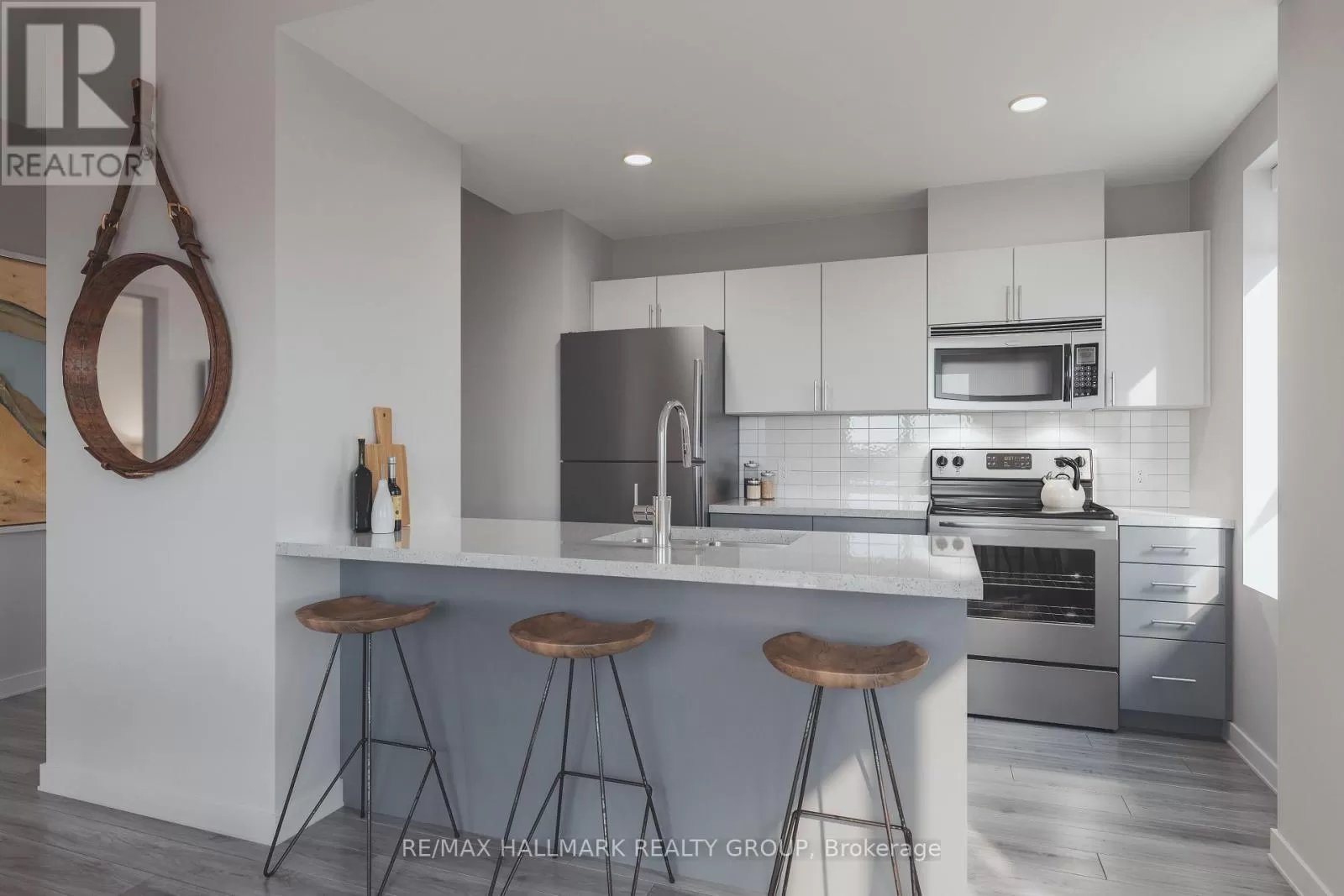 Vanier and McArthur Welcome to 403-353 Gardner Street! Boasting impeccable new build in the heart of the city! This gorgeous 1 bed, 1 bath apartment is steps away from popular restaurants and shops, minutes to the Byward Market, amazing parks, trails, bike paths, the Quebec side, U of Ottawa, St. Laurent Shopping Center, VIA Rail, transit & so much more! The unit offers tons of natural light with lots of windows. Features gleaming floors with no carpet and large kitchen island with granite counter-tops including in the bathrooms. Full-size stainless-steel appliances plus in-suite laundry. Building amenities include: Lounge and Bike repair and storage area. Tenant to pay Hydro. Available for immediate occupancy! (id:27476)