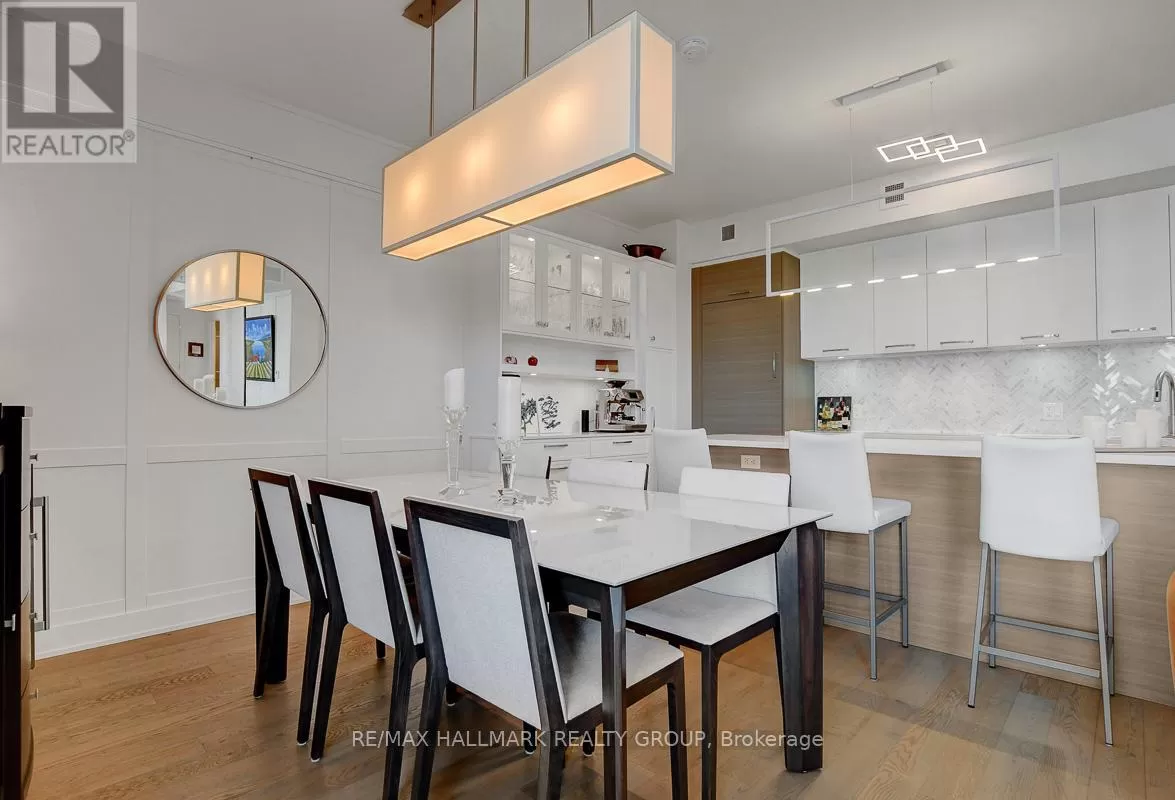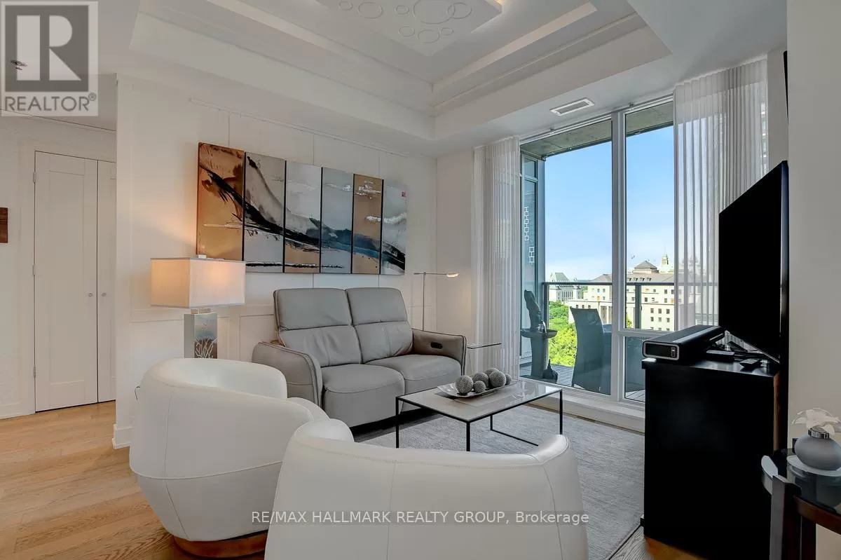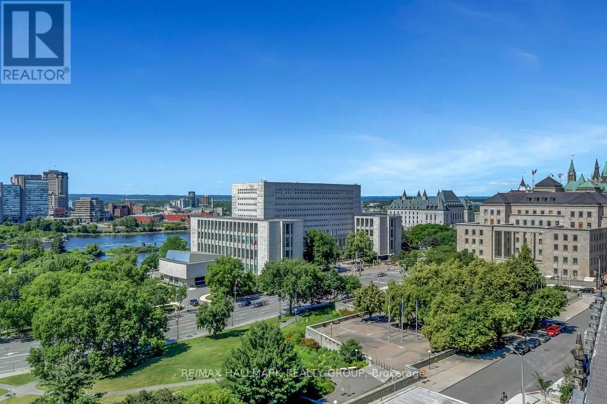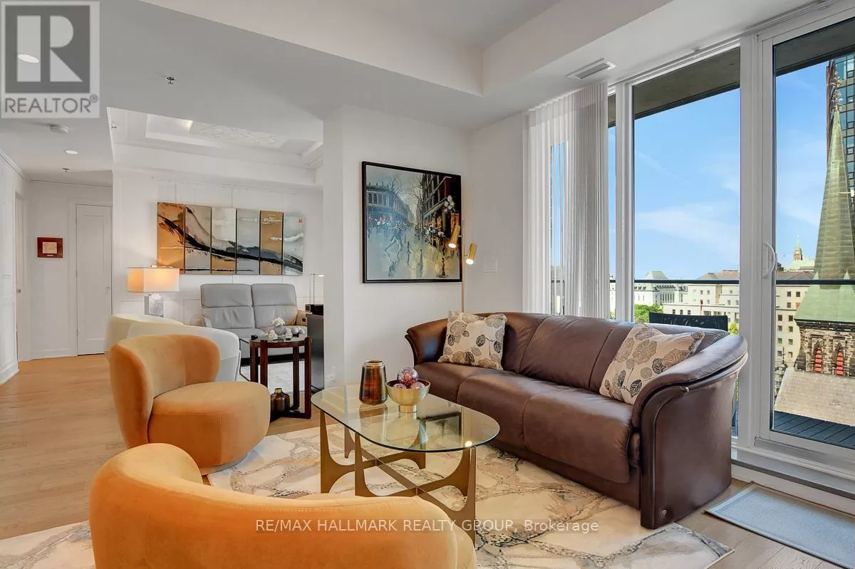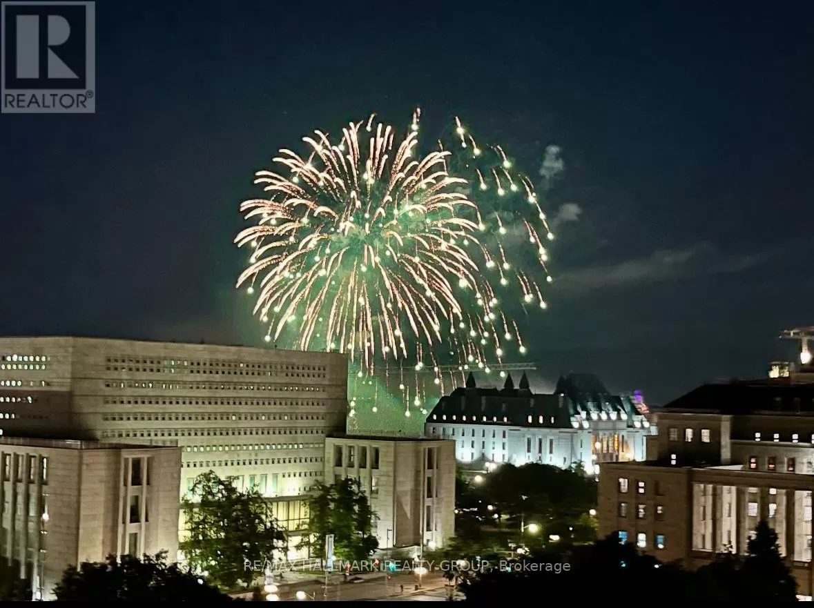 Cross Streets: Bronson or Bay. ** Directions: 428 Sparks is between Sparks and Queen and Bronson. Head north on Bay St and turn left on Sparks, there is street parking on Sparks. Or you can head north on Bronson and park on Queen St. You will fall in love with the custom Spire Model and its design quality. This 962sf, 2bdrm unit was converted to a 1bdrm by the builder (as per the first owner's instructions). Enjoy more living space including a custom-built office. Recent quality upgrades that were completed in 2024 by Louis L'artisan: upper kitchen cabinets, an 8' Corian counter with waterfall features on both ends, a thoughtfully designed built-in coffee/cocktail station with an abundance of storage space and convenient pull our drawers. In addition; a new Faber hood fan, induction cooktop, oven and a 2in1 washer/dryer unit. Notice the custom lighting and wall panelling throughout including the walnut panel in the bedroom. Art hanging tracks to display your favourite prints and paintings. Quality lighting throughout including ceiling fixtures from Cadieux Interiors. Enjoy the stunning views of Ottawa and the Gatineau Hills while barbequing from your spacious 115sf balcony with access from your bedroom and the living area. The balcony floor has been upgraded with engineered exterior tiles that dress up your outdoor living space. The Cathedral Hill building offers quality amenities; full time front desk service, guest suites, a lounge and a party room w/kitchen, an exterior BBQ, a gym, yoga room and sauna, a pet washing station, car wash station and bicycle racks. The underground parking spot comes with an EV charger. A short walk to LRT stations, Bronson Park, the Ottawa River Runners at the Pumphouse white water course, the Trans Canada Trail, Cirque du Soleil and many more destinations! You won't be disappointed! Condo fee covers water, hot water, cooling & heating (owner pays only electricity for lighting and appliances). 24 hour irrevocable on all offers. (id:27476)