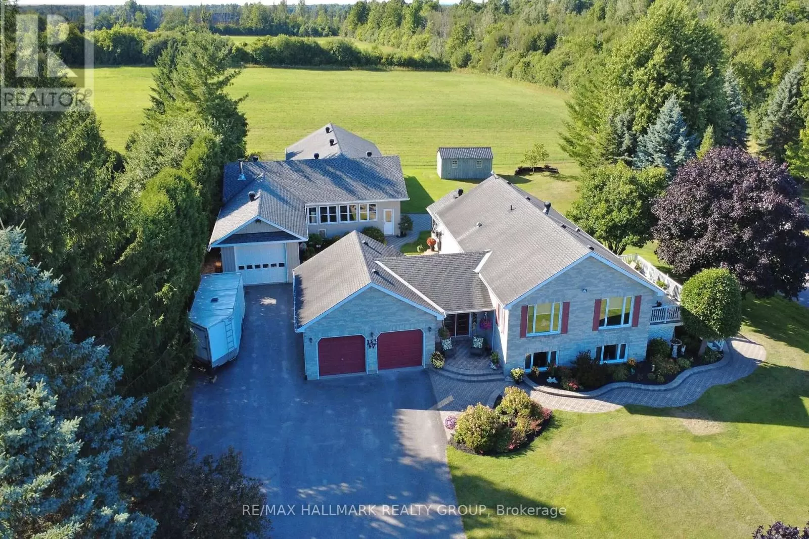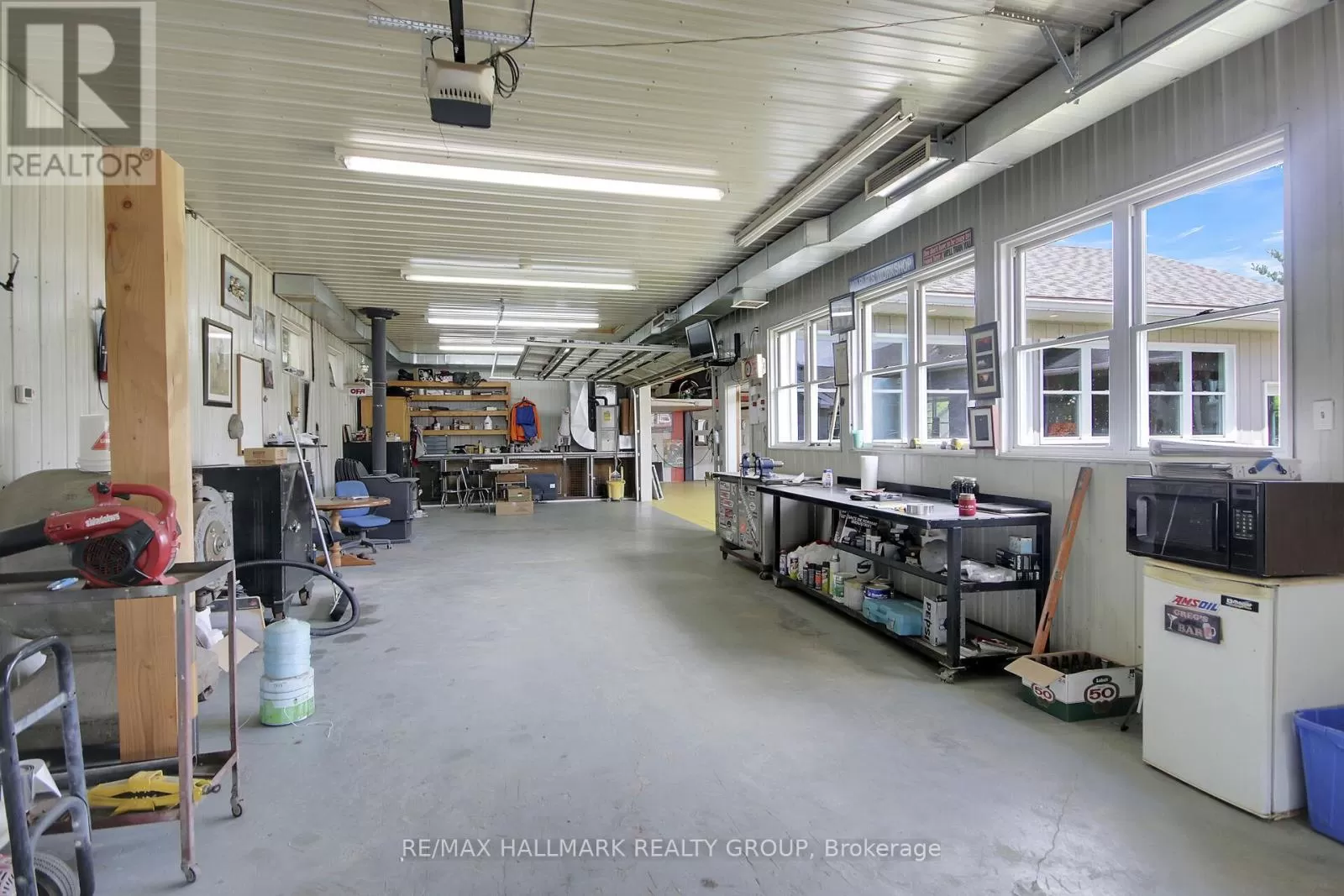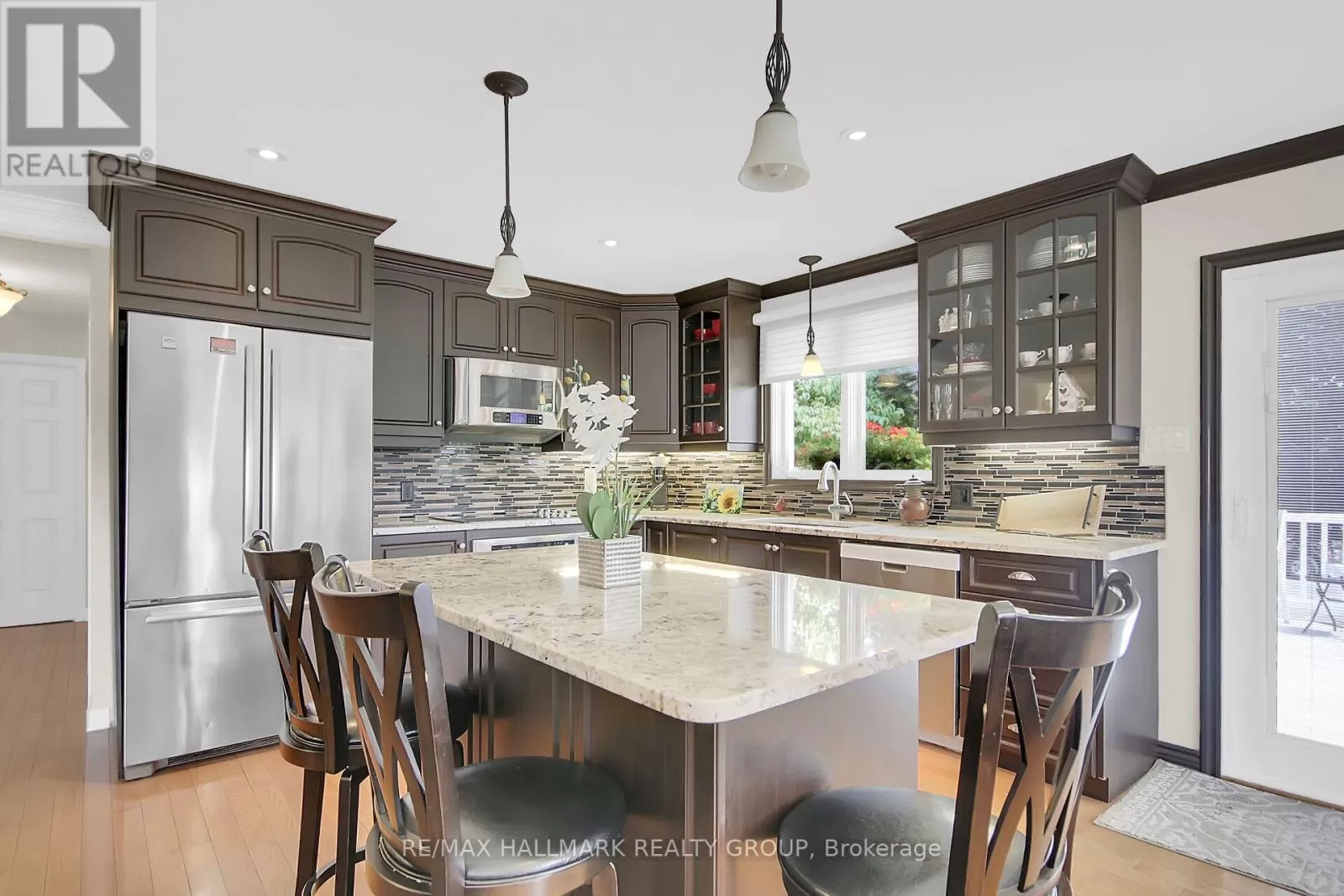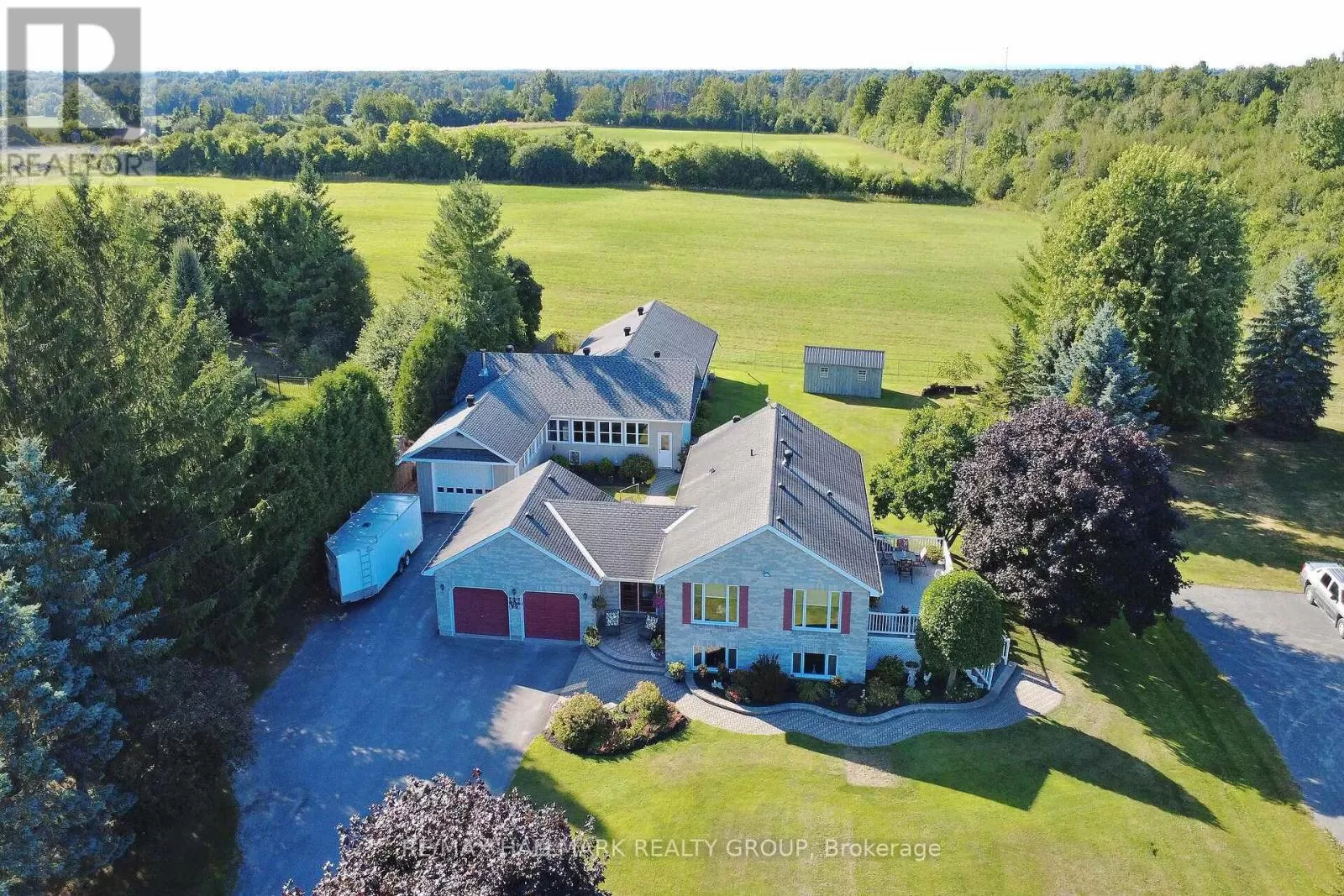 Cross Streets: Third Line Road & Carsonby Road East. ** Directions: Prince of Wales South to Century Road East. Right on Third Line Road. Left on Carsonby Road East. 1721 Carsonby Road East Craftsman Bungalow Surrounded by Rolling CountrysideWelcome to this meticulously maintained all-brick craftsman bungalow, set amidst gentle slopes and beautiful rural landscapes. Combining timeless quality with modern comforts, this two-bedroom, one-and-a-half-bathroom home offers exceptional functionality and charm.An expansive entrance with a two-piece powder room leads into the open-concept main living area. The custom kitchen features a built-in oven, new cooktop, and microwave hood fan, seamlessly connecting to the dining and family room. Hardwood flooring, abundant natural light, and sweeping countryside views create an inviting space, with direct access to a spacious composite deck for outdoor living.The primary bedroom boasts a sizeable walk-in closet, outdoor entrance to enjoy a private jacuzzi enclosure designed with overhead protection while maintaining airflow and open views and shares a Jack & Jill style four-piece ensuite, ensuring both privacy and convenience.The lower level offers a large family room with a custom bar, perfect for entertaining, and a cozy propane fireplace. This level also includes a finished home office, an unfinished storage area plumbed for a future bathroom, and additional potential for customization. An insulated attached garage provides everyday convenience, while the impressive detached workshop measuring 17 x 53 and 69 x 29 combined (Approx 3000 square feet) offers propane heat, 100-amp electrical service, insulation, and additional wood stove heating, ideal for hobbyists or trades. Furnace/Heat Pump 2025. Centrally located, this property is just 13 minutes to Kanata, 10 minutes to Barrhaven, and 10 minutes to Manotick, offering peaceful country living with quick access to city amenities. Propane Approx $100/month, tank rental $95/year. New furnace installed 2025. (id:27476)