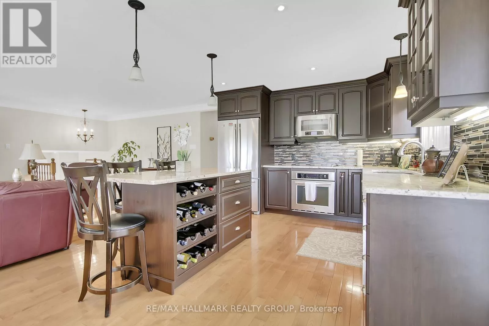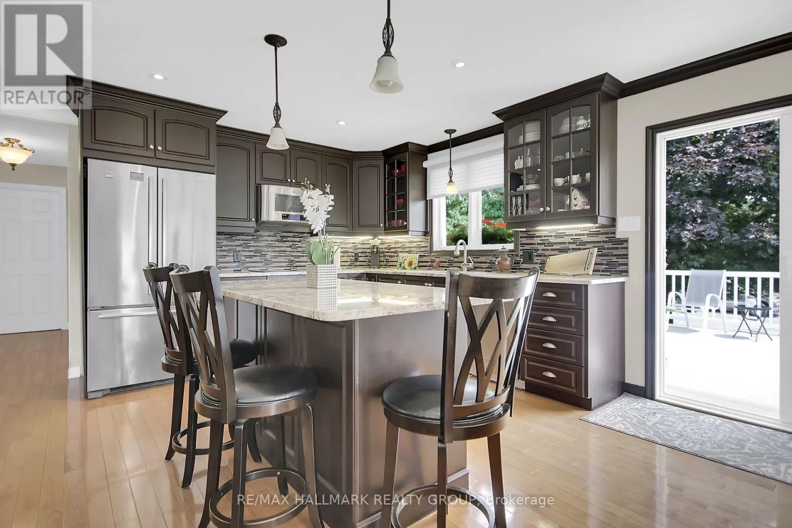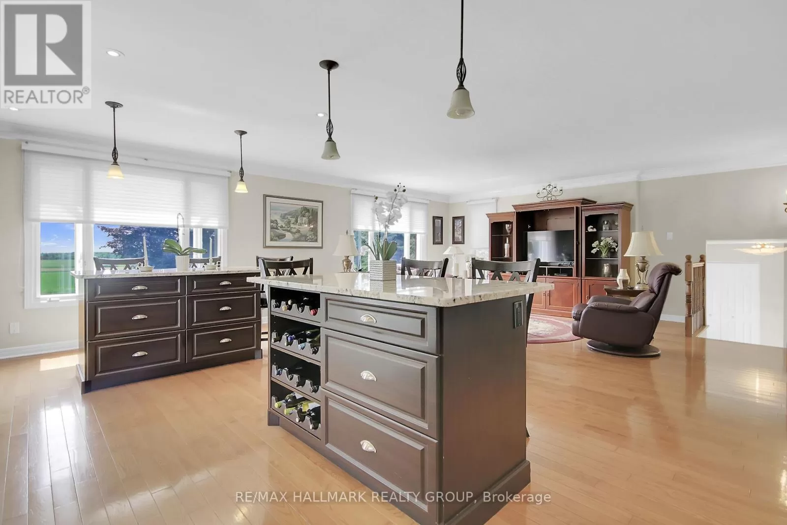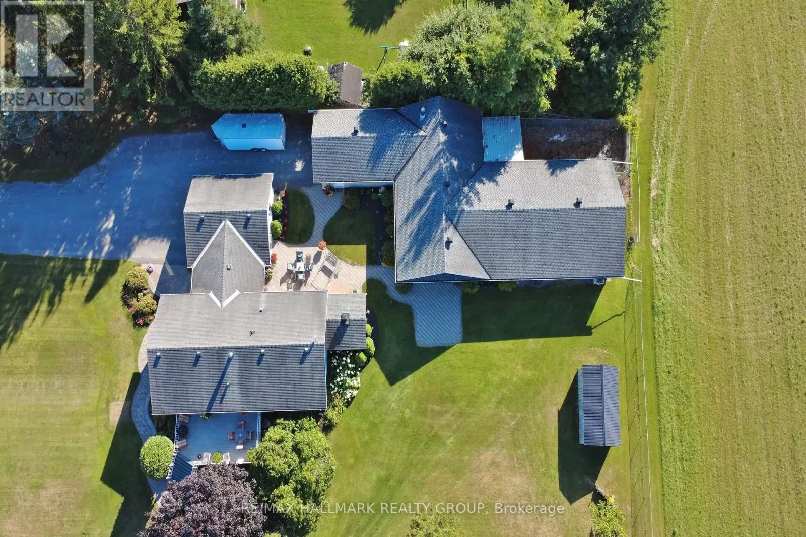 Cross Streets: Third Line Road & Carsonby Road East. ** Directions: Prince of Wales South to Century Road East. Right on Third Line Road. Left on Carsonby Road East. 1721 Carsonby Road East Craftsman Bungalow Surrounded by Rolling CountrysideWelcome to this meticulously maintained all-brick craftsman bungalow, set amidst gentle slopes and beautiful rural landscapes. Combining timeless quality with modern comforts, this two-bedroom, one-and-a-half-bathroom home offers exceptional functionality and charm.An expansive entrance with a two-piece powder room leads into the open-concept main living area. The custom kitchen features a built-in oven, new cooktop, and microwave hood fan, seamlessly connecting to the dining and family room. Hardwood flooring, abundant natural light, and sweeping countryside views create an inviting space, with direct access to a spacious composite deck for outdoor living.The primary bedroom boasts a sizeable walk-in closet, outdoor entrance to enjoy a private jacuzzi enclosure designed with overhead protection while maintaining airflow and open views and shares a Jack & Jill style four-piece ensuite, ensuring both privacy and convenience.The lower level offers a large family room with a custom bar, perfect for entertaining, and a cozy propane fireplace. This level also includes a finished home office, an unfinished storage area plumbed for a future bathroom, and additional potential for customization. An insulated attached garage provides everyday convenience, while the impressive detached workshop measuring 17 x 53 and 69 x 29 combined (Approx 3000 square feet) offers propane heat, 100-amp electrical service, insulation, and additional wood stove heating, ideal for hobbyists or trades. Furnace/Heat Pump 2025. Centrally located, this property is just 13 minutes to Kanata, 10 minutes to Barrhaven, and 10 minutes to Manotick, offering peaceful country living with quick access to city amenities. Propane Approx $100/month, tank rental $95/year. New furnace installed 2025. (id:27476)