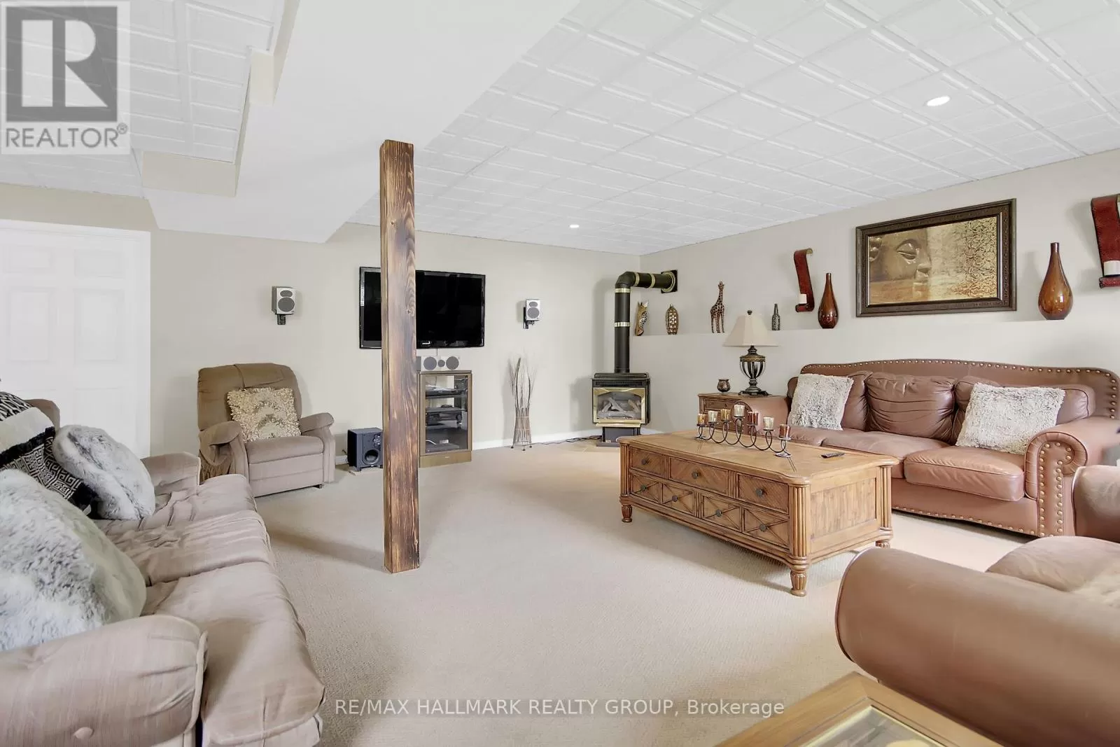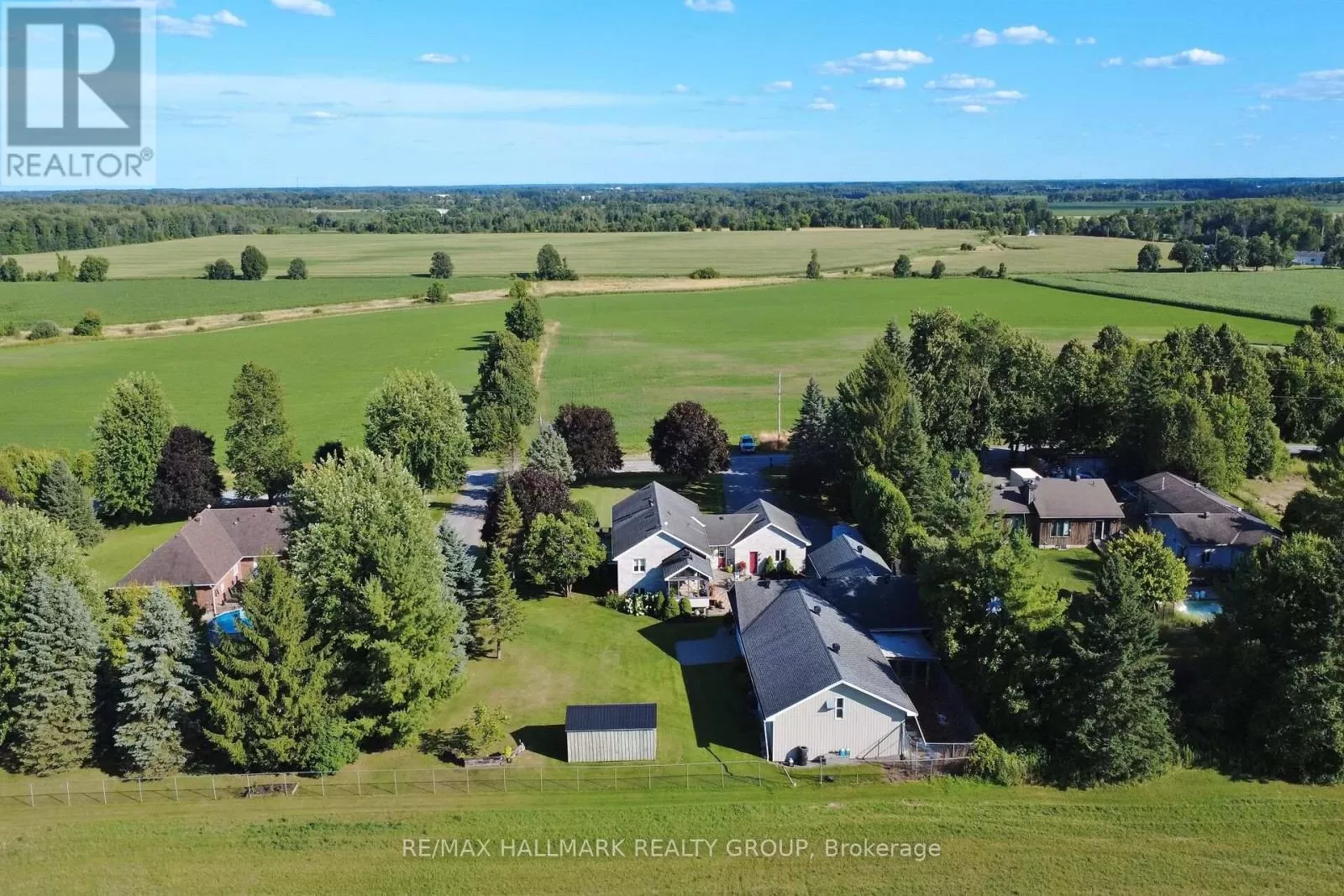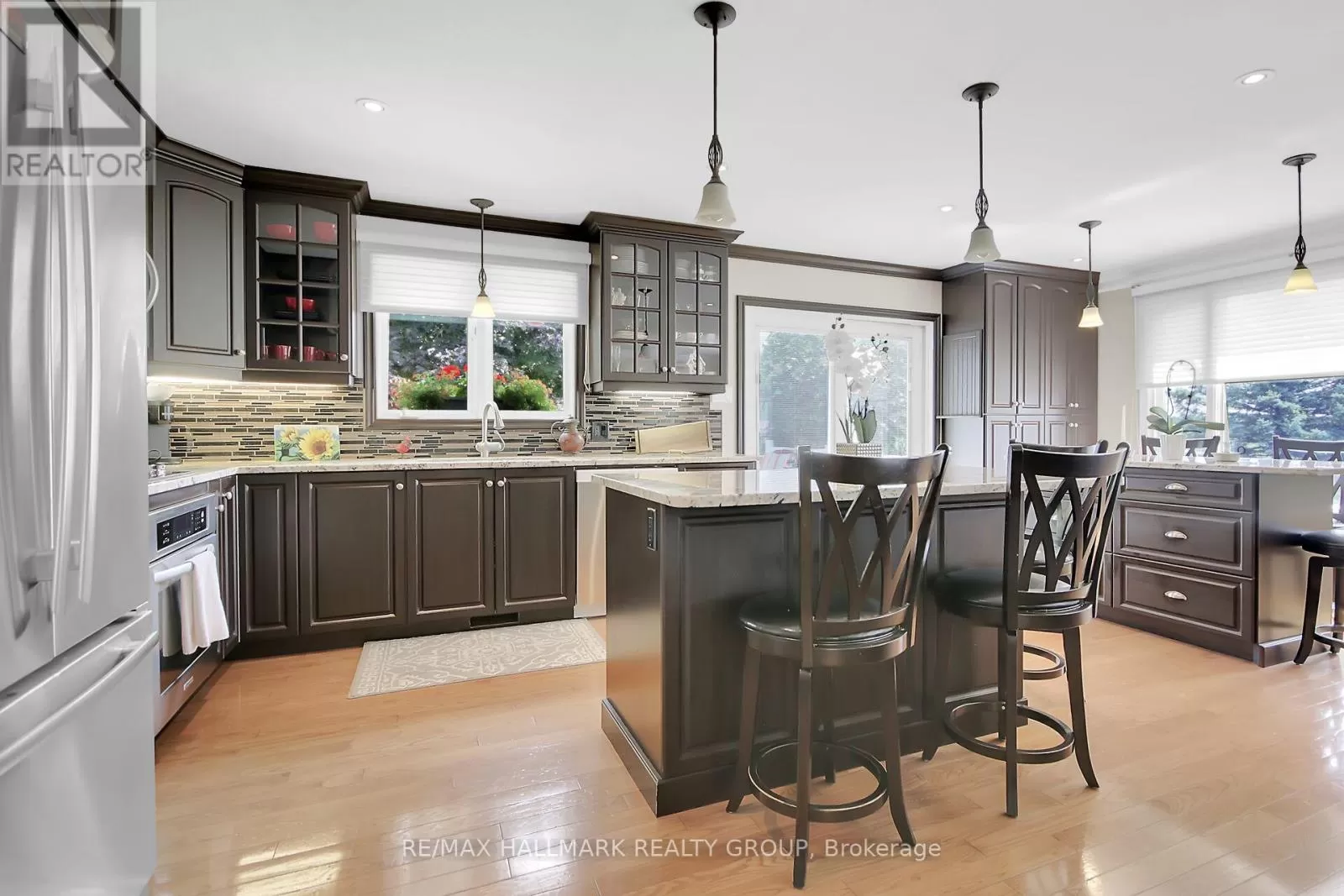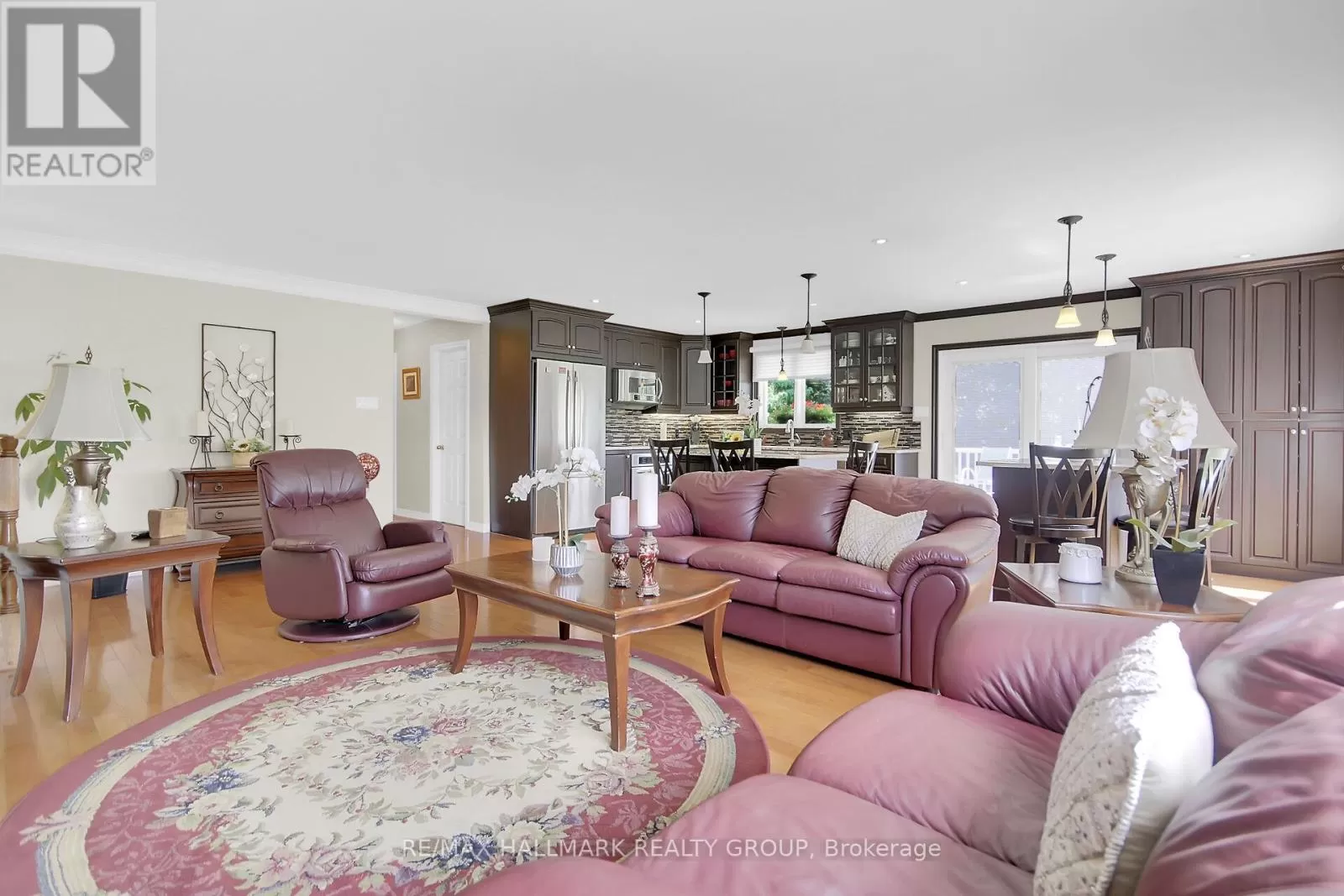 Cross Streets: Third Line Road & Carsonby Road East. ** Directions: Prince of Wales South to Century Road East. Right on Third Line Road. Left on Carsonby Road East. 1721 Carsonby Road East Craftsman Bungalow Surrounded by Rolling CountrysideWelcome to this meticulously maintained all-brick craftsman bungalow, set amidst gentle slopes and beautiful rural landscapes. Combining timeless quality with modern comforts, this two-bedroom, one-and-a-half-bathroom home offers exceptional functionality and charm.An expansive entrance with a two-piece powder room leads into the open-concept main living area. The custom kitchen features a built-in oven, new cooktop, and microwave hood fan, seamlessly connecting to the dining and family room. Hardwood flooring, abundant natural light, and sweeping countryside views create an inviting space, with direct access to a spacious composite deck for outdoor living.The primary bedroom boasts a sizeable walk-in closet, outdoor entrance to enjoy a private jacuzzi enclosure designed with overhead protection while maintaining airflow and open views and shares a Jack & Jill style four-piece ensuite, ensuring both privacy and convenience.The lower level offers a large family room with a custom bar, perfect for entertaining, and a cozy propane fireplace. This level also includes a finished home office, an unfinished storage area plumbed for a future bathroom, and additional potential for customization. An insulated attached garage provides everyday convenience, while the impressive detached workshop measuring 17 x 53 and 69 x 29 combined (Approx 3000 square feet) offers propane heat, 100-amp electrical service, insulation, and additional wood stove heating, ideal for hobbyists or trades. Furnace/Heat Pump 2025. Centrally located, this property is just 13 minutes to Kanata, 10 minutes to Barrhaven, and 10 minutes to Manotick, offering peaceful country living with quick access to city amenities. Propane Approx $100/month, tank rental $95/year. New furnace installed 2025. (id:27476)
