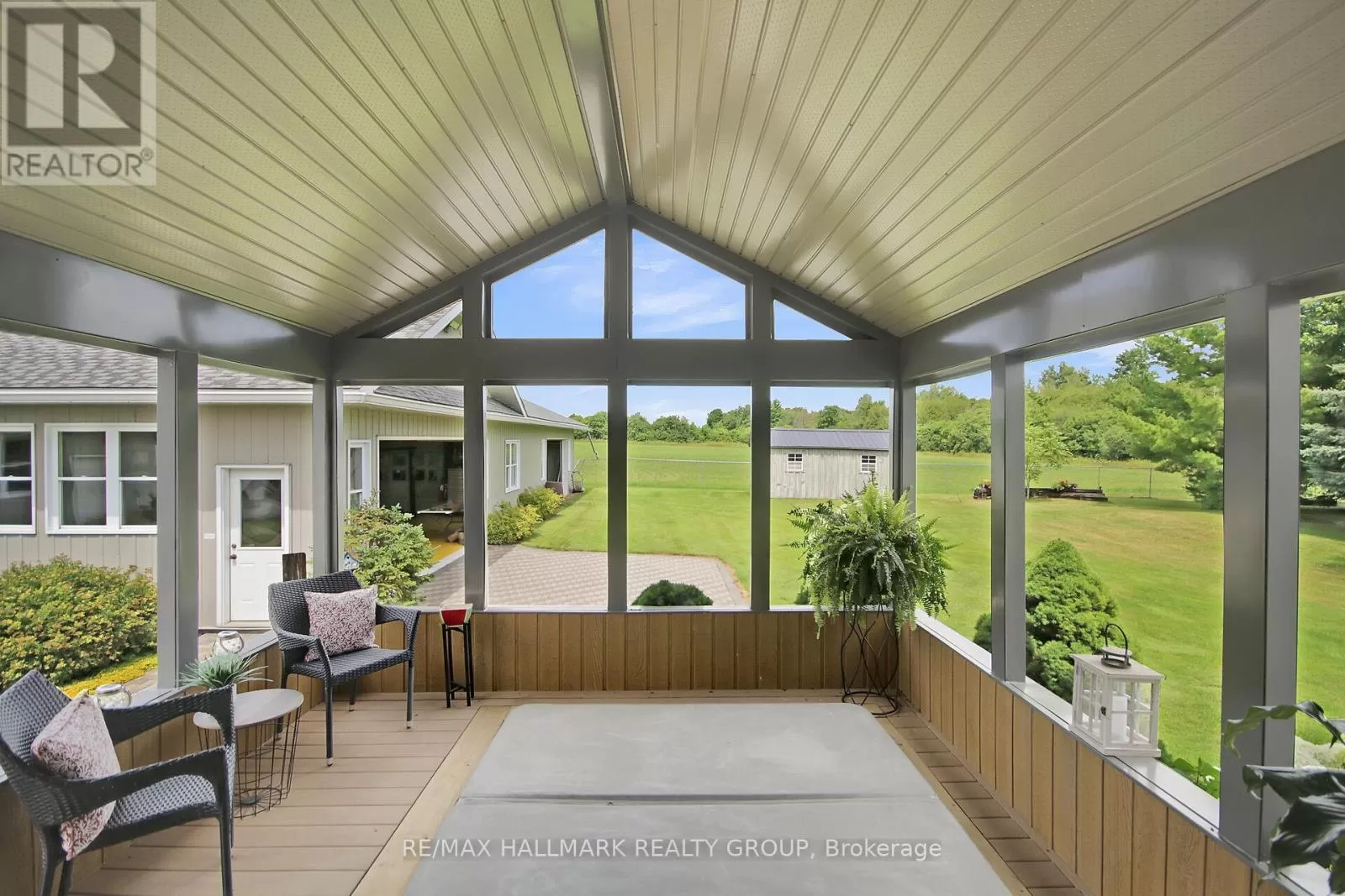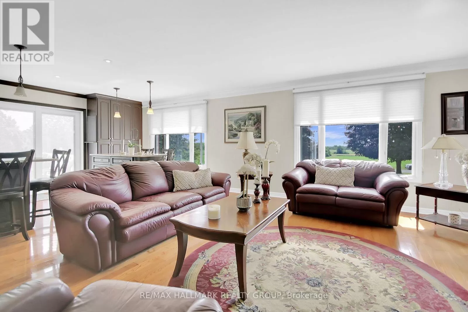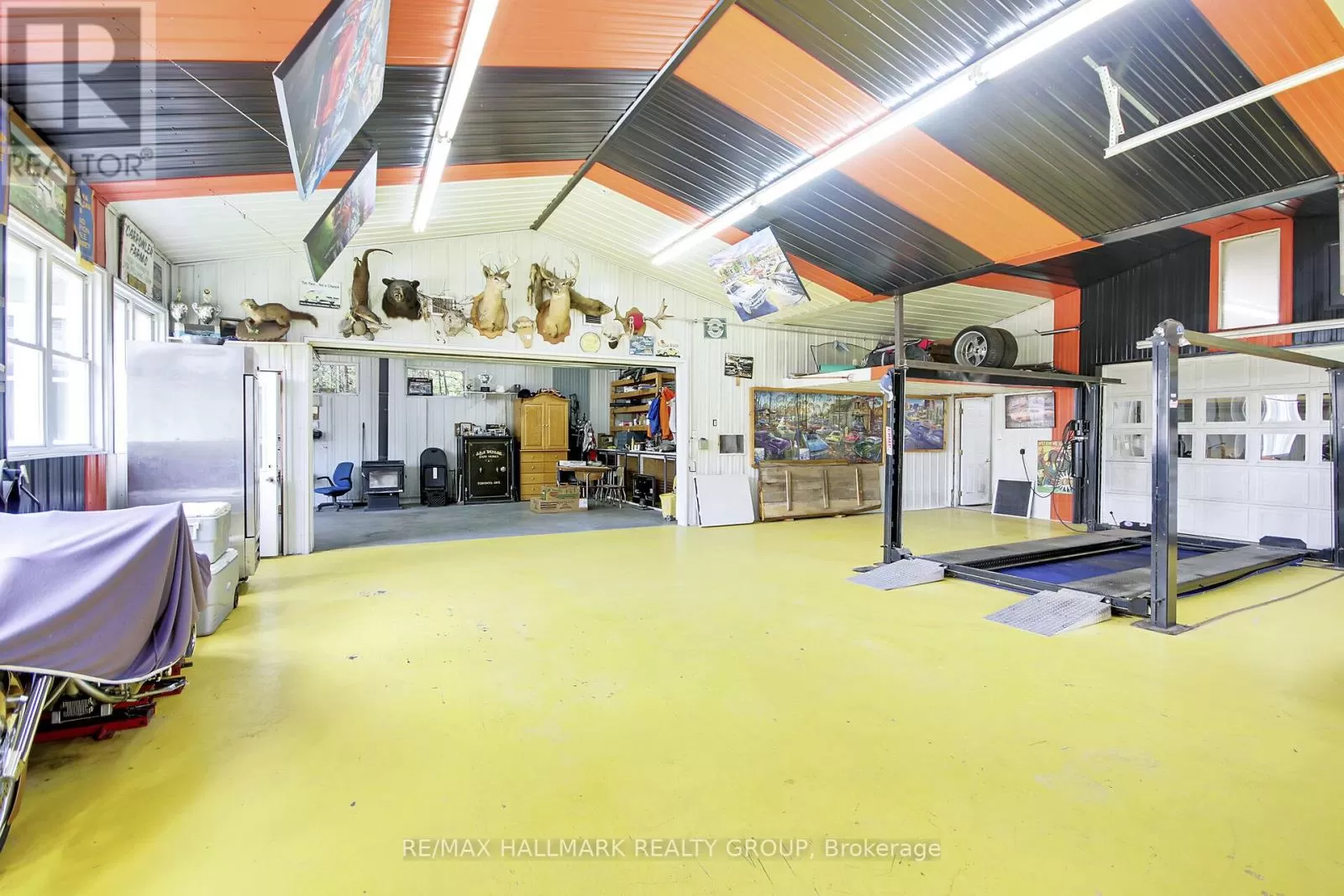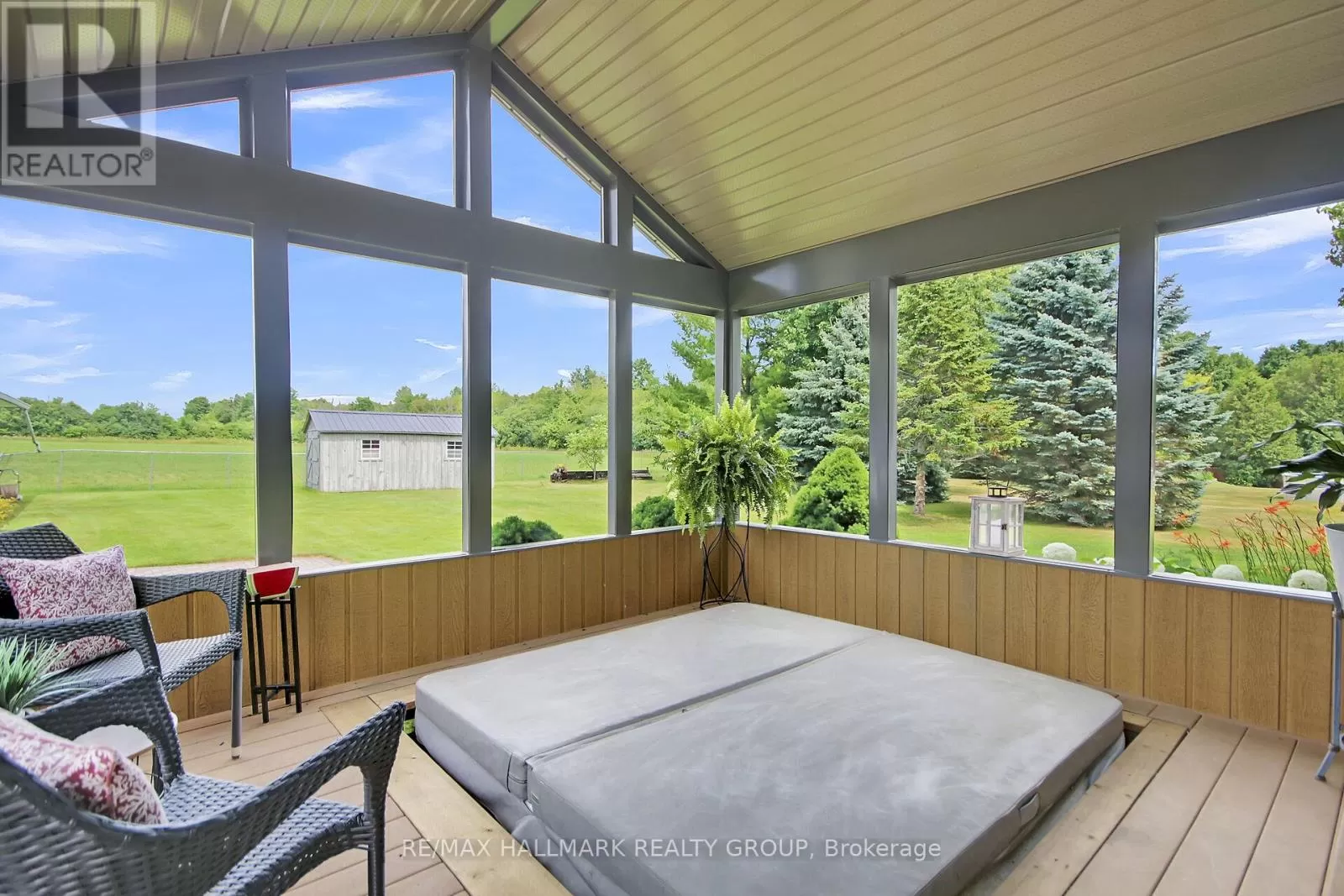 Cross Streets: Third Line Road & Carsonby Road East. ** Directions: Prince of Wales South to Century Road East. Right on Third Line Road. Left on Carsonby Road East. 1721 Carsonby Road East Craftsman Bungalow Surrounded by Rolling CountrysideWelcome to this meticulously maintained all-brick craftsman bungalow, set amidst gentle slopes and beautiful rural landscapes. Combining timeless quality with modern comforts, this two-bedroom, one-and-a-half-bathroom home offers exceptional functionality and charm.An expansive entrance with a two-piece powder room leads into the open-concept main living area. The custom kitchen features a built-in oven, new cooktop, and microwave hood fan, seamlessly connecting to the dining and family room. Hardwood flooring, abundant natural light, and sweeping countryside views create an inviting space, with direct access to a spacious composite deck for outdoor living.The primary bedroom boasts a sizeable walk-in closet, outdoor entrance to enjoy a private jacuzzi enclosure designed with overhead protection while maintaining airflow and open views and shares a Jack & Jill style four-piece ensuite, ensuring both privacy and convenience.The lower level offers a large family room with a custom bar, perfect for entertaining, and a cozy propane fireplace. This level also includes a finished home office, an unfinished storage area plumbed for a future bathroom, and additional potential for customization. An insulated attached garage provides everyday convenience, while the impressive detached workshop measuring 17 x 53 and 69 x 29 combined (Approx 3000 square feet) offers propane heat, 100-amp electrical service, insulation, and additional wood stove heating, ideal for hobbyists or trades. Furnace/Heat Pump 2025. Centrally located, this property is just 13 minutes to Kanata, 10 minutes to Barrhaven, and 10 minutes to Manotick, offering peaceful country living with quick access to city amenities. Propane Approx $100/month, tank rental $95/year. New furnace installed 2025. (id:27476)