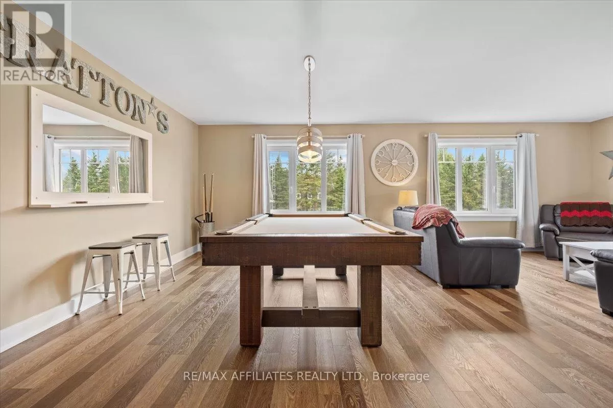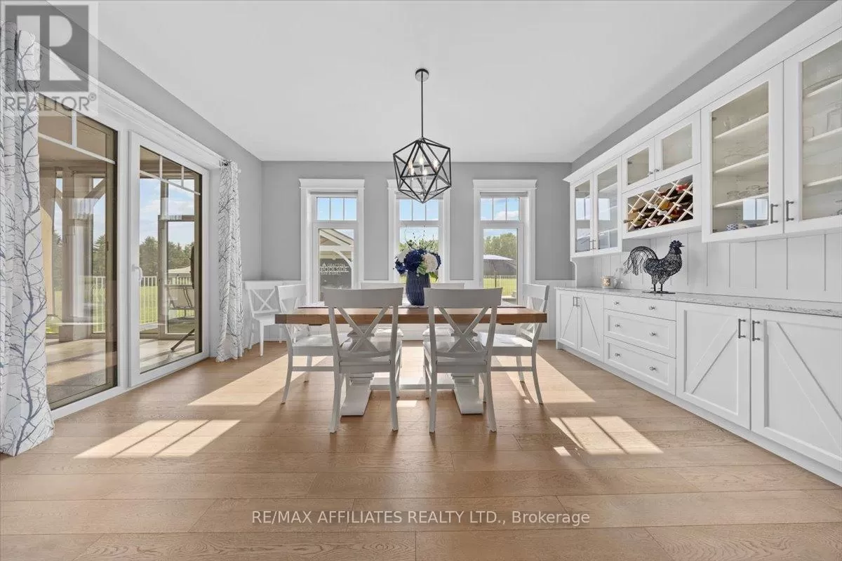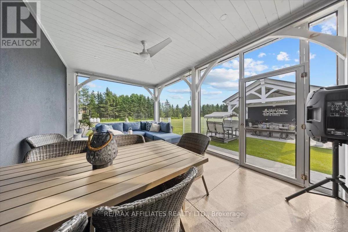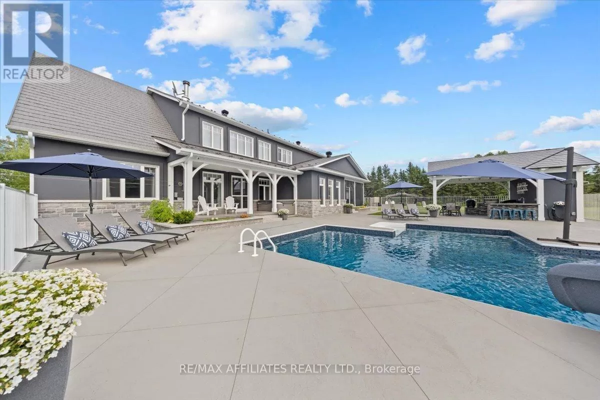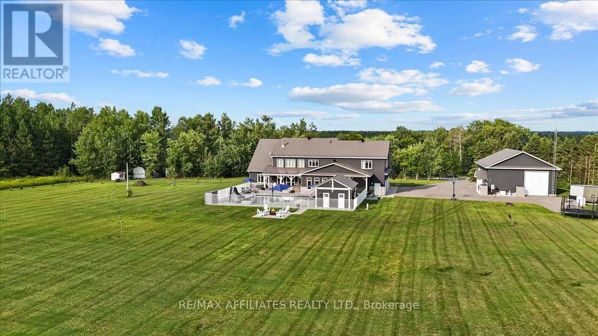Cross Streets: Cumberland. ** Directions: Wilhaven Drive to Emmett Road. Stunning custom-built modern farmhouse on five private acres located in Cumberland, just 10 minutes from Orleans! Beautiful front Verandah. Inviting front entrance with tile floors. This 5-bedroom, 5-bath home features engineered hardwood and upscale tile throughout, detailed trim, in-floor heating, triple-pane windows, and a 3-car heated garage. Chef's kitchen with centre island, quartz countertops, GE Café appliances, induction cooktop, dual French-door ovens, and a walk-in pantry with extra fridge/freezer. Bright eating area for the whole family. Enjoy a spacious living room with floor-to-ceiling windows and a wood-burning fireplace, a screened-in sunroom, and a main-floor primary suite with shiplap ceiling and a luxury five-piece ensuite. Dual sinks, stand alone tub, large walkin glass shower and walk-through closet.Main floor Den, and laundry. Large mudroom with inside access to the garage. Upstairs offers three bedrooms with ensuite or jack and jill access, a flex room, and a second laundry. Flex room can be used for a 2nd-level family room, office or bedroom. An Additional staircase brings you to a private guest suite featuring a bedroom, 3-pc bath, games room, and bar. The finished basement includes a theatre room with stadium seating, a utility room and plenty of storage. Outdoor oasis includes a heated inground pool, concrete patio, private fencing, pool house with bathroom, outdoor shower, and a fully covered BBQ station (Blackstone, Kamado, and BBQ). Detached heated 3-door garage + RV parking. Large doors, loft storage, bathroom and office. Paved driveway for multiple vehicles and toys. Enjoy the beautifully maintained gardens and lawn. Quiet road, soon to be paved. Property is excellent for a family, hobbyist or home business. The perfect blend of luxury, privacy, and location! (id:27476)