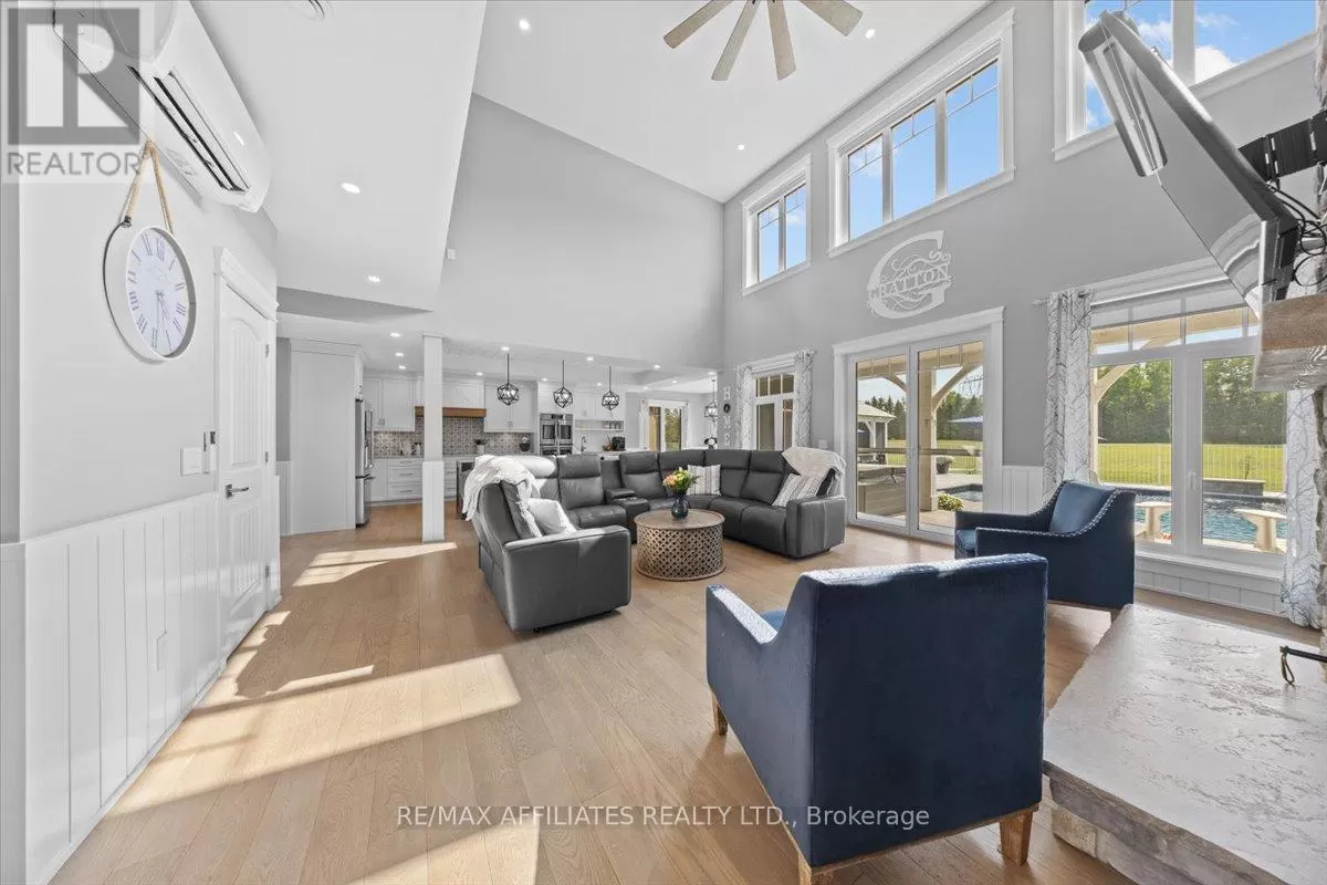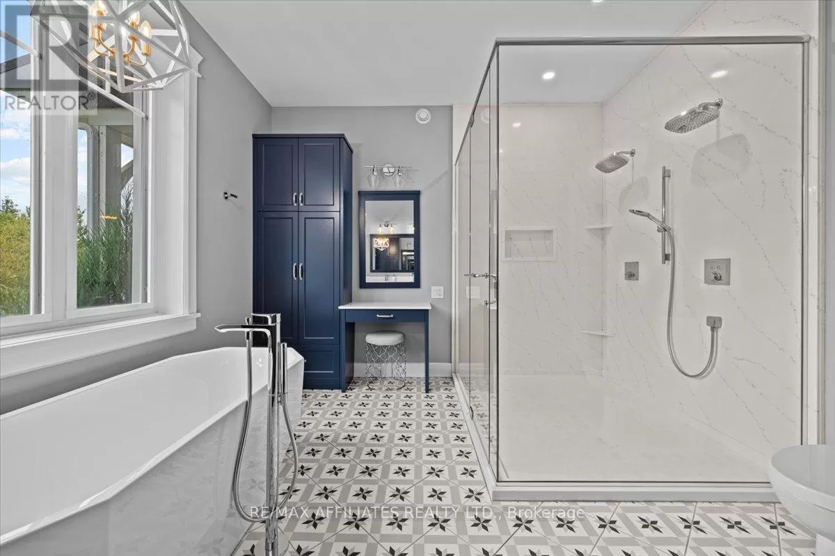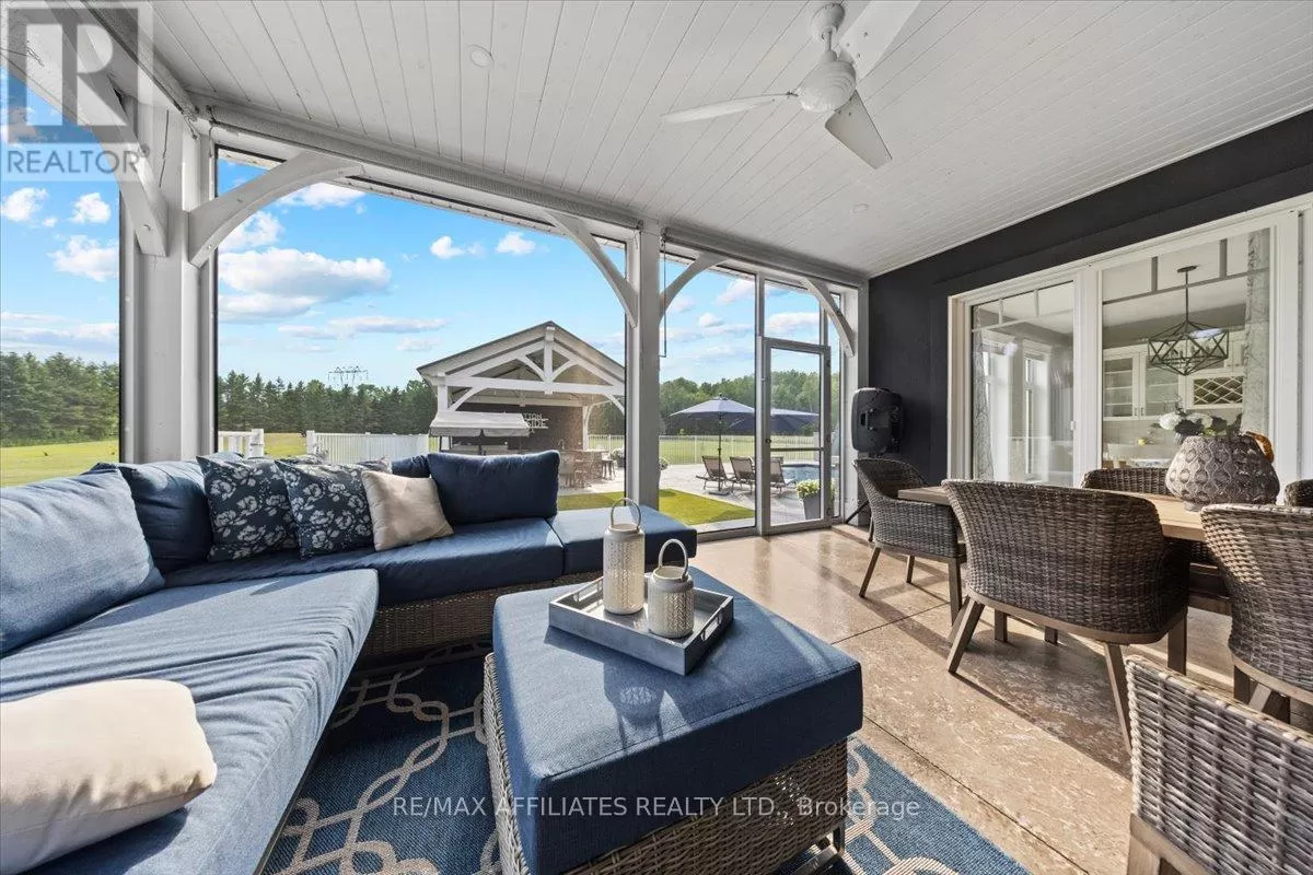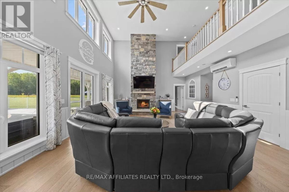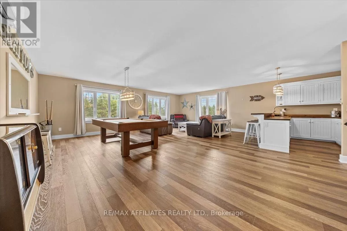 Cross Streets: Cumberland. ** Directions: Wilhaven Drive to Emmett Road. Stunning custom-built modern farmhouse on five private acres located in Cumberland, just 10 minutes from Orleans! Beautiful front Verandah. Inviting front entrance with tile floors. This 5-bedroom, 5-bath home features engineered hardwood and upscale tile throughout, detailed trim, in-floor heating, triple-pane windows, and a 3-car heated garage. Chef's kitchen with centre island, quartz countertops, GE Café appliances, induction cooktop, dual French-door ovens, and a walk-in pantry with extra fridge/freezer. Bright eating area for the whole family. Enjoy a spacious living room with floor-to-ceiling windows and a wood-burning fireplace, a screened-in sunroom, and a main-floor primary suite with shiplap ceiling and a luxury five-piece ensuite. Dual sinks, stand alone tub, large walkin glass shower and walk-through closet.Main floor Den, and laundry. Large mudroom with inside access to the garage. Upstairs offers three bedrooms with ensuite or jack and jill access, a flex room, and a second laundry. Flex room can be used for a 2nd-level family room, office or bedroom. An Additional staircase brings you to a private guest suite featuring a bedroom, 3-pc bath, games room, and bar. The finished basement includes a theatre room with stadium seating, a utility room and plenty of storage. Outdoor oasis includes a heated inground pool, concrete patio, private fencing, pool house with bathroom, outdoor shower, and a fully covered BBQ station (Blackstone, Kamado, and BBQ). Detached heated 3-door garage + RV parking. Large doors, loft storage, bathroom and office. Paved driveway for multiple vehicles and toys. Enjoy the beautifully maintained gardens and lawn. Quiet road, soon to be paved. Property is excellent for a family, hobbyist or home business. The perfect blend of luxury, privacy, and location! (id:27476)